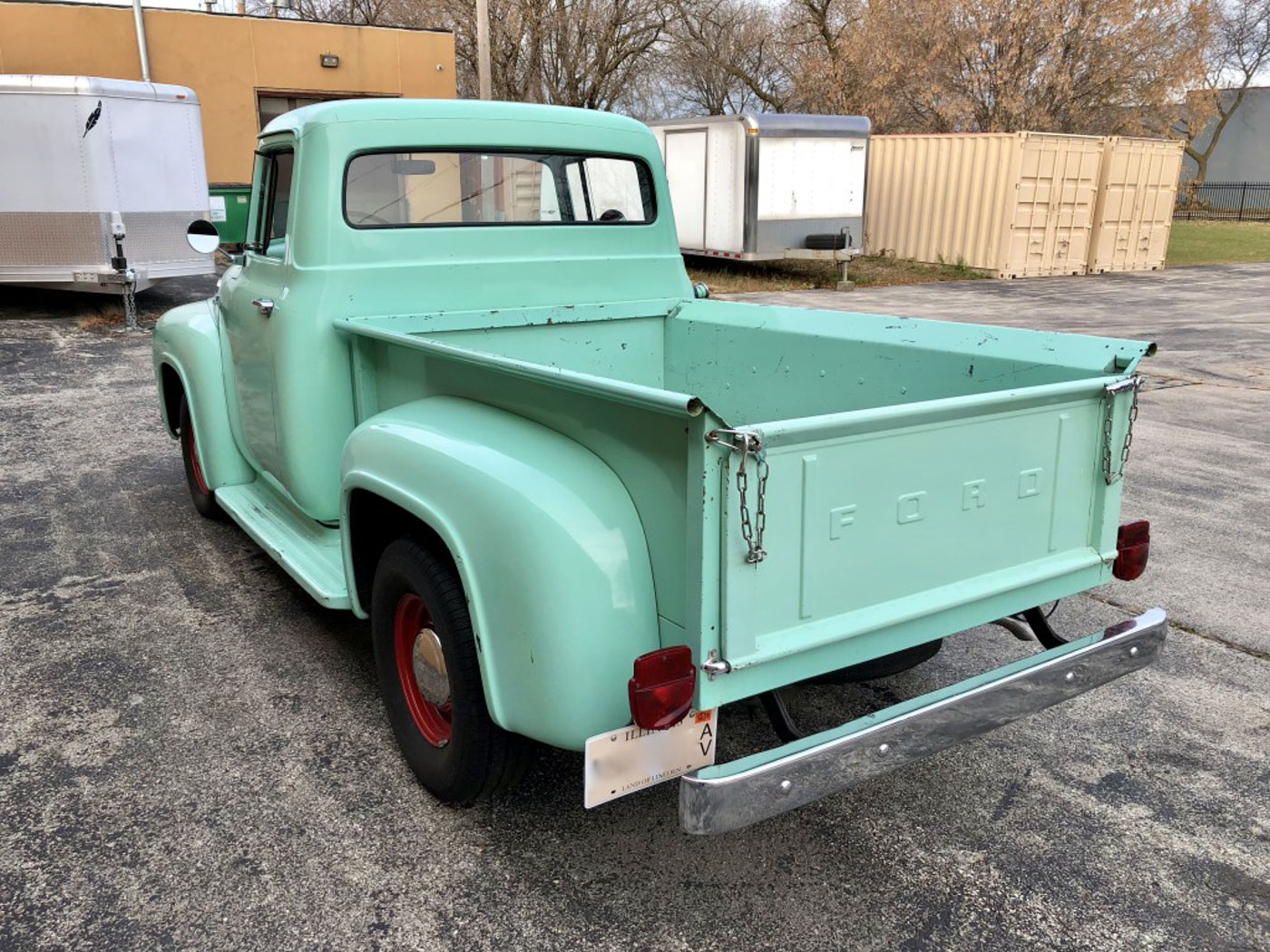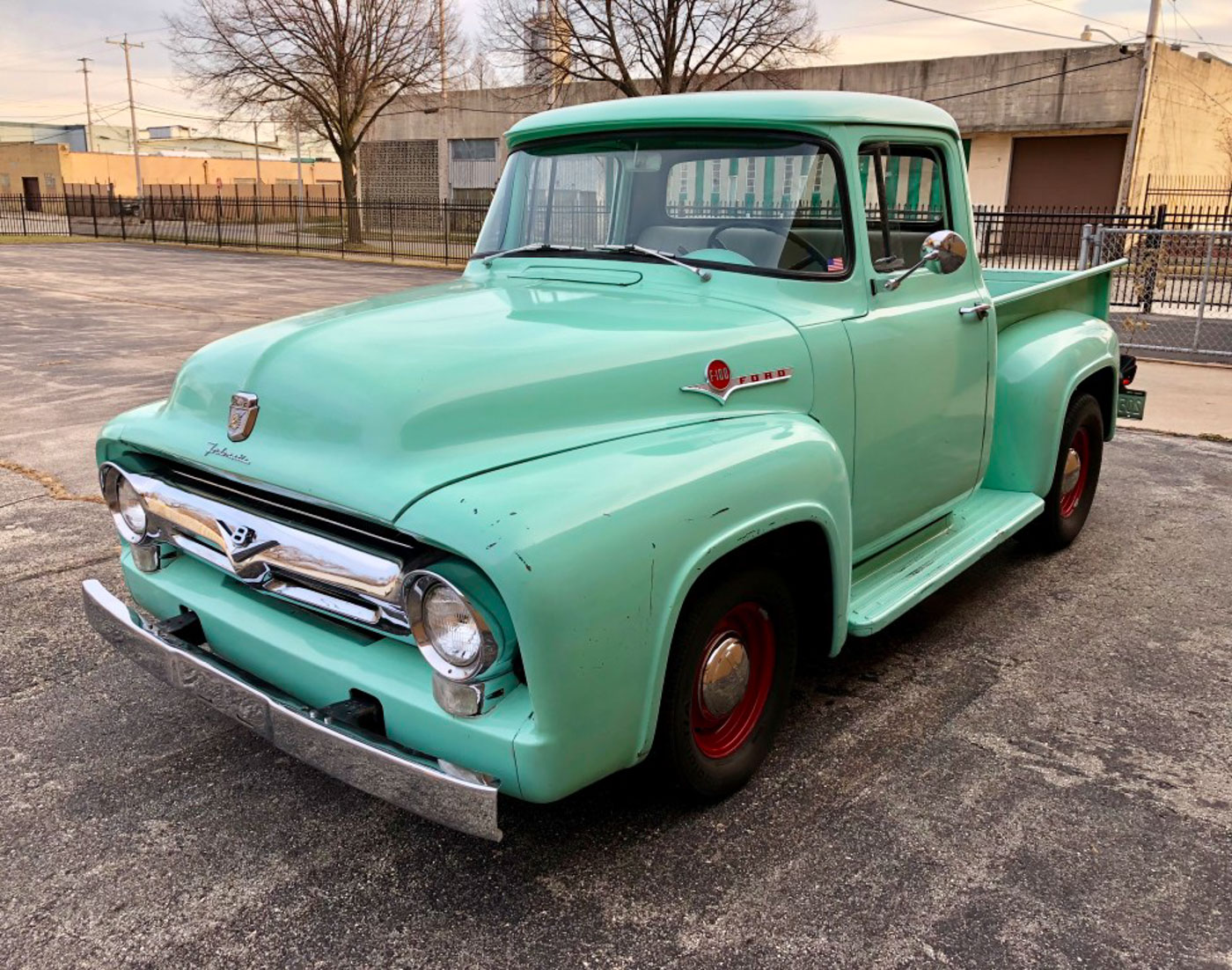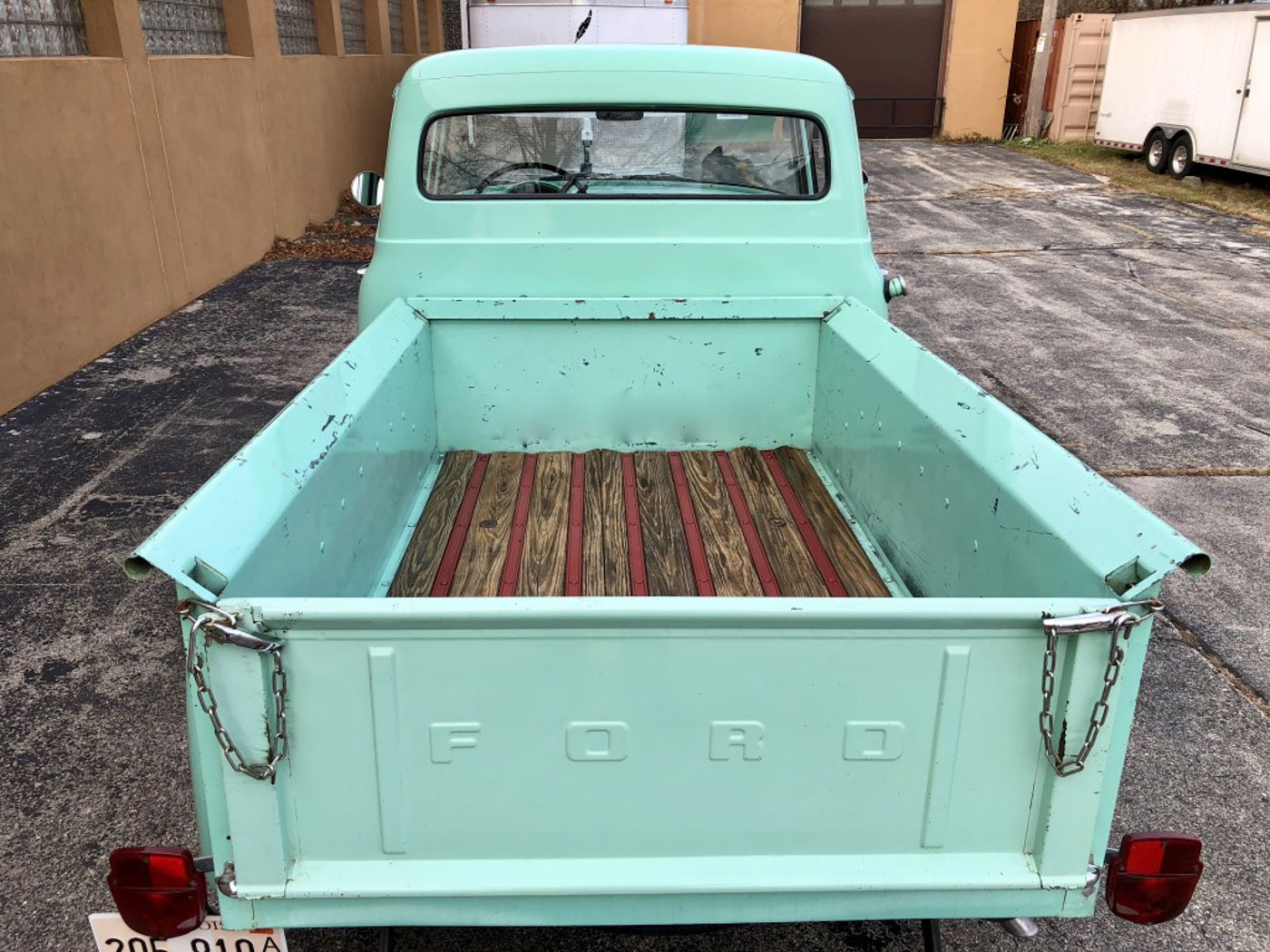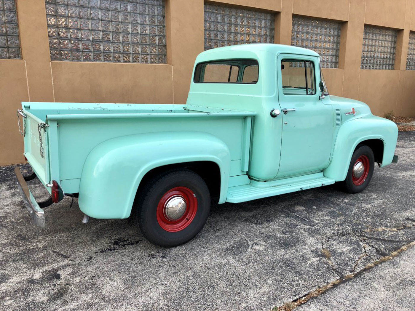 The Tale of Two F100s: I bought my wife an unrestored 1955 F100 for her birthday a number of years ago. Problem it was a pretty mint original paint truck, with original upholstery, and a 3 on the tree. And all that great originality made her too nervous to throw some bikes in the bed or leave it parked anywhere. So the search was on for an Effie to make a “driver” out if. And I also decided we needed a ’56 as it is “the” year Effie to have. By some stroke of luck I got lucky and found this one-family owned California ’56 and bought it for the Mrs. Totally rust free and with no damage ever it was an amazing specimen of this most desirable year and model. It also happened to be in its original and super cool Spring Mist Green color, not to mention the optional Ford-O-Matic transmission which was simply perfect for the trucks intended purpose.