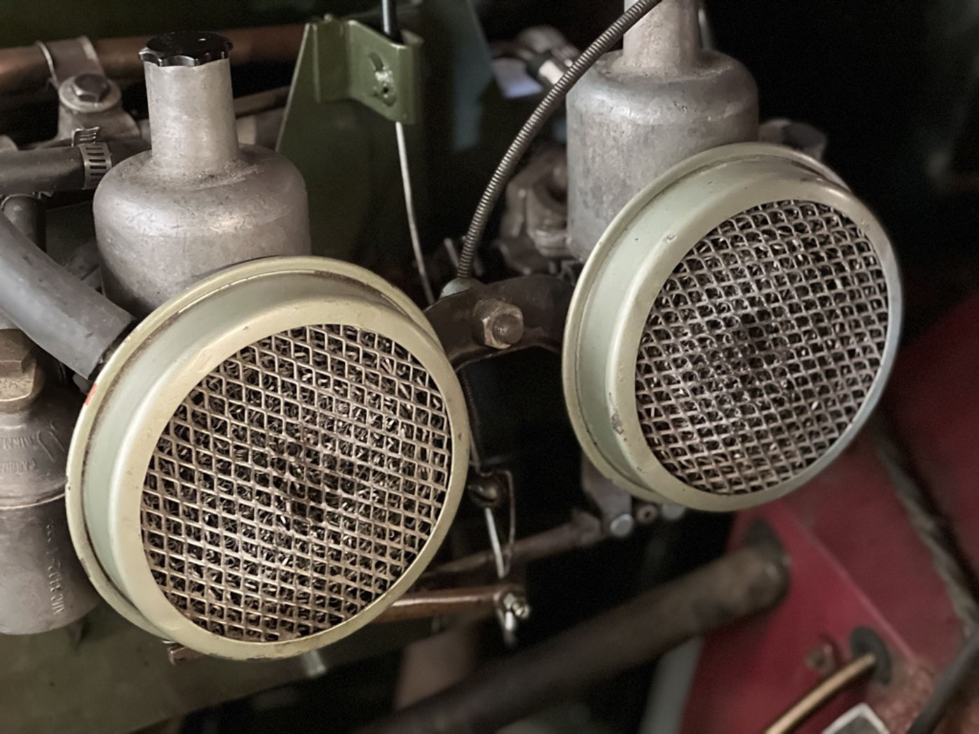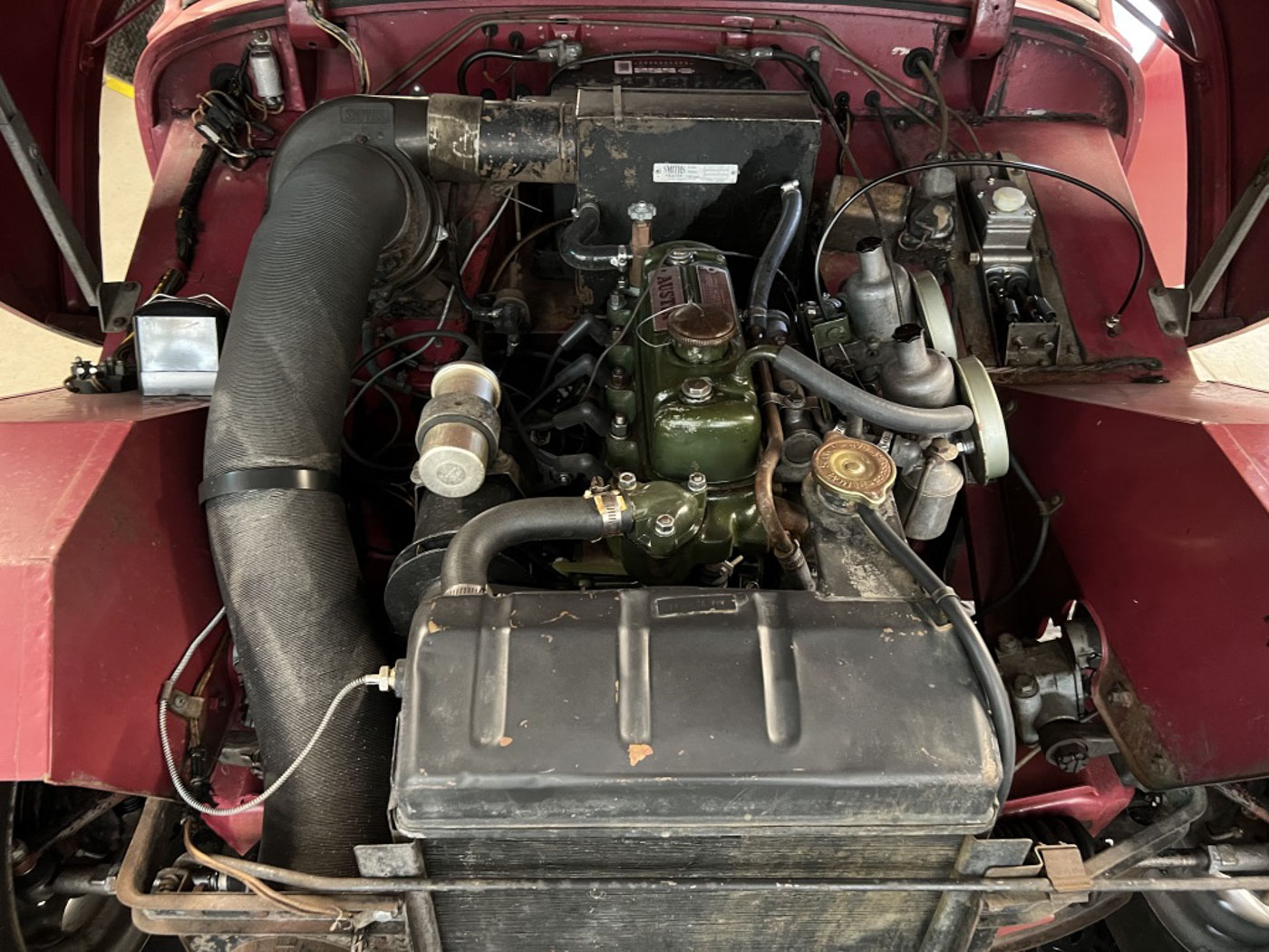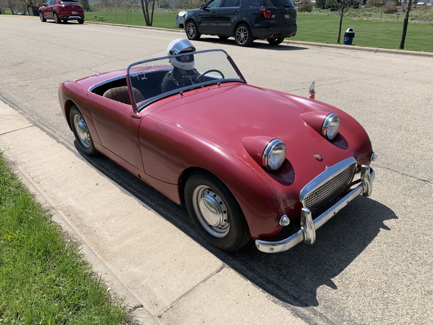 Speaking of the oily bits, while extremely careful to not disturb any of the great originality or patina of this Bugeye, its original engine was fully rebuilt and balanced, transmission inspected and serviced (it was perfect), complete cooling/ braking/ and fuel systems overhauled, gauges rebuilt/ cleaned/ calibrated, and all kinds of stuff like that you can’t necessarily see but you can feel when you drive this car. It is absolutely “on the button” (actually a pull knob in this case) and a riot to drive. We’ve toured it, used it in hill climbs, and generally just had fun with it as you should do with a Sprite!