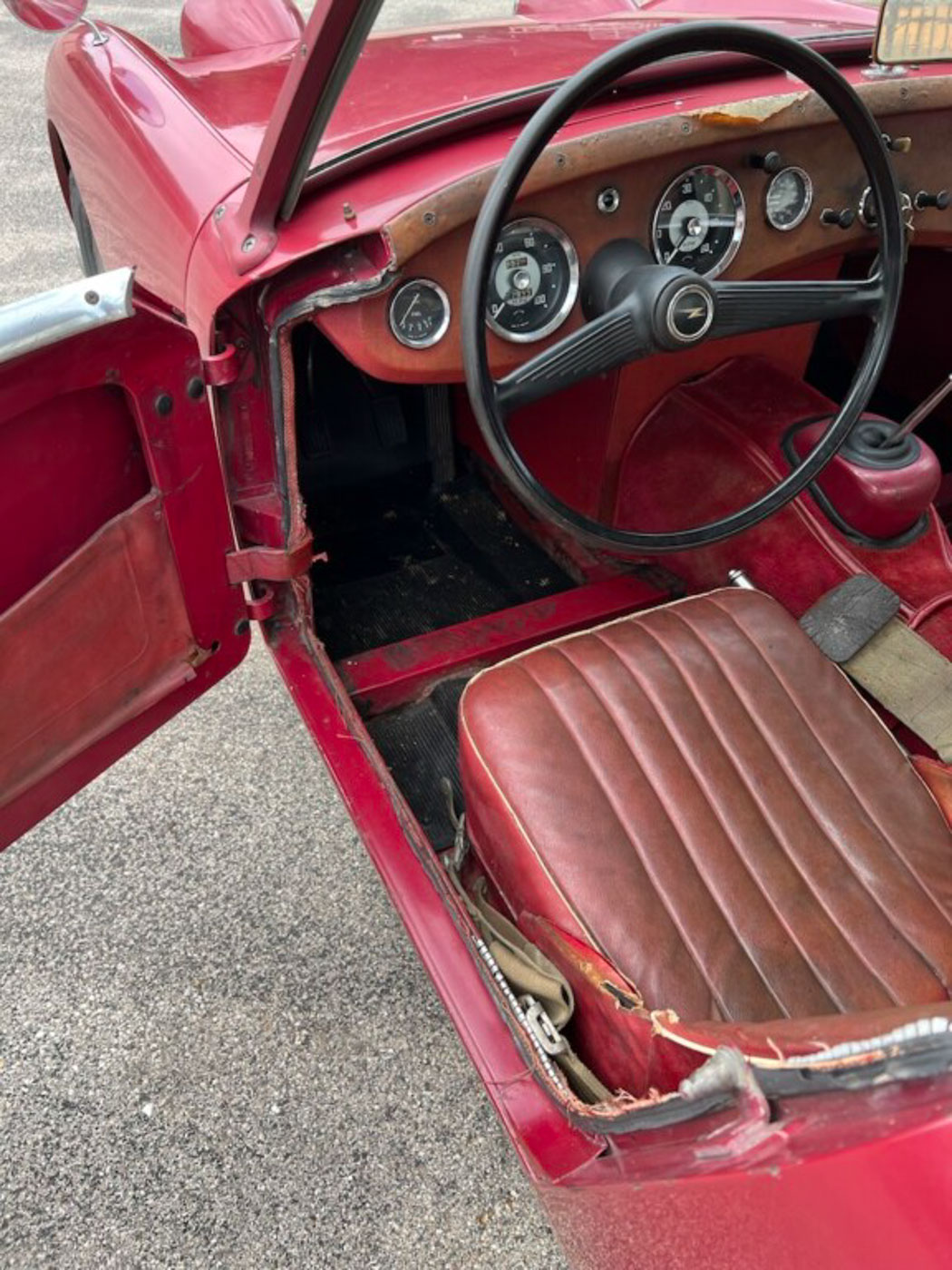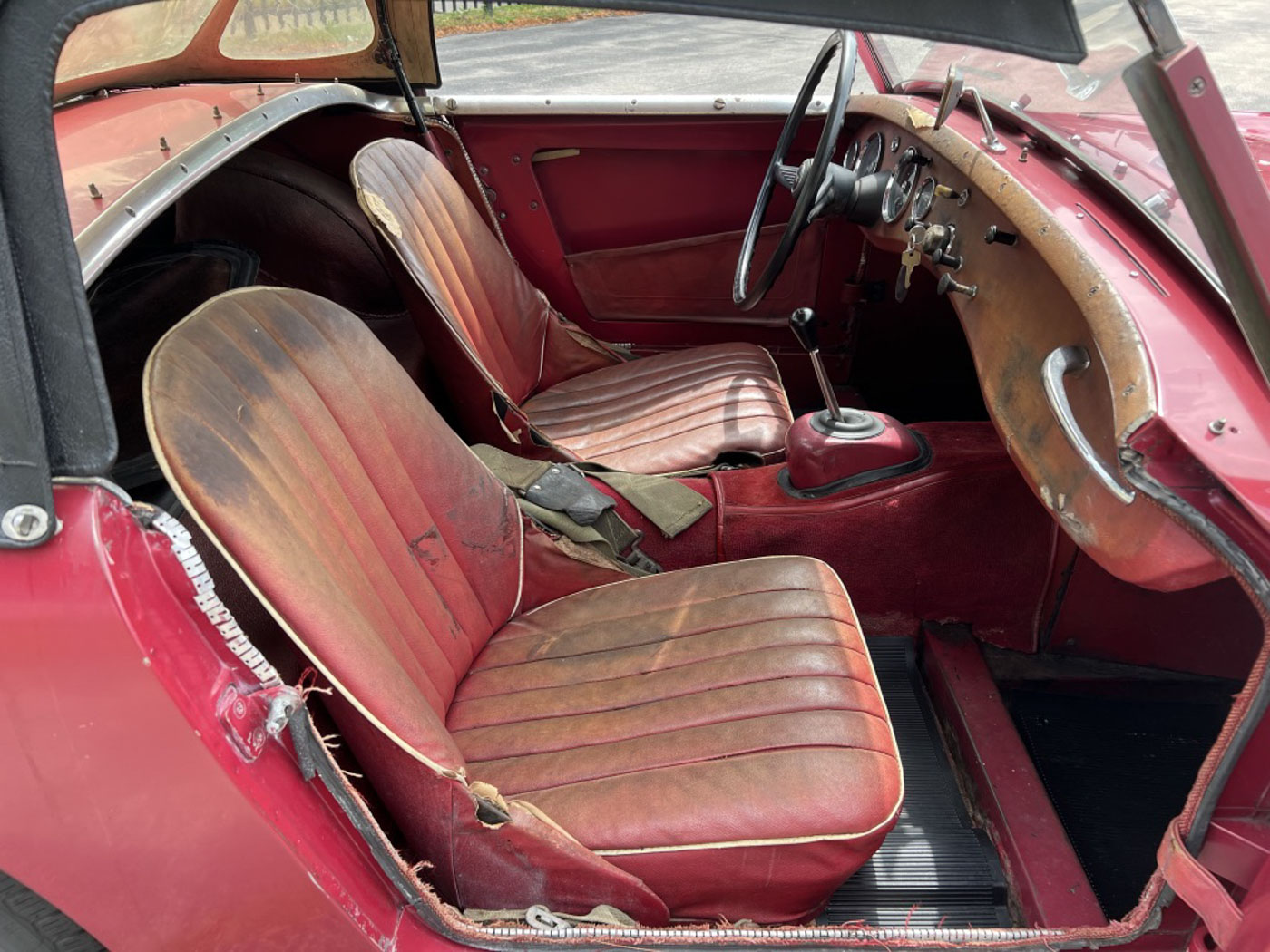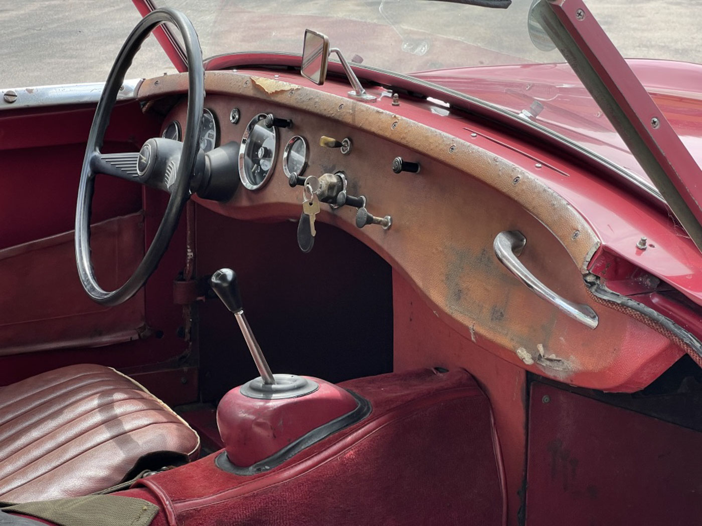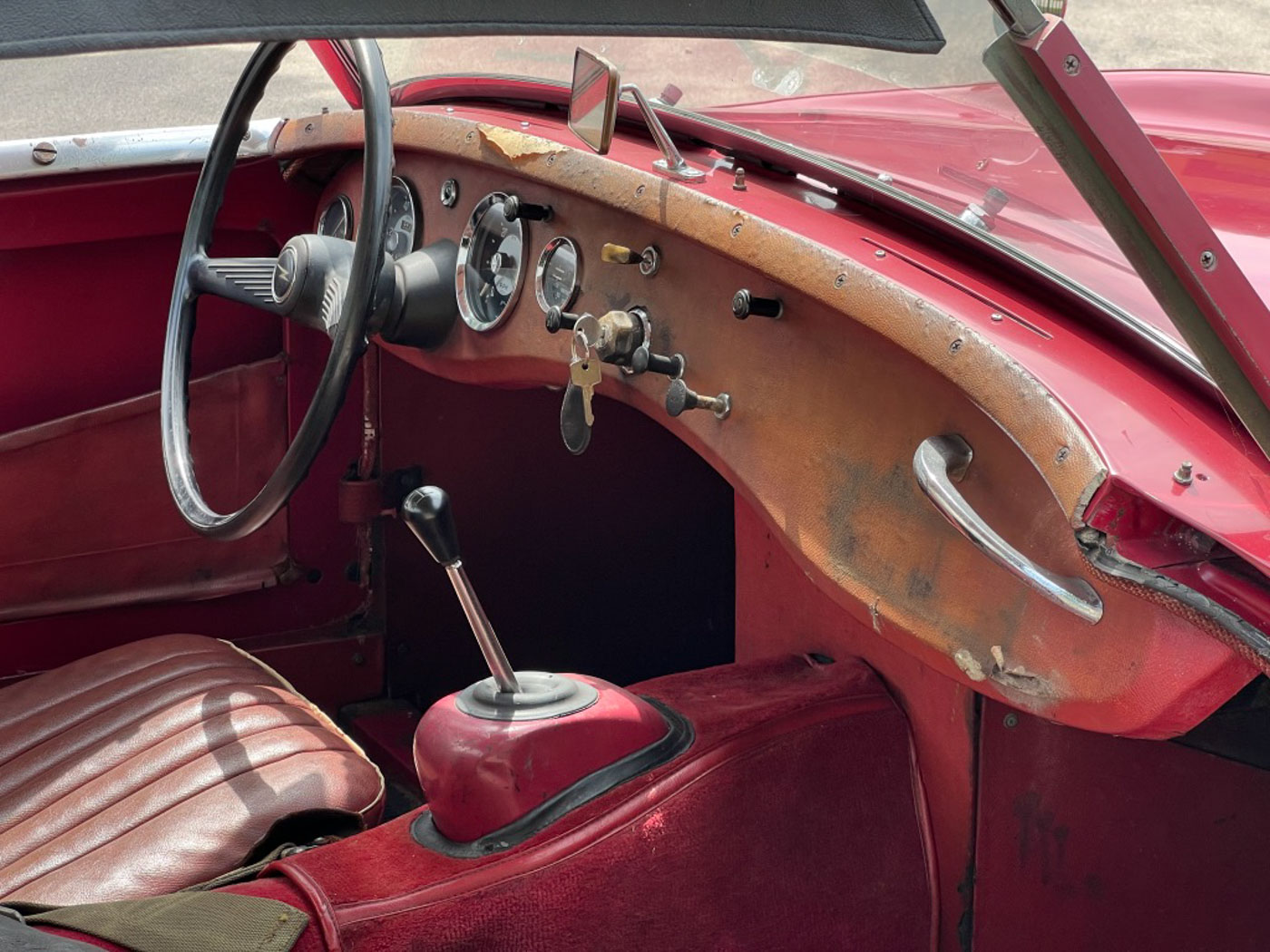 But this little dude is even cooler than being one of the first off the line of this now 64-year old endearing and iconic sports car. How? Because it is an incredibly original, never modified, never restored car that was, again, sold new, raised in, and lived for 59 years in sunny and dry California. Sure, its original Cherry Red paint and red leather aren’t going to win any shows but they certainly win hearts with their visible tale of a well-loved existence that makes people just want to look at them more. And its original little 948cc A-Series engine is just as much of a willing and eager participant in any kind of hijinks as it was six decades ago. Well, at least for as much hijinks as one can get into with a robust 48 HP.