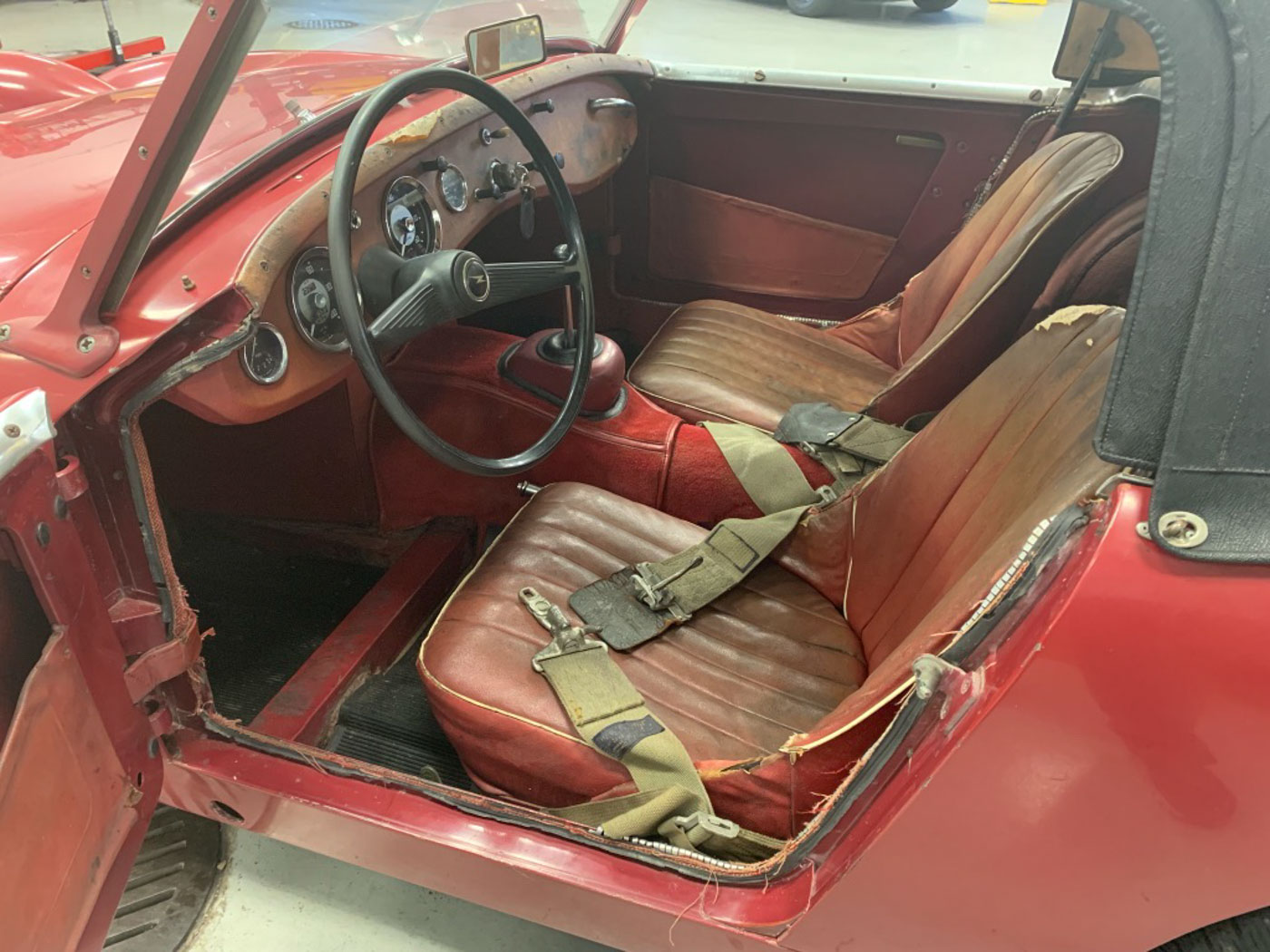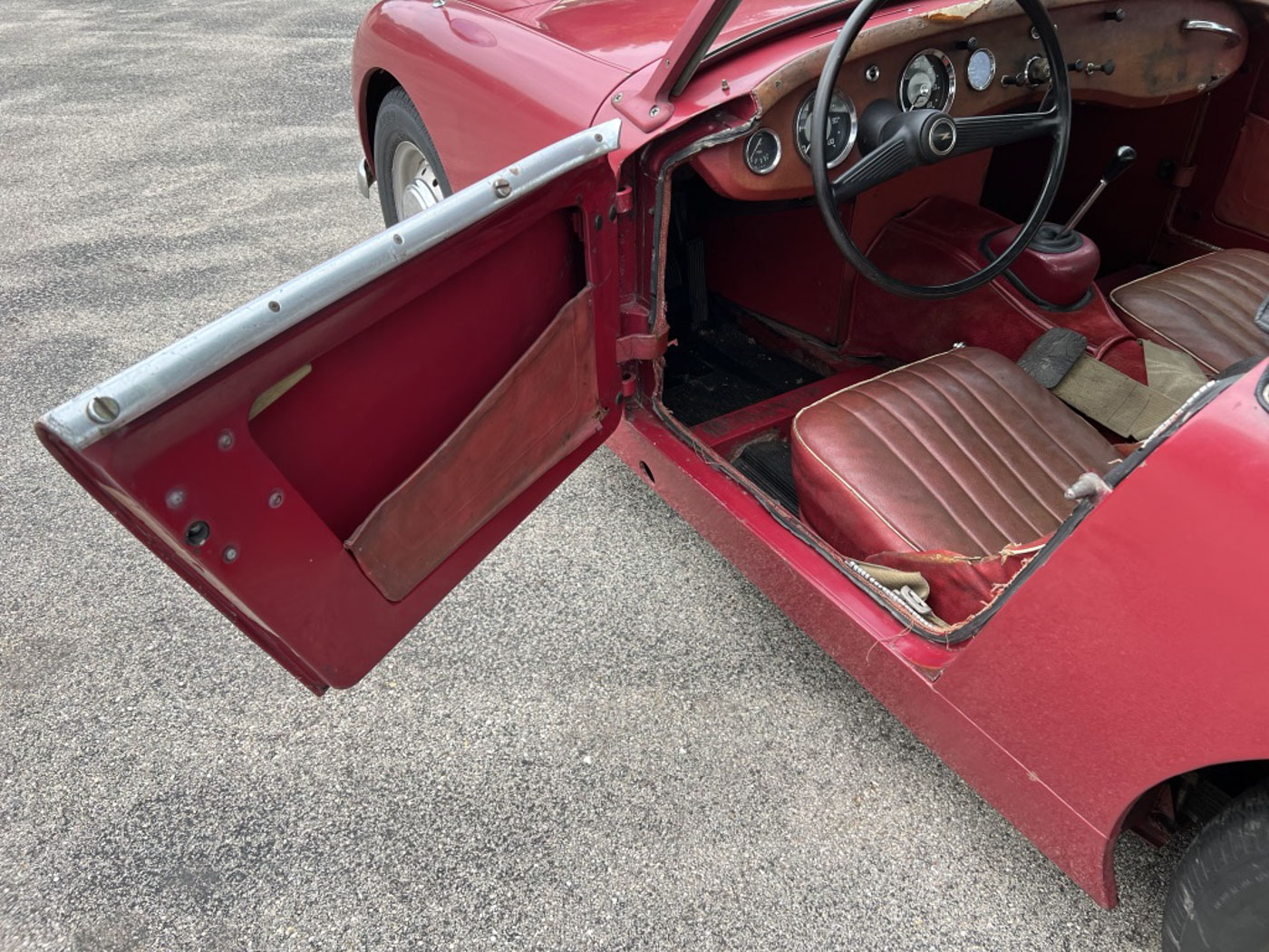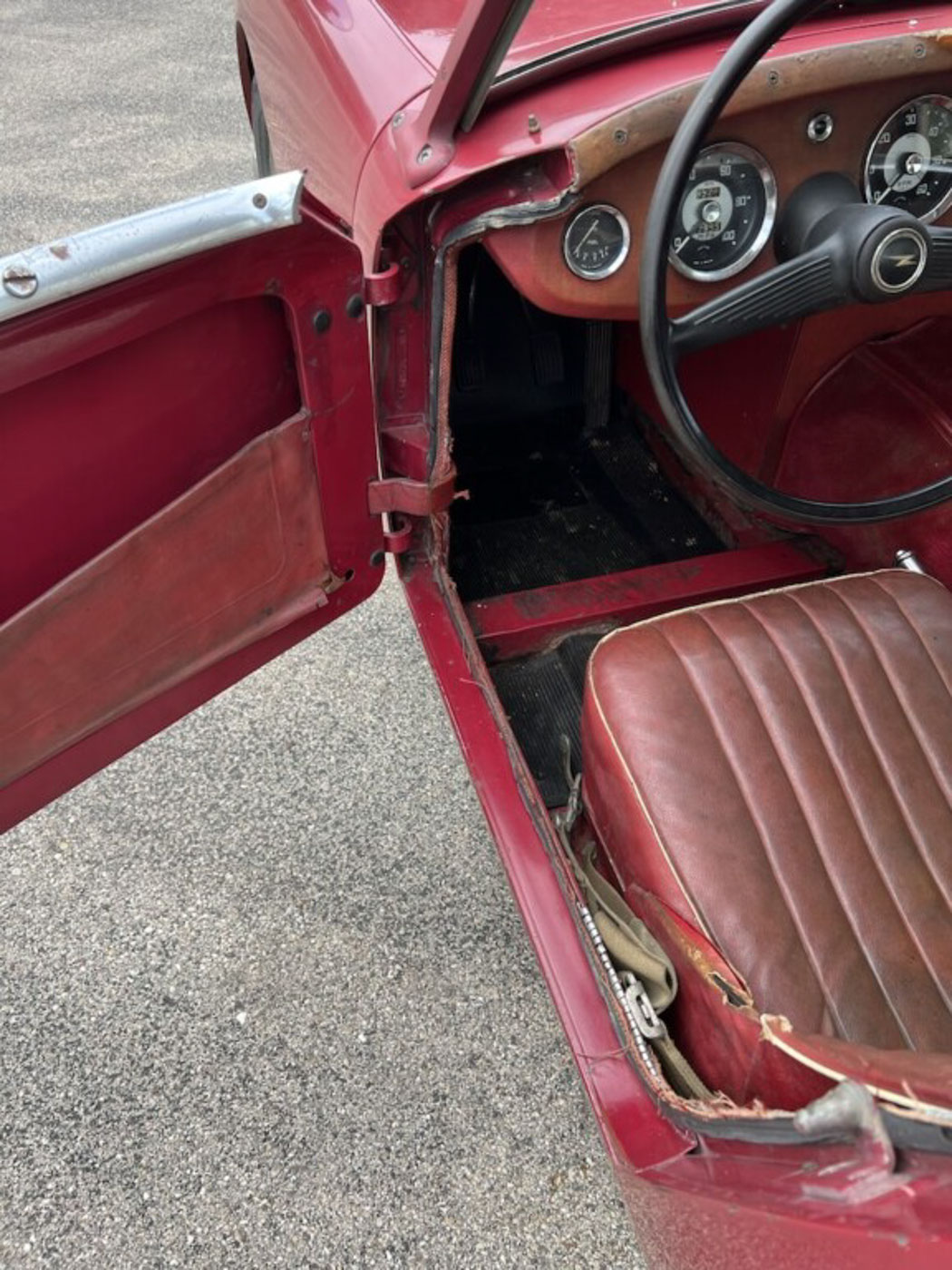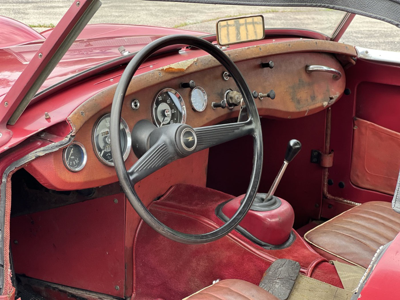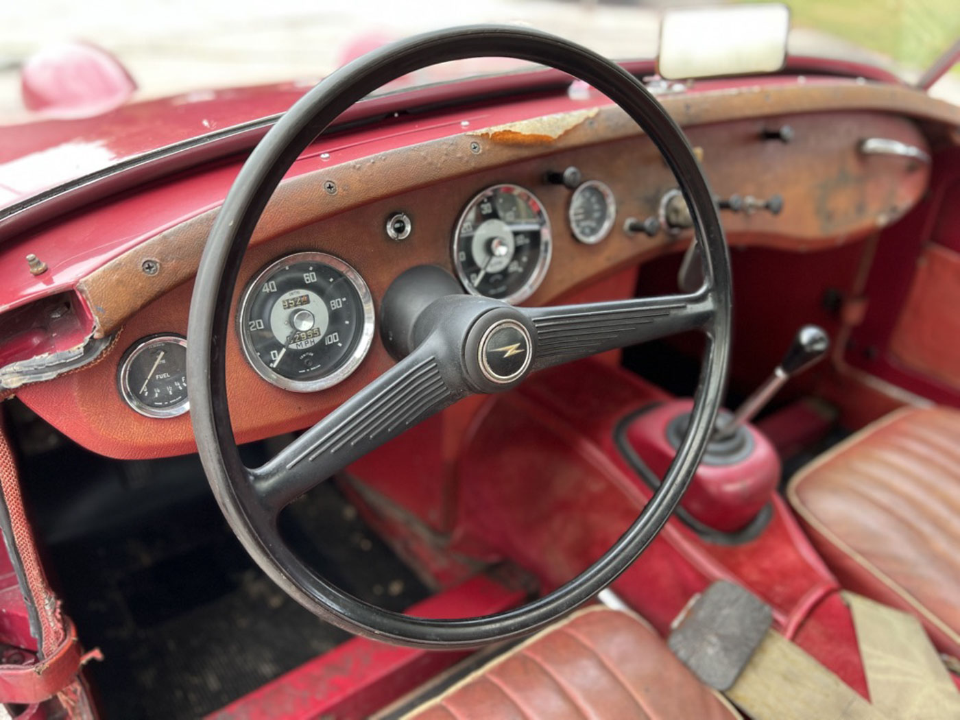 But this little dude is even cooler than being one of the first off the line of this now 64-year old endearing and iconic sports car. How? Because it is an incredibly original, never modified, never restored car that was, again, sold new, raised in, and lived for 59 years in sunny and dry California. Sure, its original Cherry Red paint and red leather aren’t going to win any shows but they certainly win hearts with their visible tale of a well-loved existence that makes people just want to look at them more. And its original little 948cc A-Series engine is just as much of a willing and eager participant in any kind of hijinks as it was six decades ago. Well, at least for as much hijinks as one can get into with a robust 48 HP.