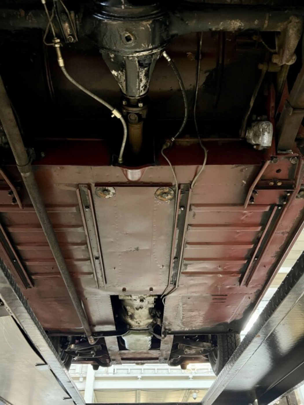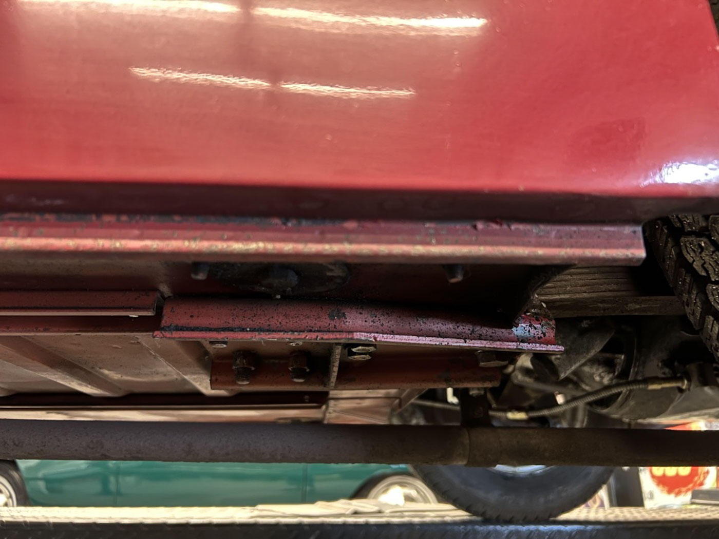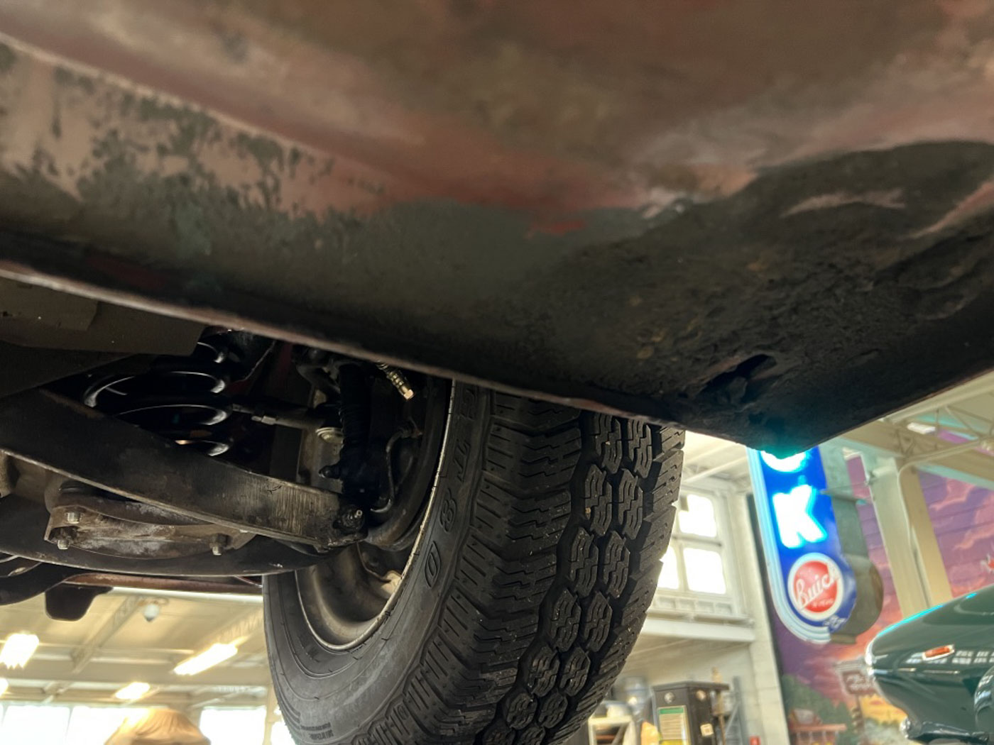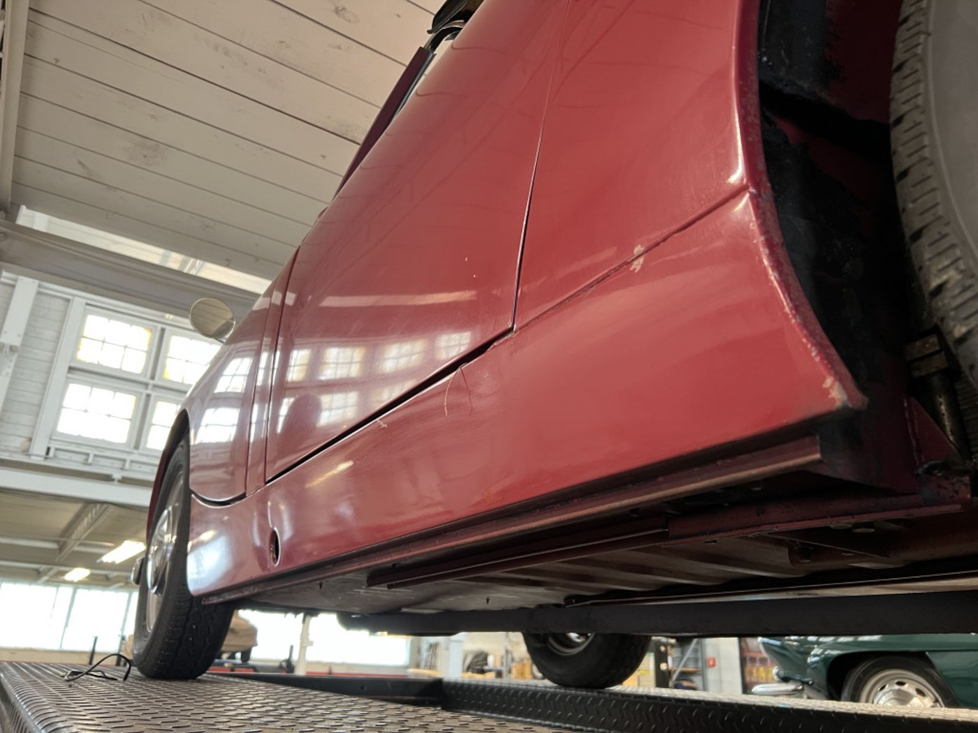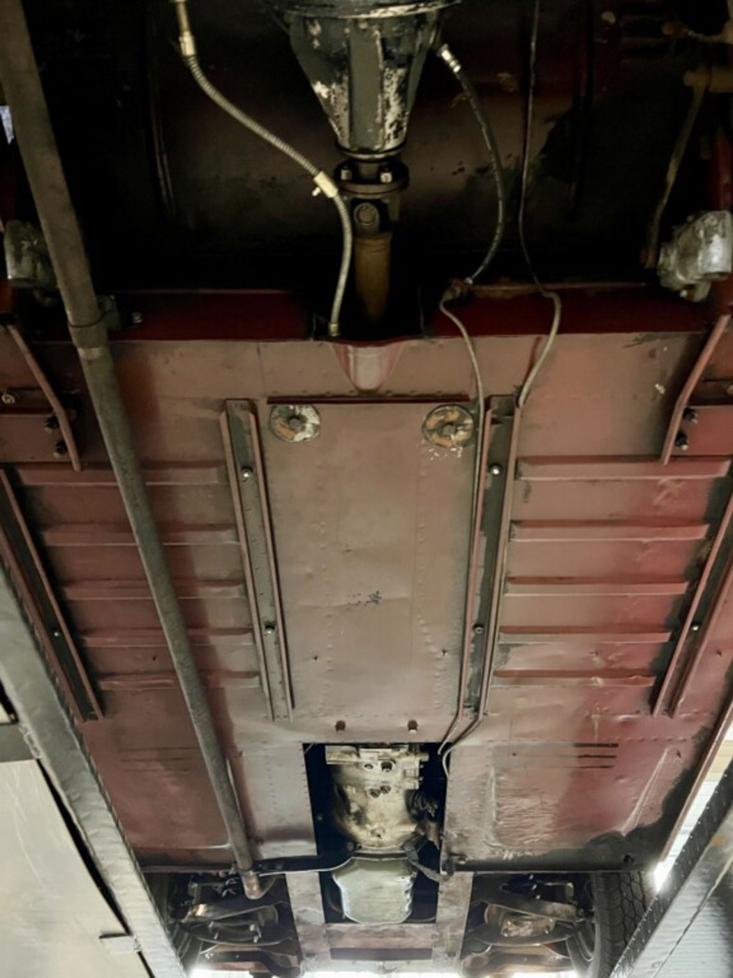 There is absolutely ZERO rust or corrosion anywhere, nor are there any prior bumps or bruises on its incredibly well preserved body. Check out the chassis photos- that’s all factory Cherry Red paint throughout. It has an excellent original ’58 convertible top with the “Lift-a-Dot” studs across the windshield header as well as original ’58 side curtains that are another hallmark of these special early production cars.