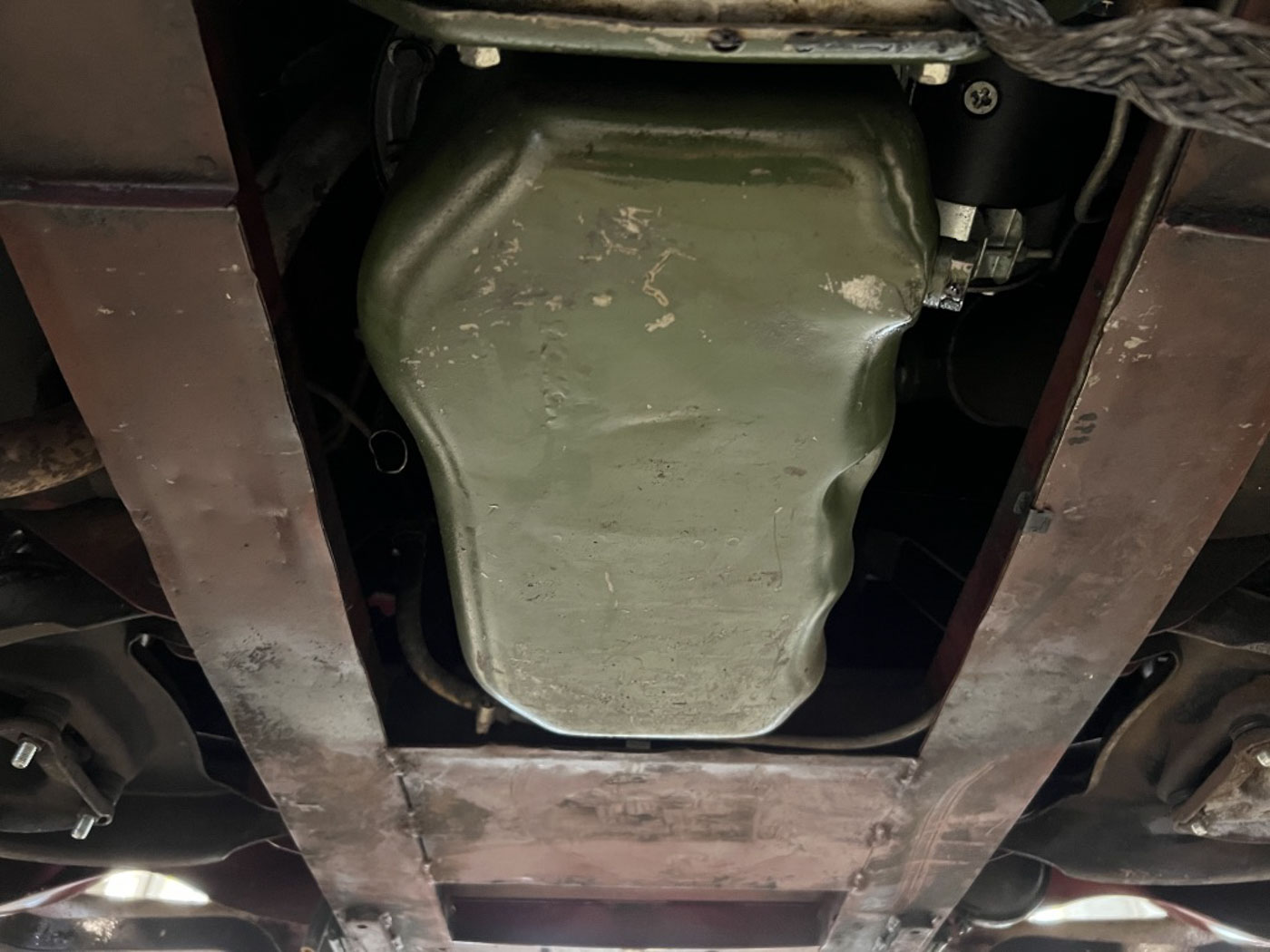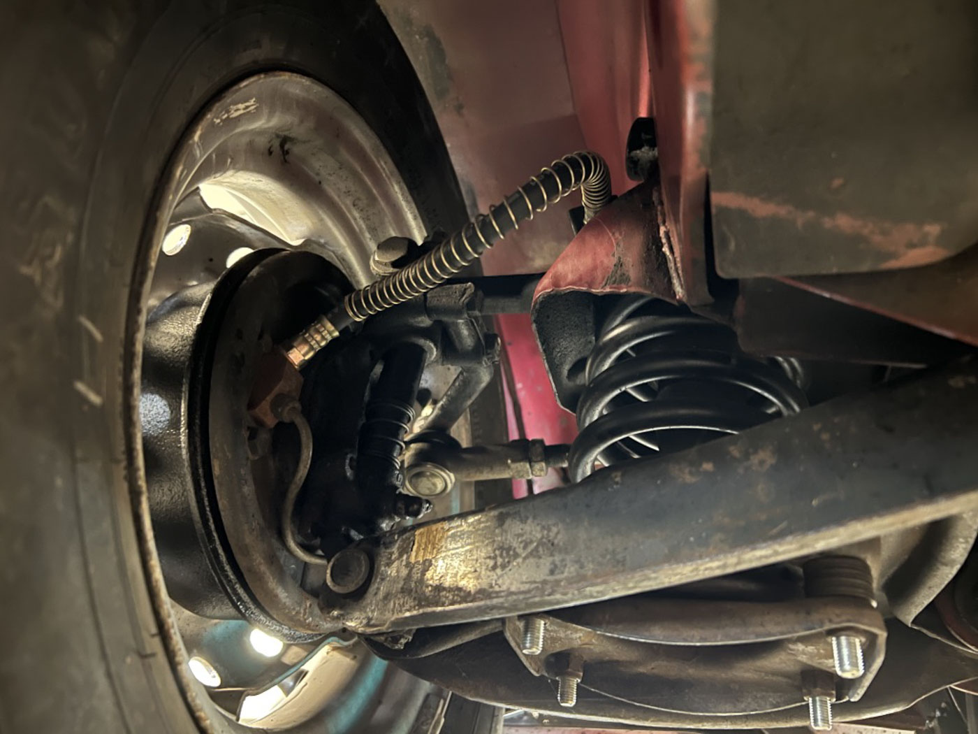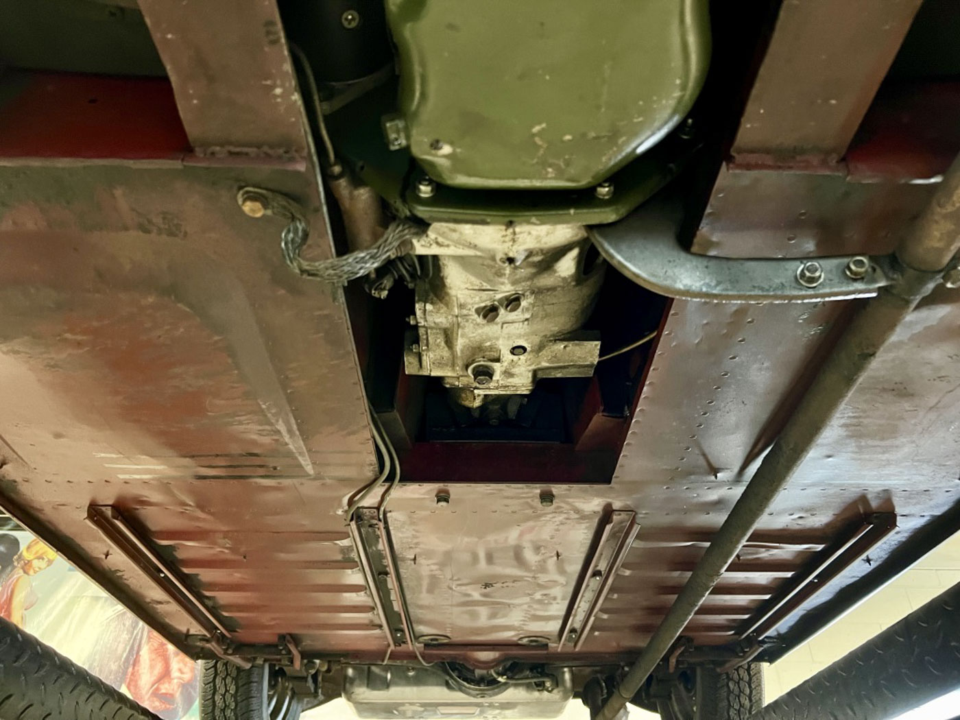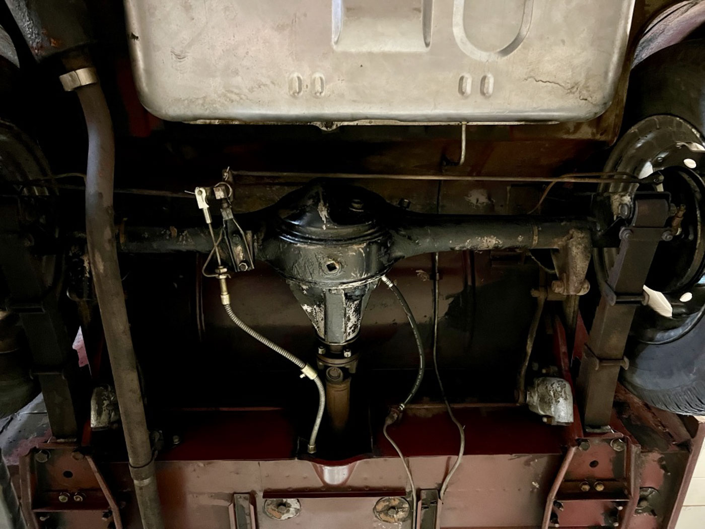 There is absolutely ZERO rust or corrosion anywhere, nor are there any prior bumps or bruises on its incredibly well preserved body. Check out the chassis photos- that’s all factory Cherry Red paint throughout. It has an excellent original ’58 convertible top with the “Lift-a-Dot” studs across the windshield header as well as original ’58 side curtains that are another hallmark of these special early production cars.