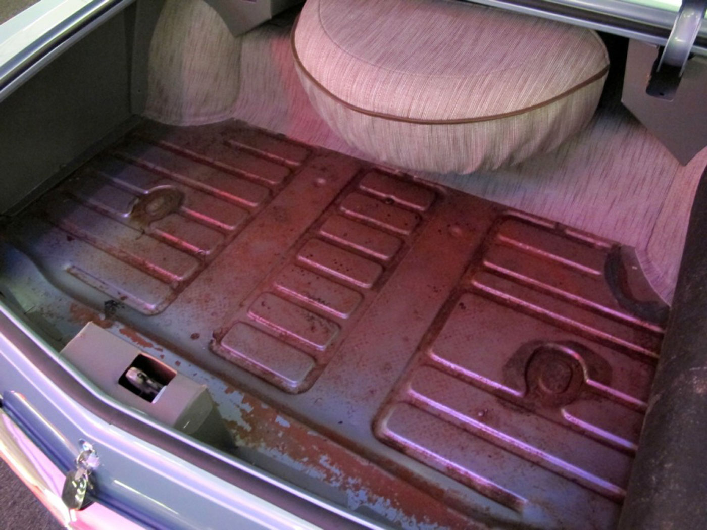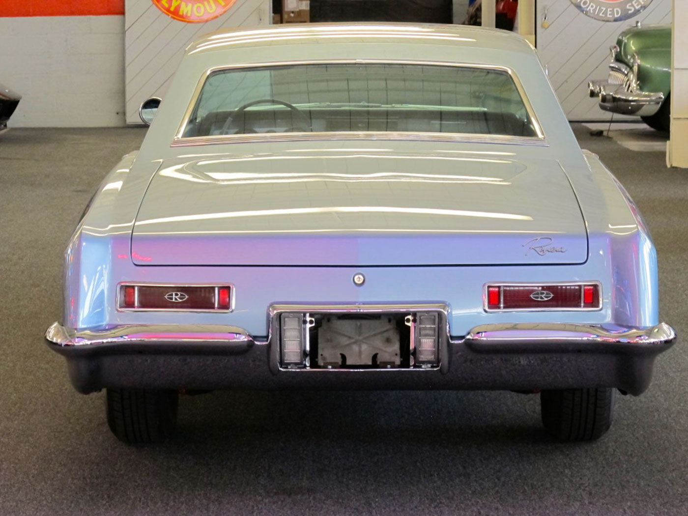 I’ve owned this car for a number of years and purchased it while it was still in its original, yet faded, original paint. The car was recently stripped to bare metal here in my shop and given a concours level base/clear repaint with close attention paid to making sure the fit, finish and even the Marlin Blue color were all as-new or better. The bumpers were redone with “show chrome” and all of the exterior stainless was polished. The best part about the car, however, is its chassis and underbody. It is completely and utterly rust-free with all original factory primer and blue paint visible- no “cover up” undercoating, black slop or anything like that- all virgin original metal. I’ve included some photos, but again, it really doesn’t do it justice. I spent a few days under there cleaning it with Simple Green and then preserving it with some Boeing “Boeshield” protectant to preserve the great original finishes. Also note the photo of the topside of the trunk floor- the body of this car is simply amazing. Unlike most first-gen Rivieras this one has never been crashed or rusted, and those who know these cars realize the rarity of this.