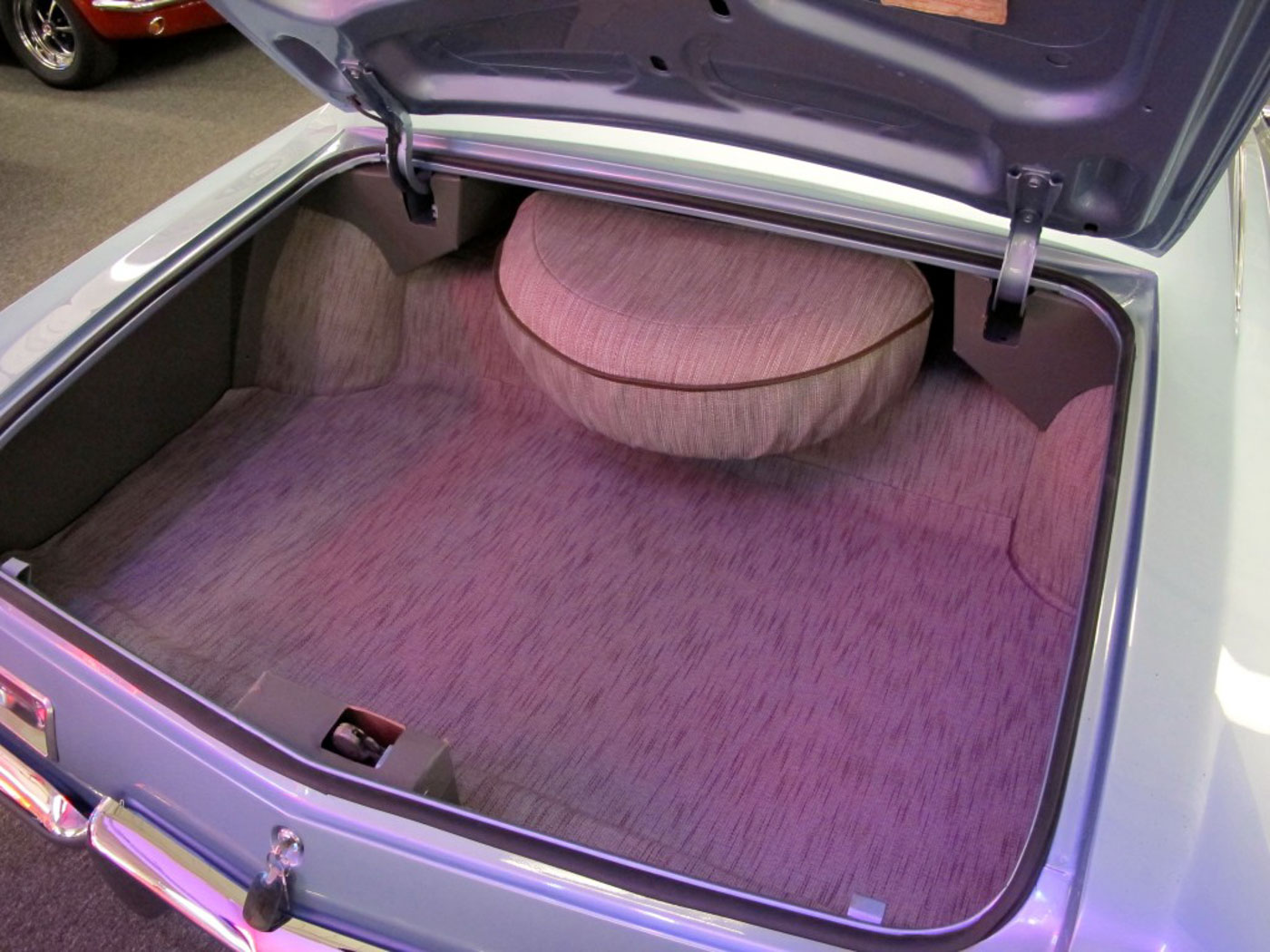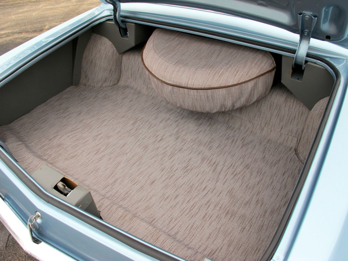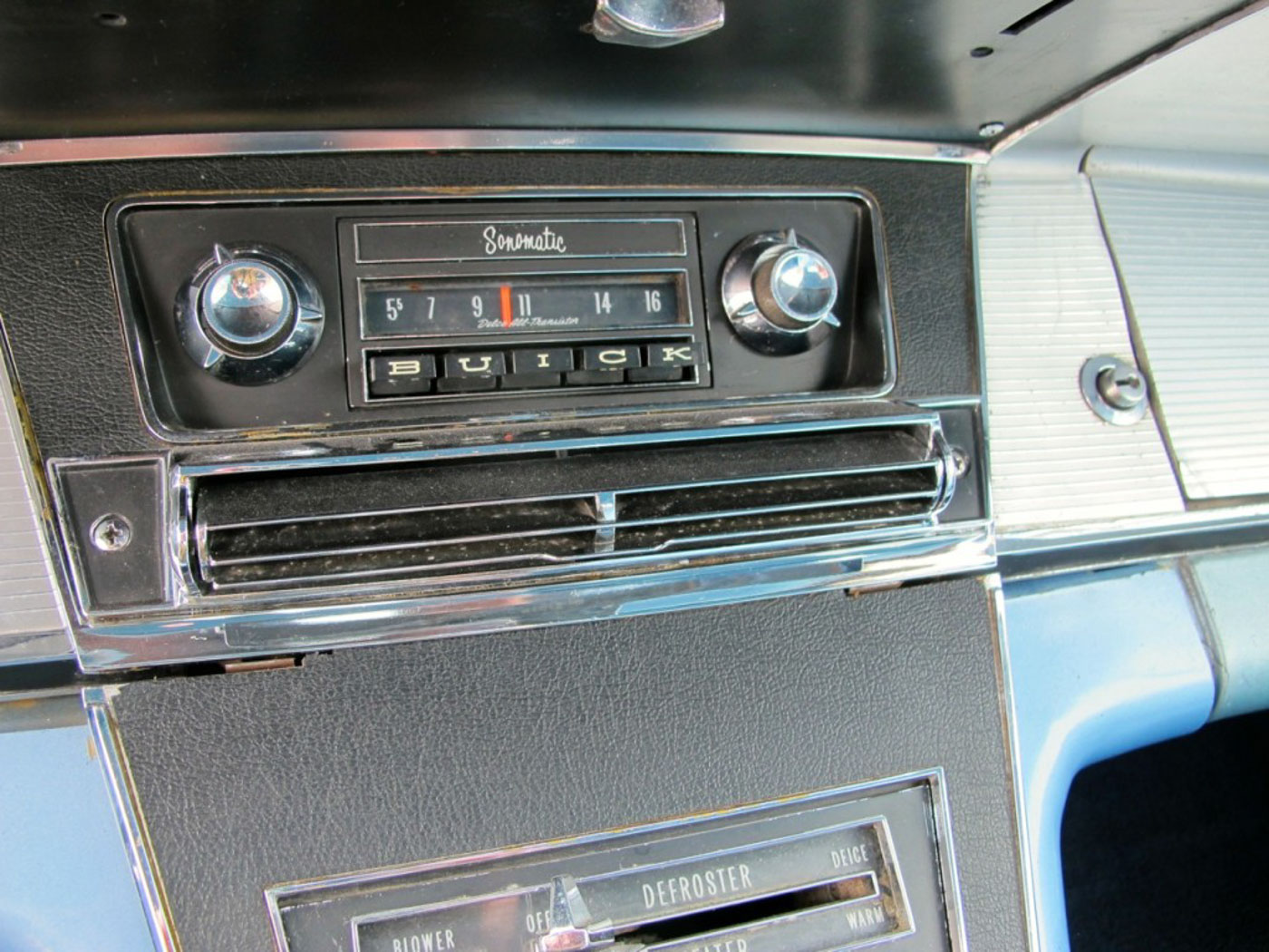 The interior is exceptional and has new seat foam and seat covers, a new correct headliner, recovered sun visors, and mint original door panels. The dash top pad has cracks in it and I installed a Coverlay dash topper. It looks very nice but obviously a concours judge or Riviera expert would spot it. All of the gauges and lights work as-new and the only item that doesn’t function perfectly is the original AM radio. It turns on and makes some noise through the speaker but no music. The dash aluminum is all great with the exception of one wrinkled corner on the glovebox door. All of the interior chrome is excellent. The trunk has a new correct trunk mat and spare tire cover from Clark’s along with the original jack, tools, and spare.