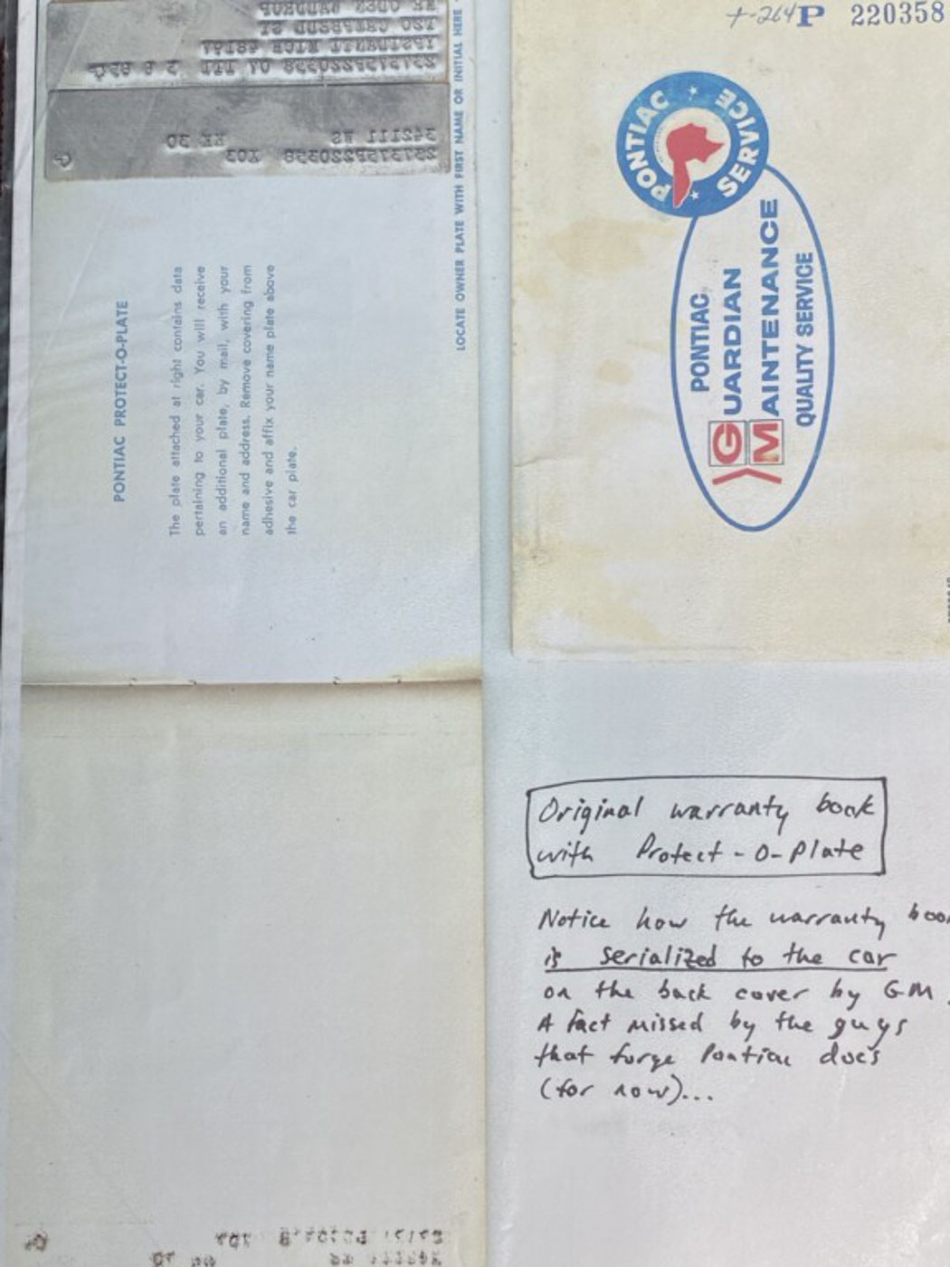 The paperwork is the best part though. Everything from the original cancelled checks, the window sticker, envelope the title came in, books, POP, etc is there.