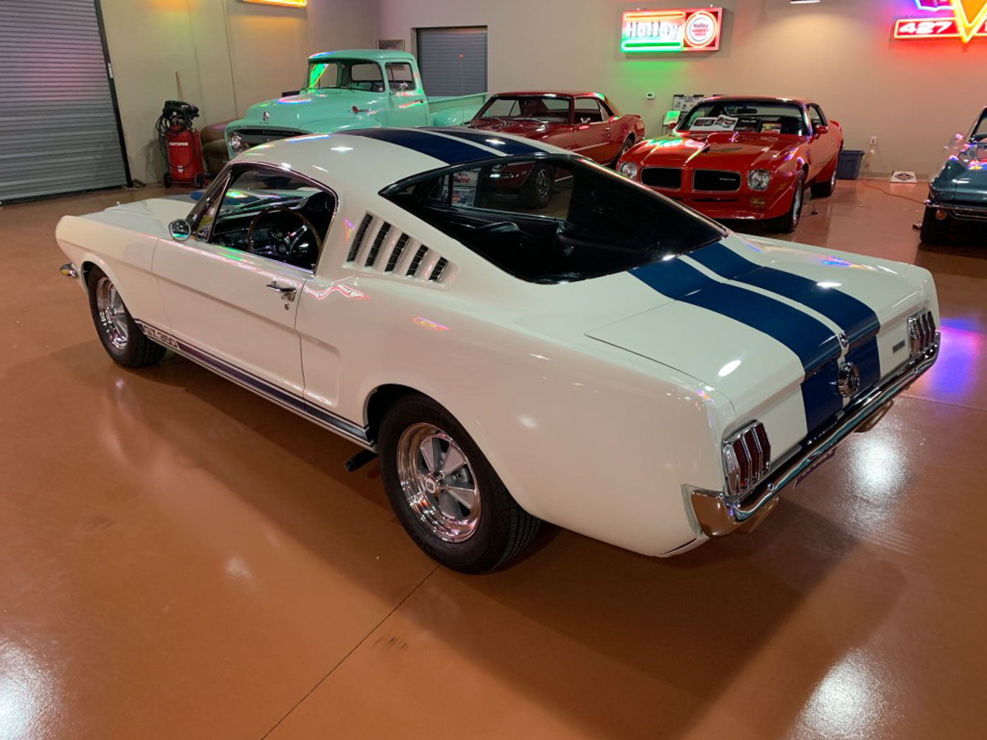 This 1965 GT350 is one of the finest available. A life-long California “Black Plate” car with an impeccable history I purchased it in 2014 from its 30+ year owner Mitch Durbin. I later sold it to its current owner, a very good friend and noted Shelby collector, and then restored it for him over a two-year period in our shop adhering to his directive to “make it the best!” Today it remains what few 1965 GT350s are, a completely numbers-matching ORIGINAL drivetrain car with all of its ORIGINAL factory sheetmetal, tags, components, and even its original upholstery. And, of course, I take great pride in the quality of the restoration. It was not just done to be correct but also so the car drives and performs like cars from our shop are known to. We don’t turn out show ponies we create Shelbys that live up to, or exceed, the legend! After all, trailer queens are no fun and improperly restored and unsorted GT350s, or ones with far worse sins, are unfortunately the norm these days.