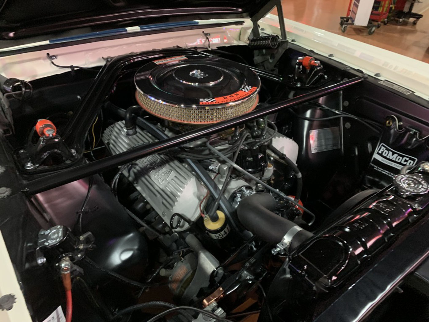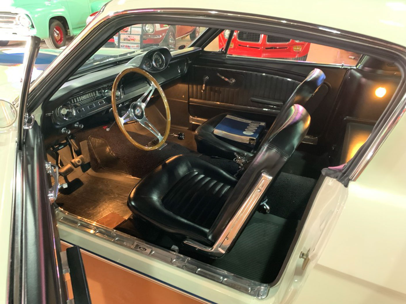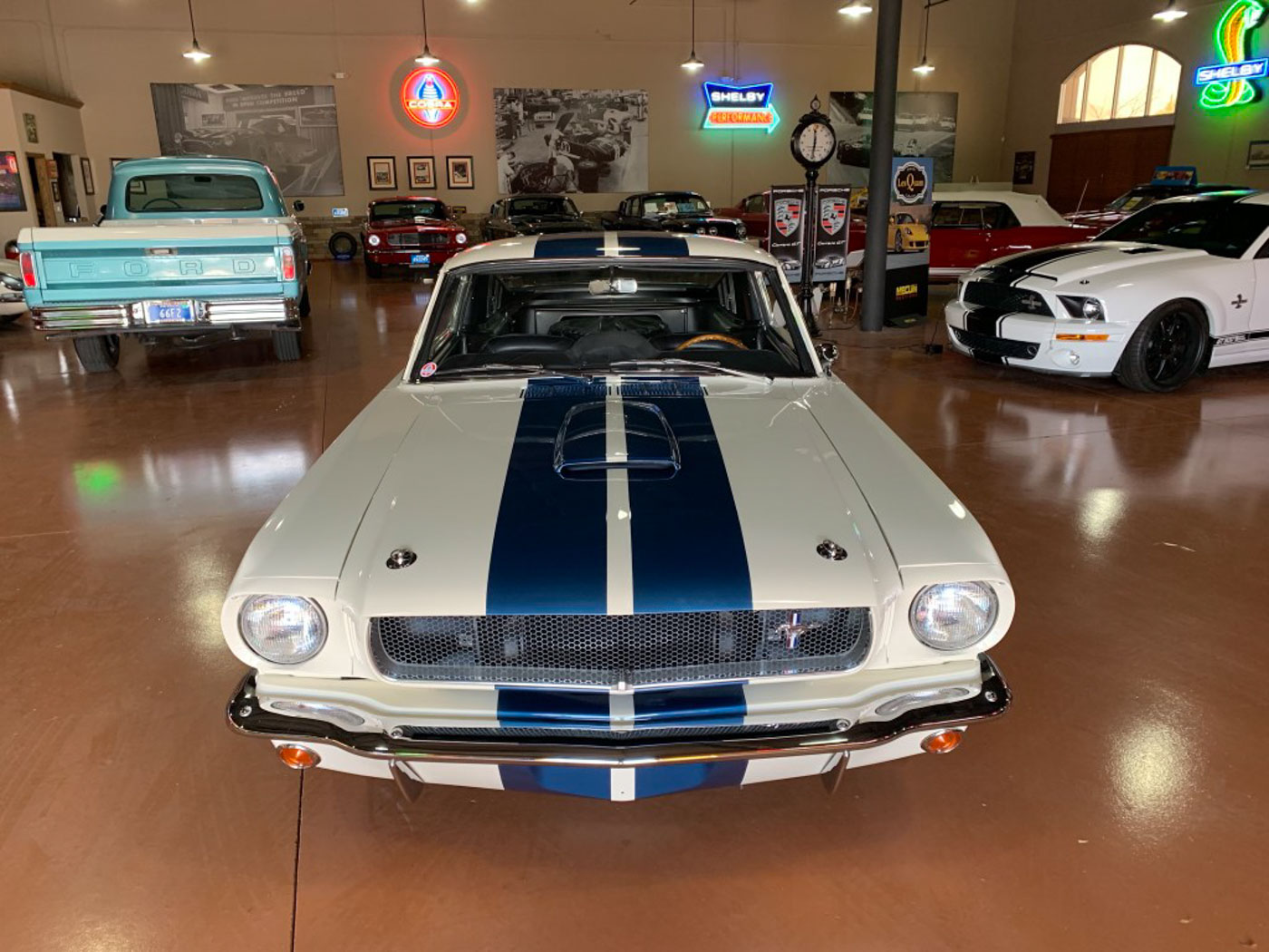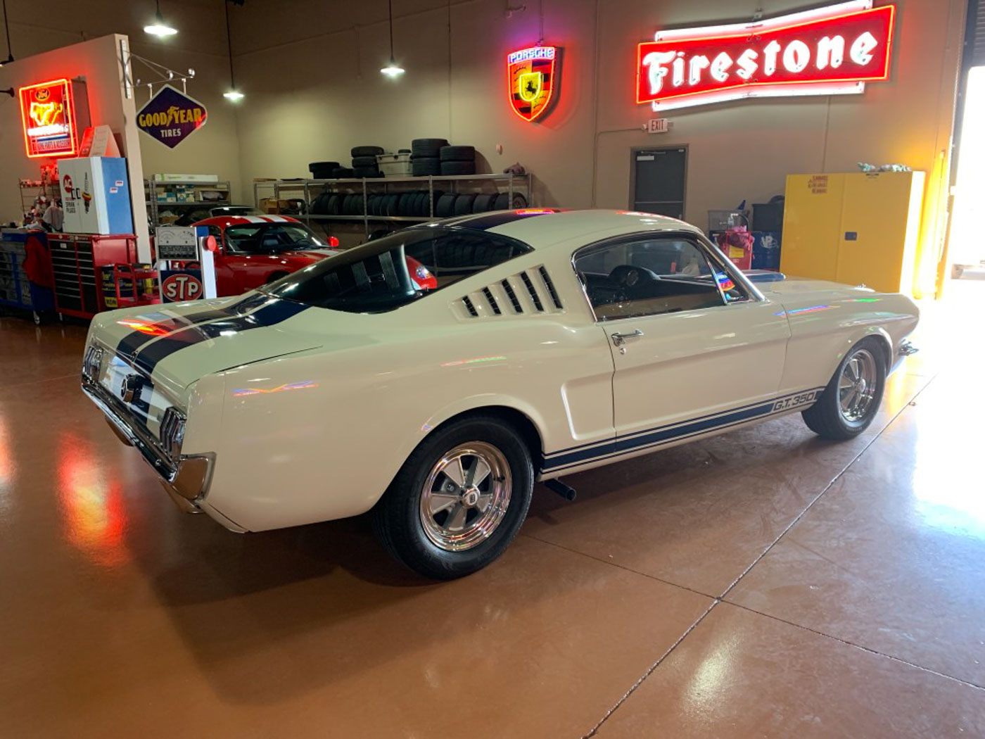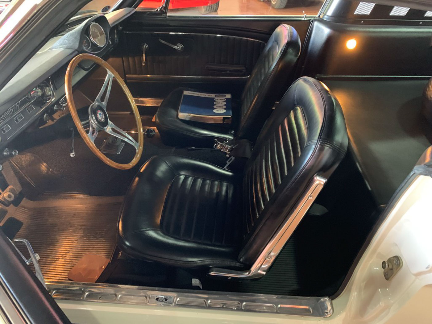 But I digress. Back to ‘ol #346. As some examples of the depth of the 2,000 plus hour restoration of this great California car the body, paint, and interior were all done in-house at CCA under my supervision with every effort made to preserve and restore original components, hardware, and trim rather than the new standard of just bolting on reproduction junk. The original engine in 346 was rebuilt by one of the best Ford race shops in the country, balanced, blueprinted and tuned to perfection on the dyno; the original aluminum T-10 rebuilt with its original gearset REM treated and fitted with NOS bearings and synchros and other updates; the fuel system made to live happily with ethanol, and many more hidden tweaks to its assembly and tuning that truly makes this a GT350 that is a joy to drive- and one that will last many more lifetimes. Its restoration is also documented with hundreds of photos documenting what it looked like before, during, and after the restoration.