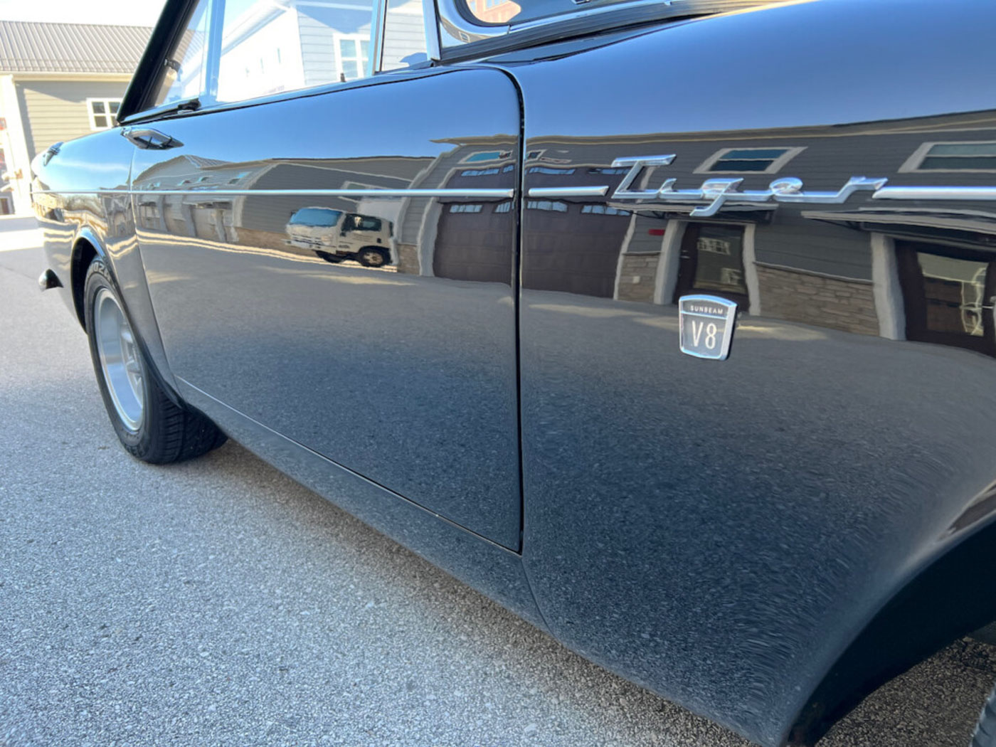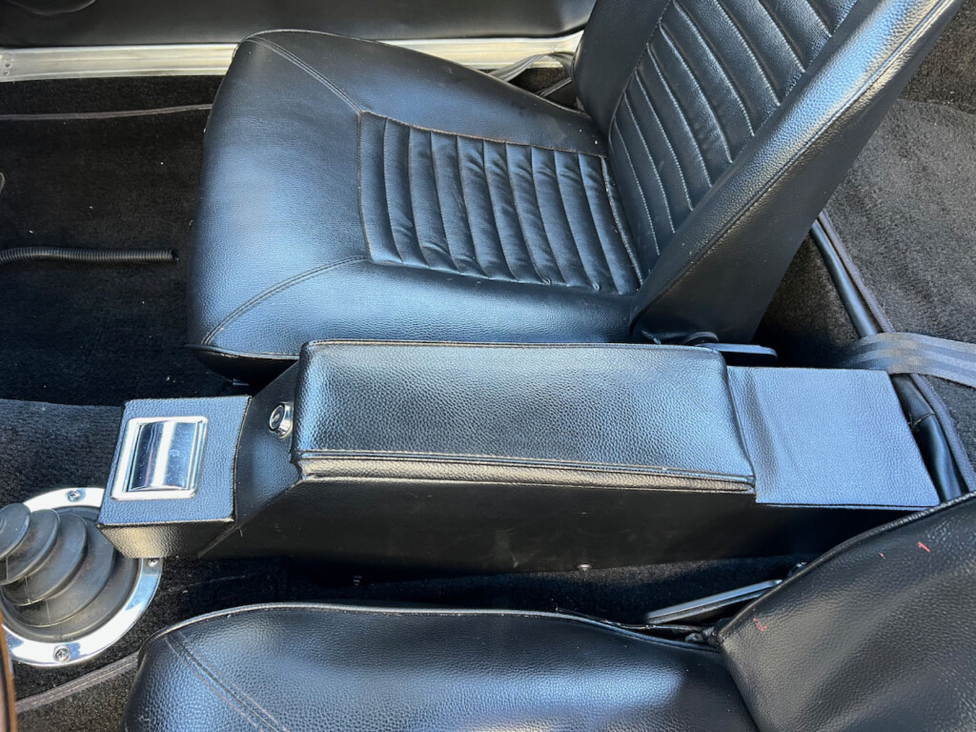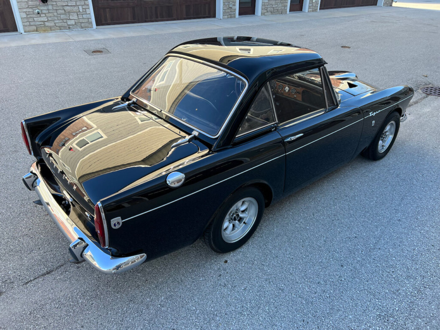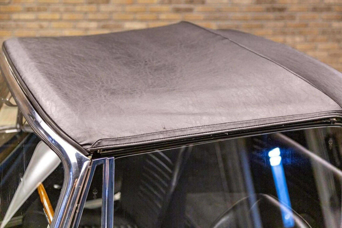 The body is super straight and solid with no signs of any rust. While it left the factory in white it was painted black many years ago, and also has the LAT style hood as you can see. It has both the factory optional hardtop as well as a newer black soft top. On the inside it is all nice and tidy stock Tiger fare with all original upholstery, new carpet, and an upgraded tach (to meet the capabilities of the easy-revving roller engine) and an upgraded temp gauge (for accuracy.) Both original gauges are included.