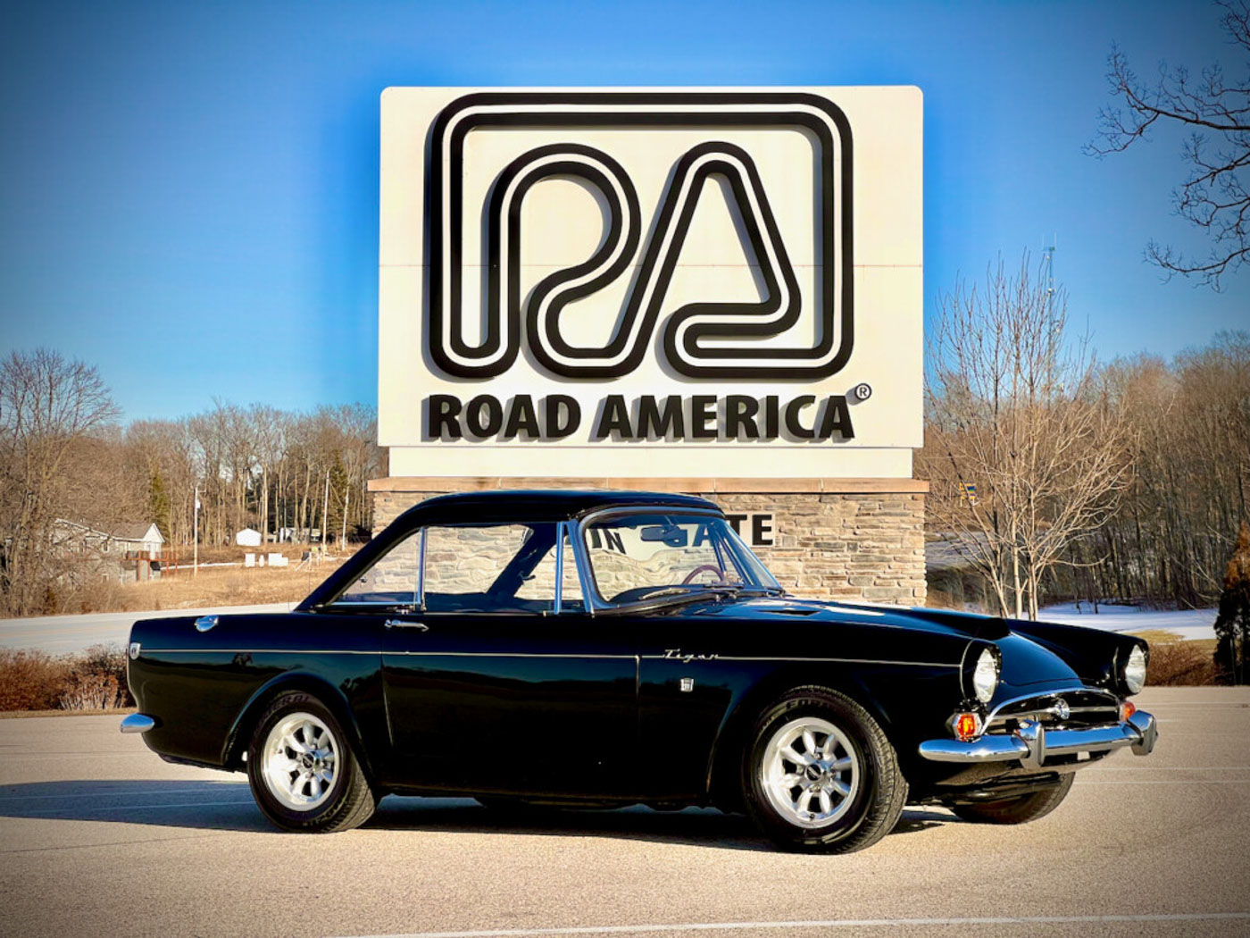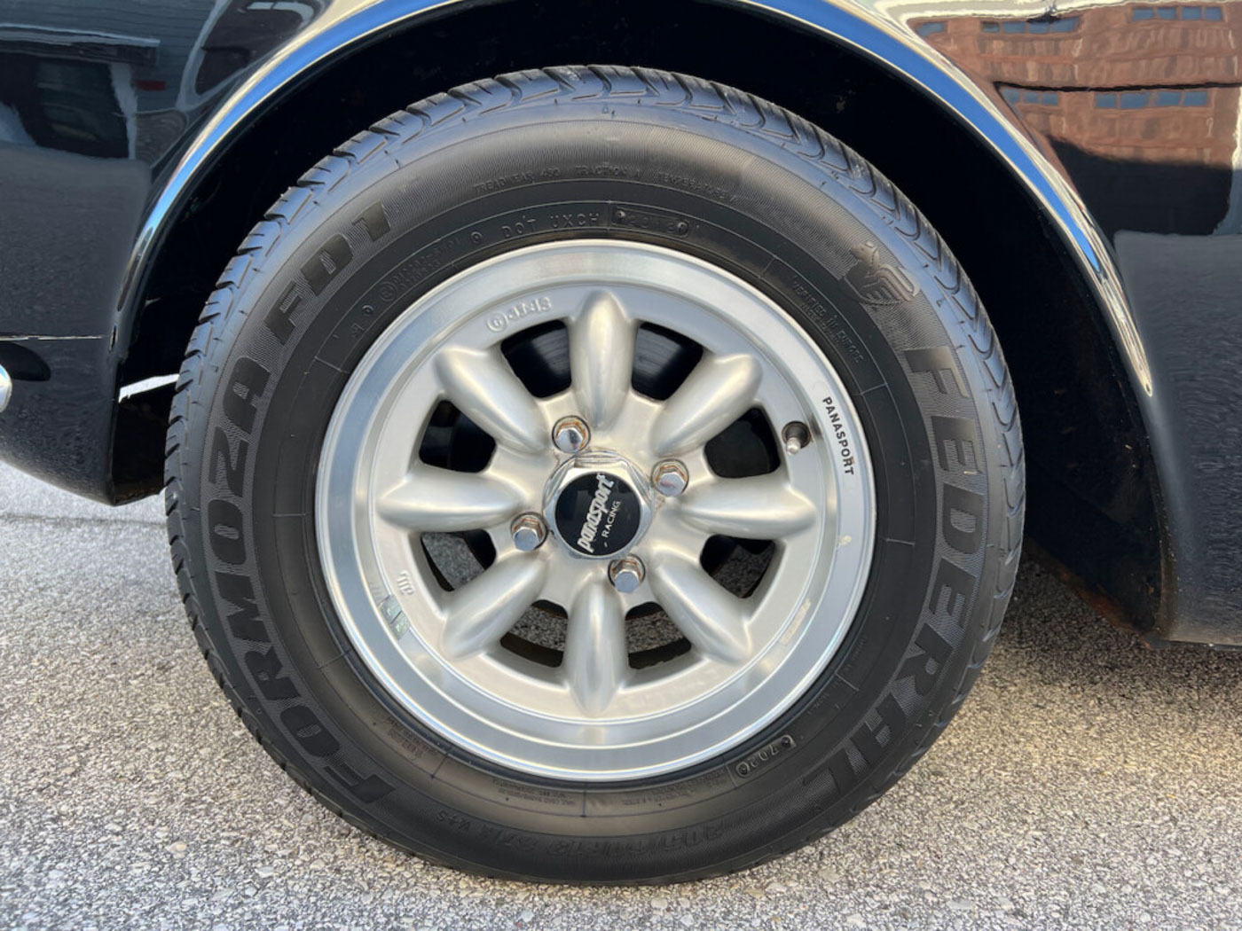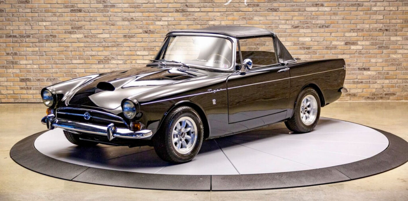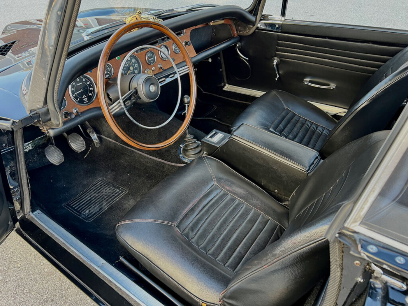 The body is super straight and solid with no signs of any rust. While it left the factory in white it was painted black many years ago, and also has the LAT style hood as you can see. It has both the factory optional hardtop as well as a newer black soft top. On the inside it is all nice and tidy stock Tiger fare with all original upholstery, new carpet, and an upgraded tach (to meet the capabilities of the easy-revving roller engine) and an upgraded temp gauge (for accuracy.) Both original gauges are included.