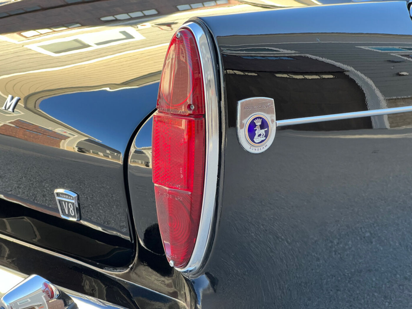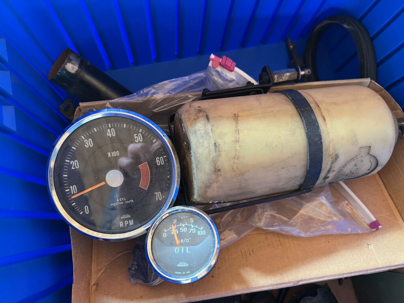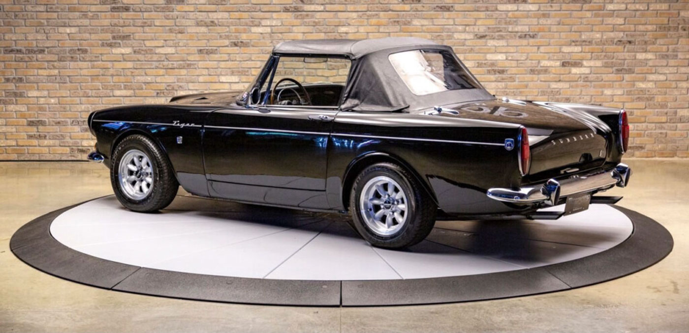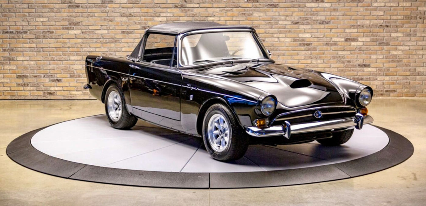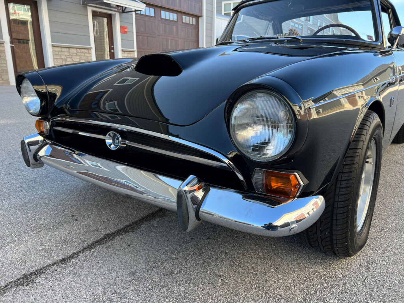 The body is super straight and solid with no signs of any rust. While it left the factory in white it was painted black many years ago, and also has the LAT style hood as you can see. It has both the factory optional hardtop as well as a newer black soft top. On the inside it is all nice and tidy stock Tiger fare with all original upholstery, new carpet, and an upgraded tach (to meet the capabilities of the easy-revving roller engine) and an upgraded temp gauge (for accuracy.) Both original gauges are included.