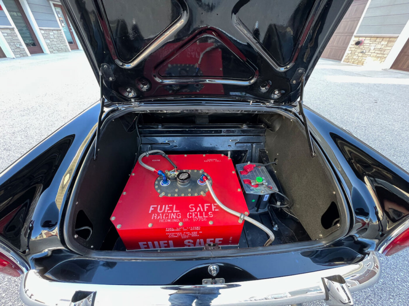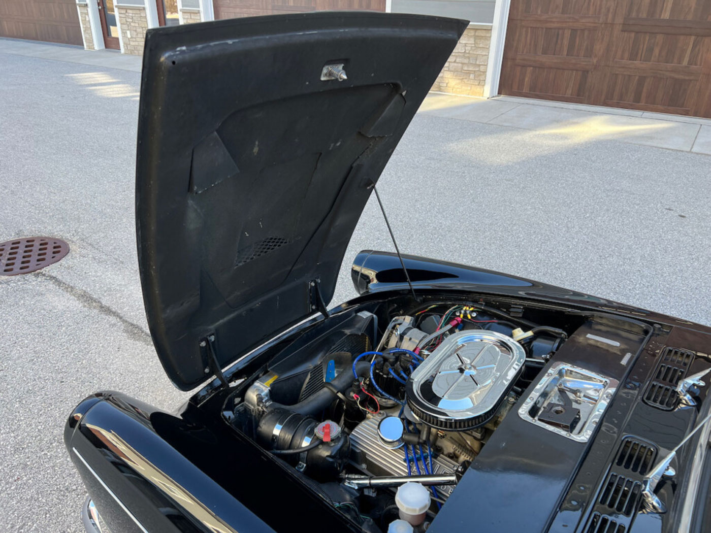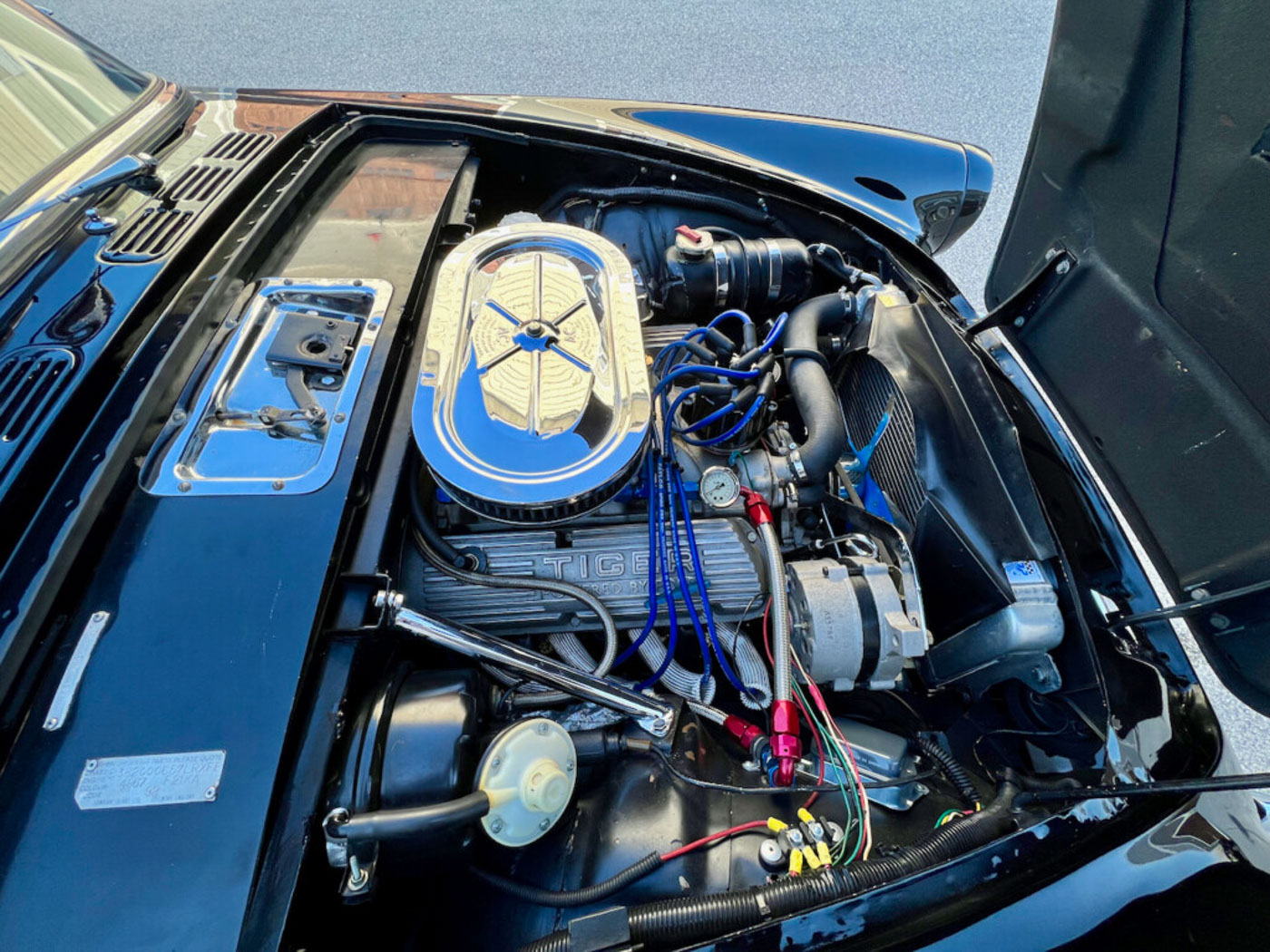 Under the hood is a nicely warmed over 302 CID engine with a roller cam and valvetrain, topped with an Edelbrock Performer intake and a small Holley 4bbl. It also has a slick set of exhaust headers, an exhaust with Borla SS mufflers, and other logical upgrades including a stout Griffin aluminum radiator. The original 4 speed Toploader trans is still in place, and a very trick torque arm system is installed that eliminates the famous Tiger wheelhop issue. The original dual saddle fuel tanks were removed and a single ATL fuel cell was mounted in the trunk for safety. The original fuel tanks, crossover tube, hardware and trunk board are all included with the sale.