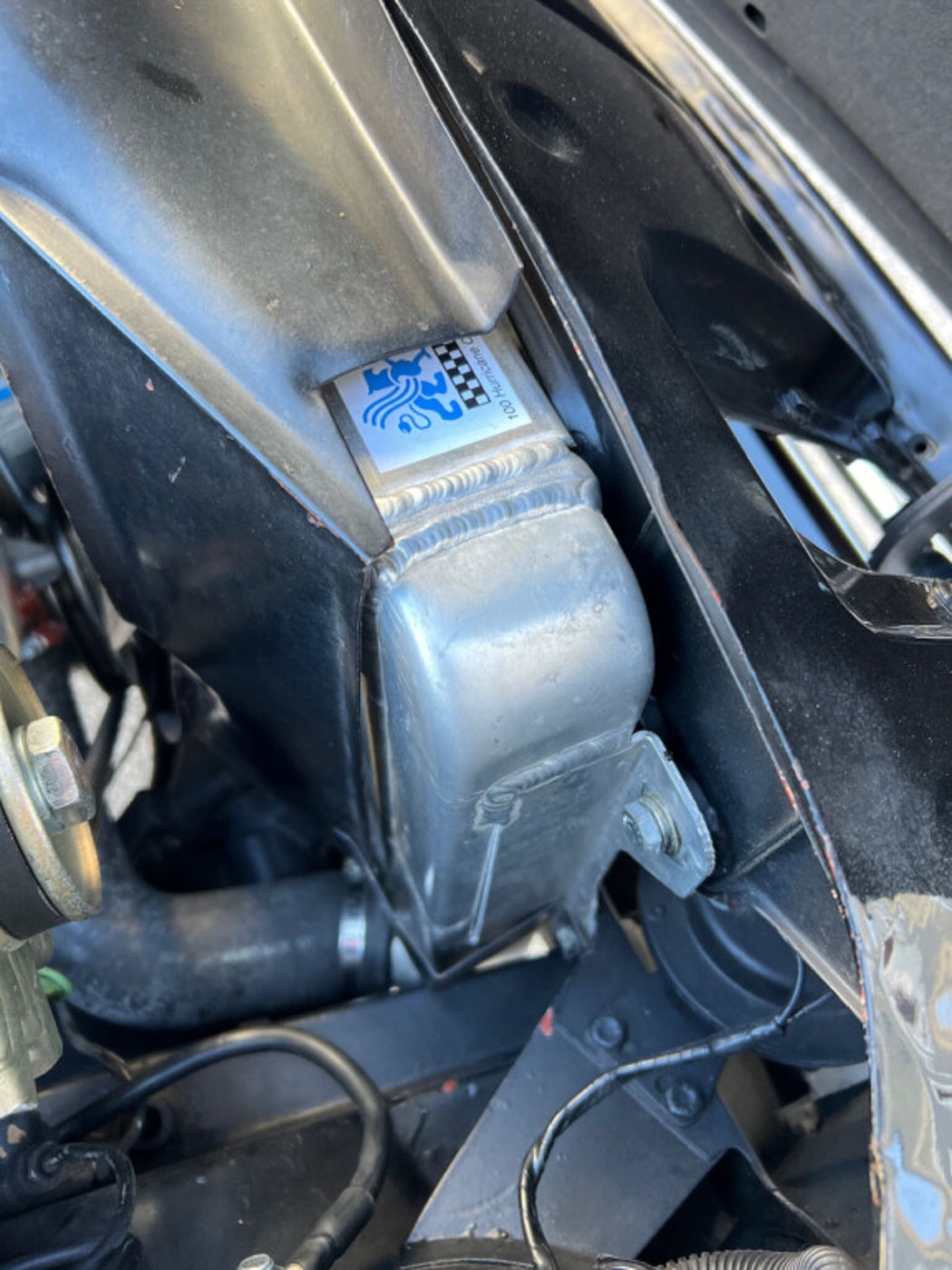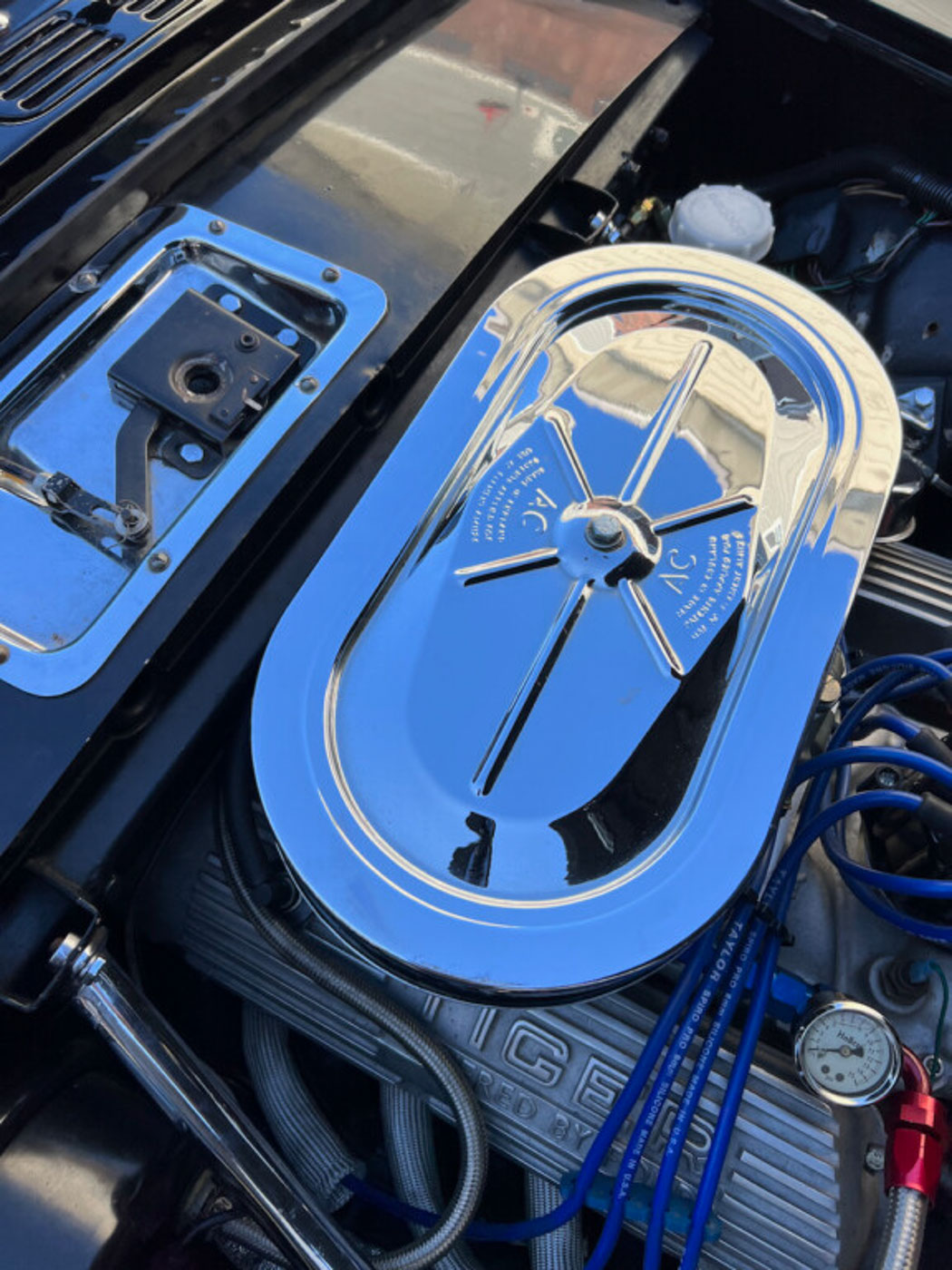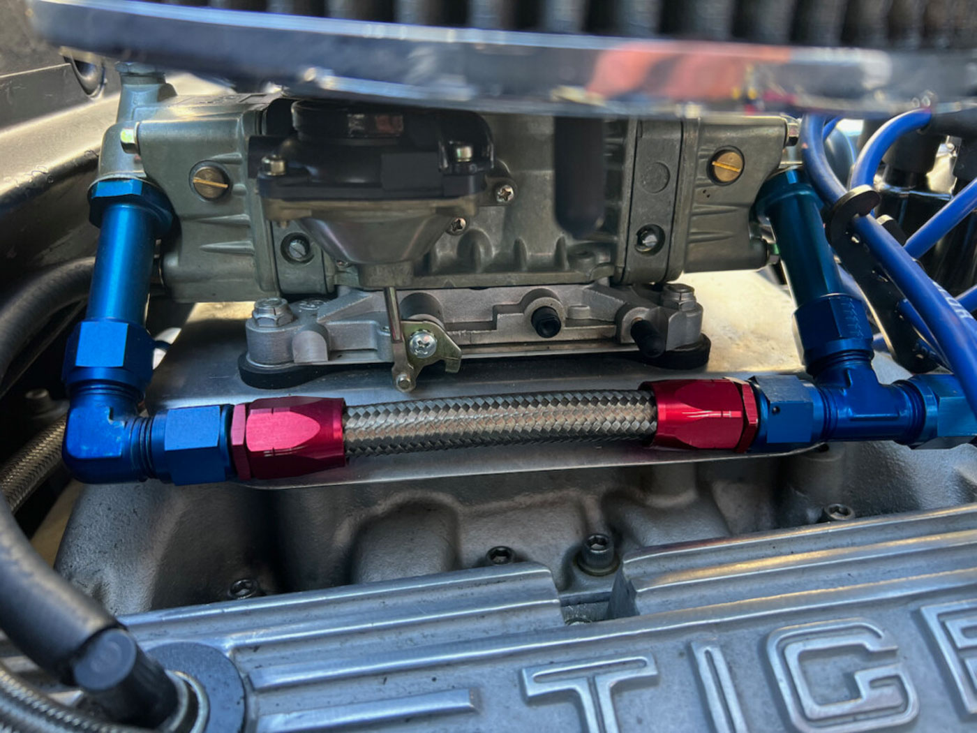 Under the hood is a nicely warmed over 302 CID engine with a roller cam and valvetrain, topped with an Edelbrock Performer intake and a small Holley 4bbl. It also has a slick set of exhaust headers, an exhaust with Borla SS mufflers, and other logical upgrades including a stout Griffin aluminum radiator. The original 4 speed Toploader trans is still in place, and a very trick torque arm system is installed that eliminates the famous Tiger wheelhop issue. The original dual saddle fuel tanks were removed and a single ATL fuel cell was mounted in the trunk for safety. The original fuel tanks, crossover tube, hardware and trunk board are all included with the sale.