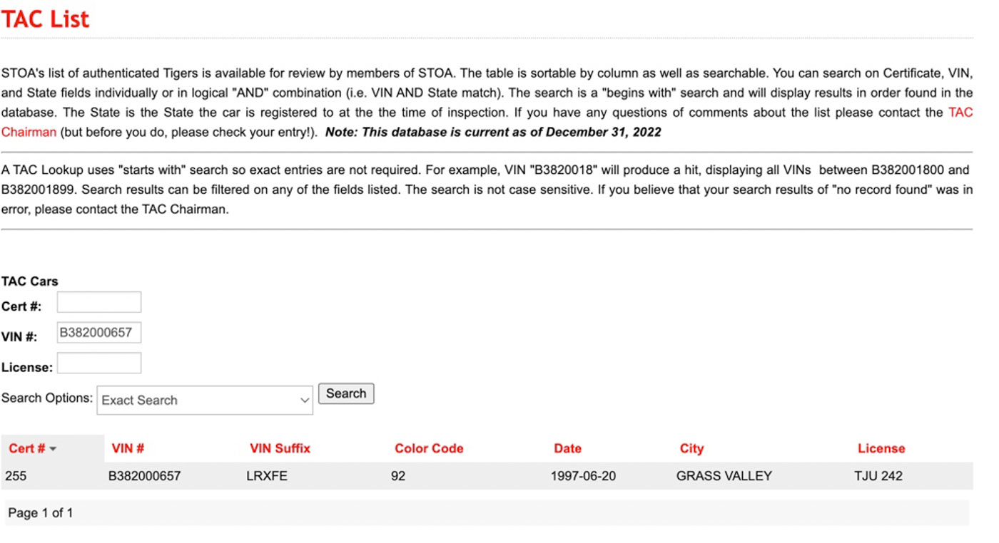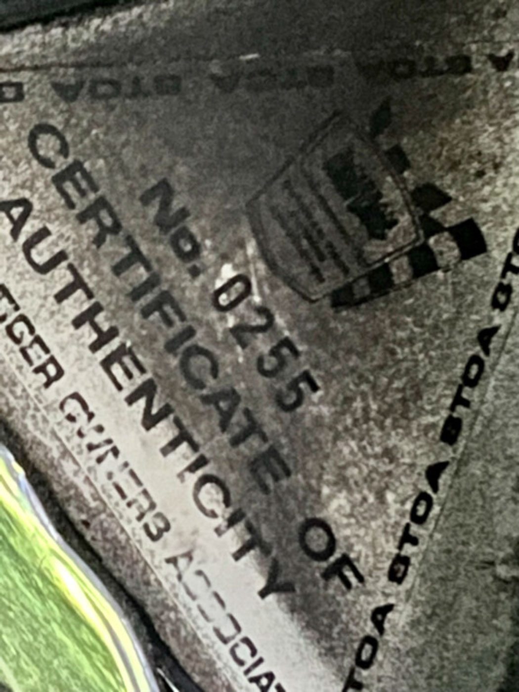 And, before we go any further, yes it is a TAC’d STOA certified real Tiger wearing TAC #255. A screenshot of it being in the STOA TAC Registry is included here.