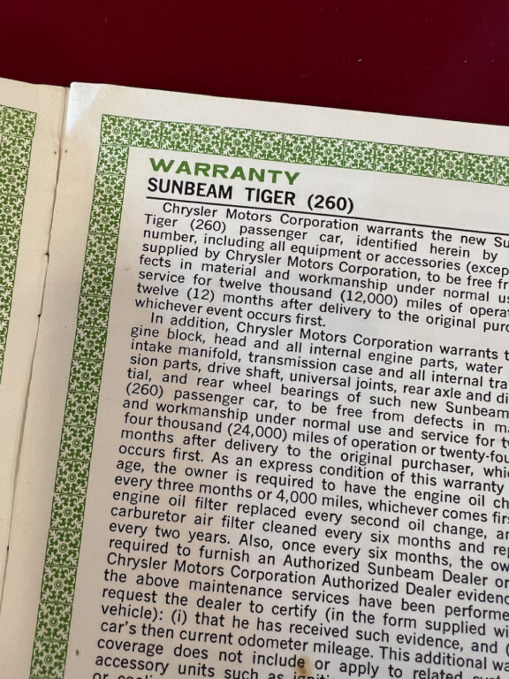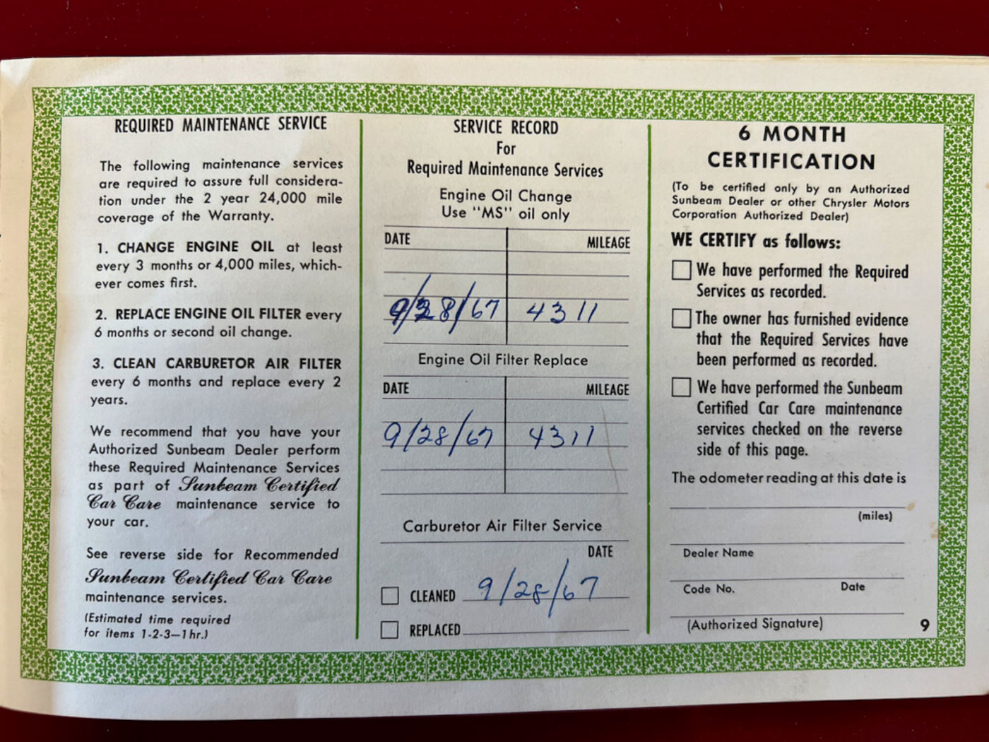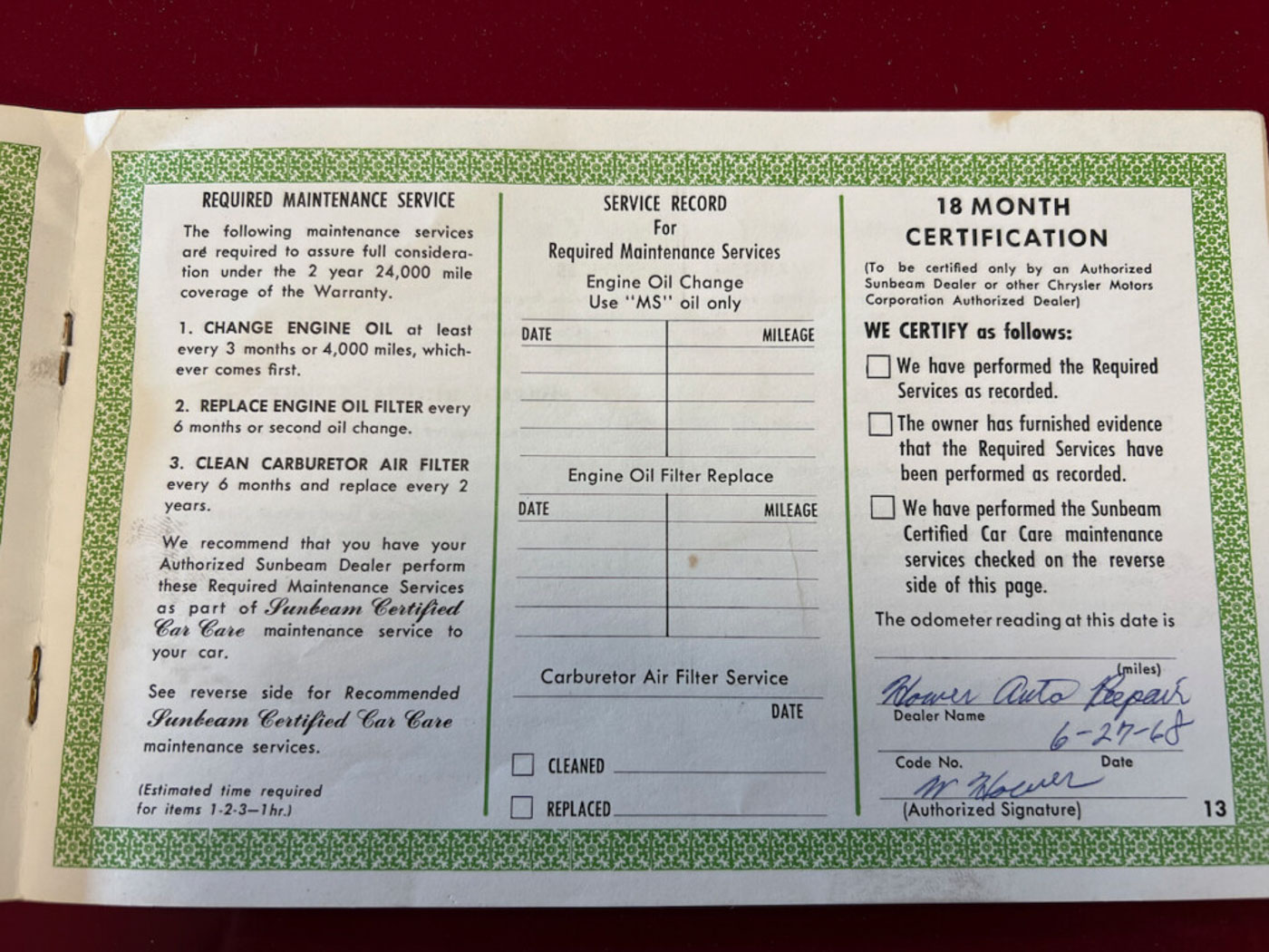 In addition it comes with its original owner’s manual and warranty card showing that it was sold new at Peter Pan Motors in San Francisco California on 11/21/1966.