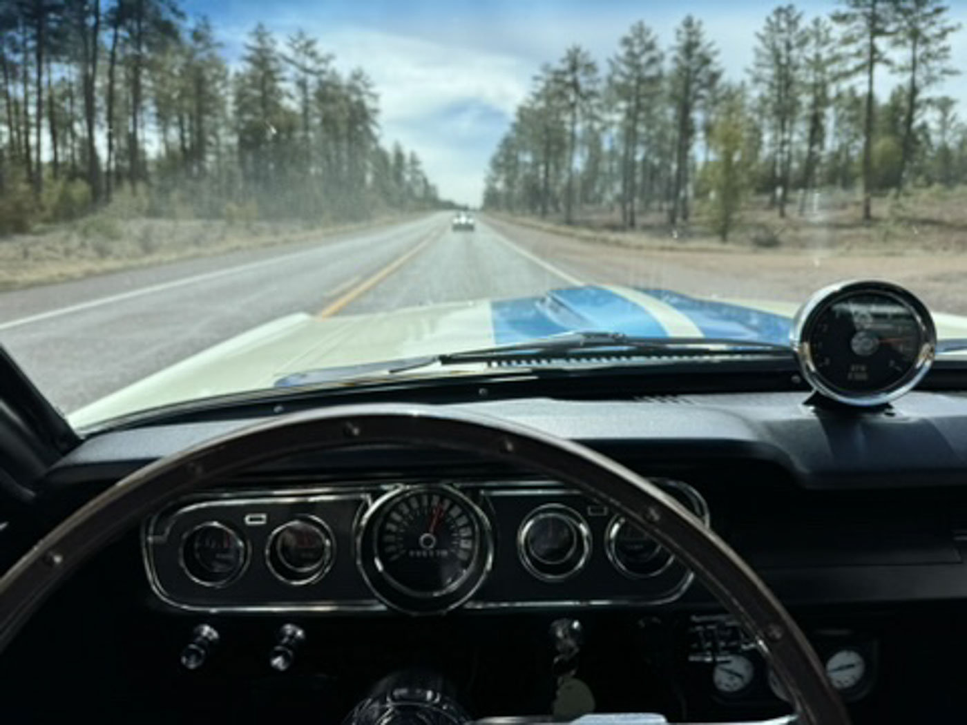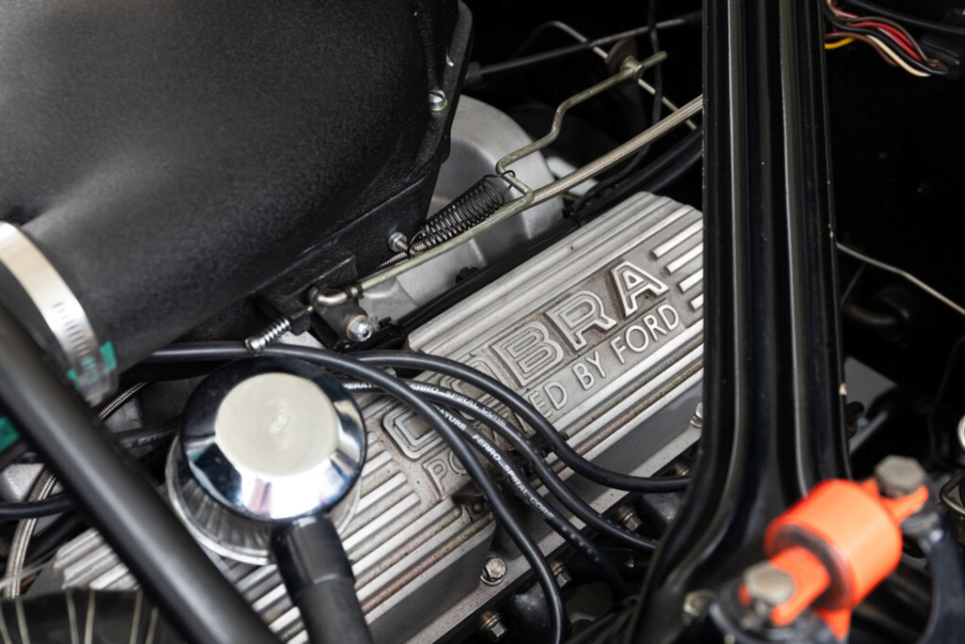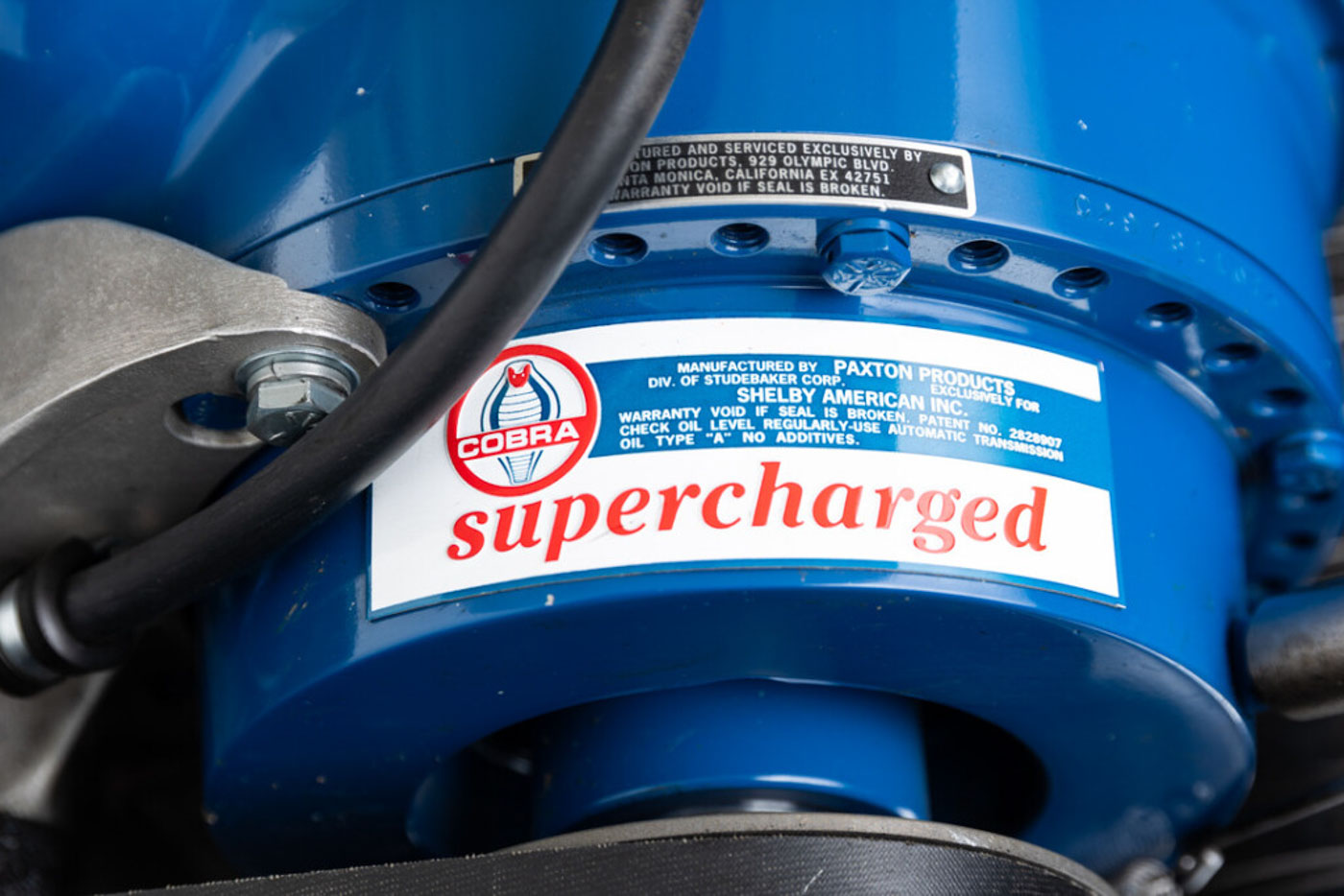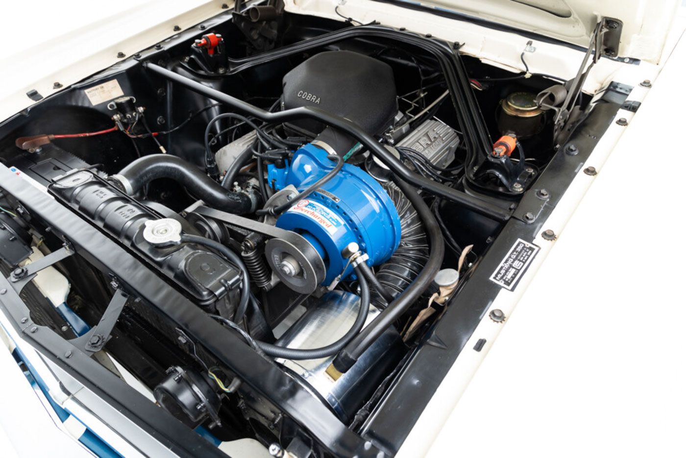 6S145 has been in my care for over a decade, during which time I have comprehensively sorted and fine tuned it, regardless of cost, into one of the best driving 65/66 GT350s you will ever find. Her original engine was rebuilt, balanced, and blueprinted by my race engine builder, her original T10 4 speed was rebuilt with all NOS wear items, the complete suspension was rebuilt and detailed, a custom aluminum driveshaft installed, a 3.25:1 ring and pinion installed for high speed touring, and all of the other special “tweaks” that I have developed over 35 years of playing with these cars were thrown at it. There is a full, exact replica Scott Fuller exhaust ($4500) under the car that sounds absolutely spot on. The dated original Paxton blower was rebuilt by Craig Conley of Paradise Wheels, and an accessory Paxton oil cooler setup was added to keep it healthy on long drives. The car rides on a set of restored original Shelby Cragar wheels fitted with period-correct looking, but modern performing, Blockley W speed rated tires. Suffice it to say the list of mechanical preparation is extensive, and the end result is a Shelby that lives up to the legend when you drive it.