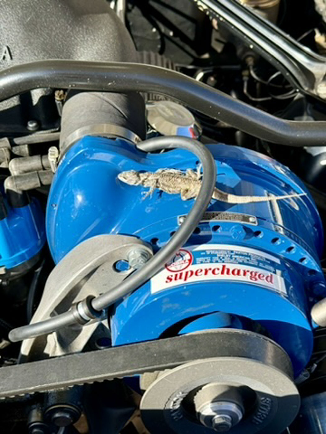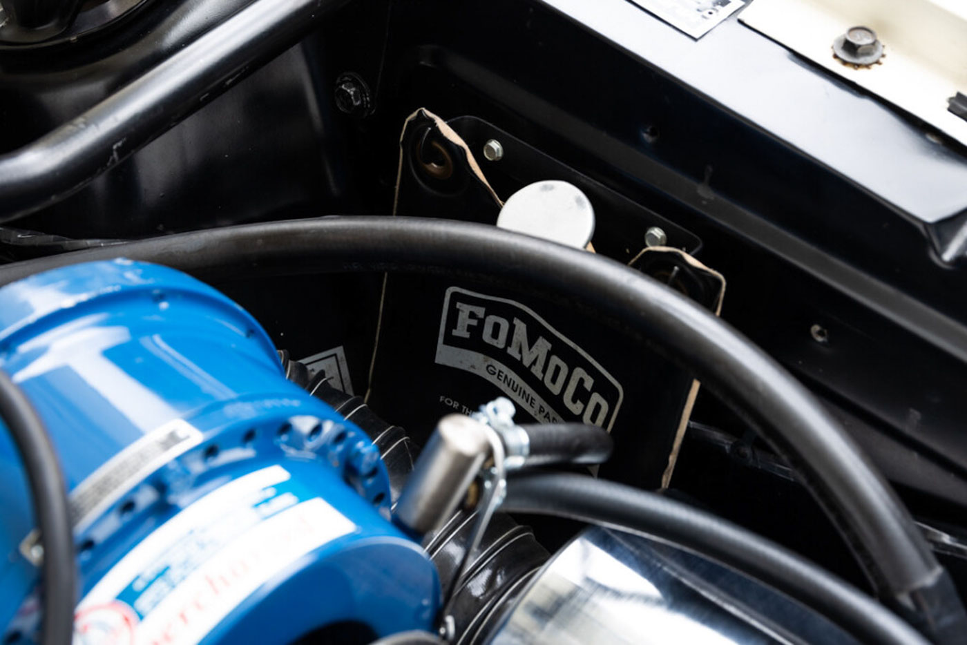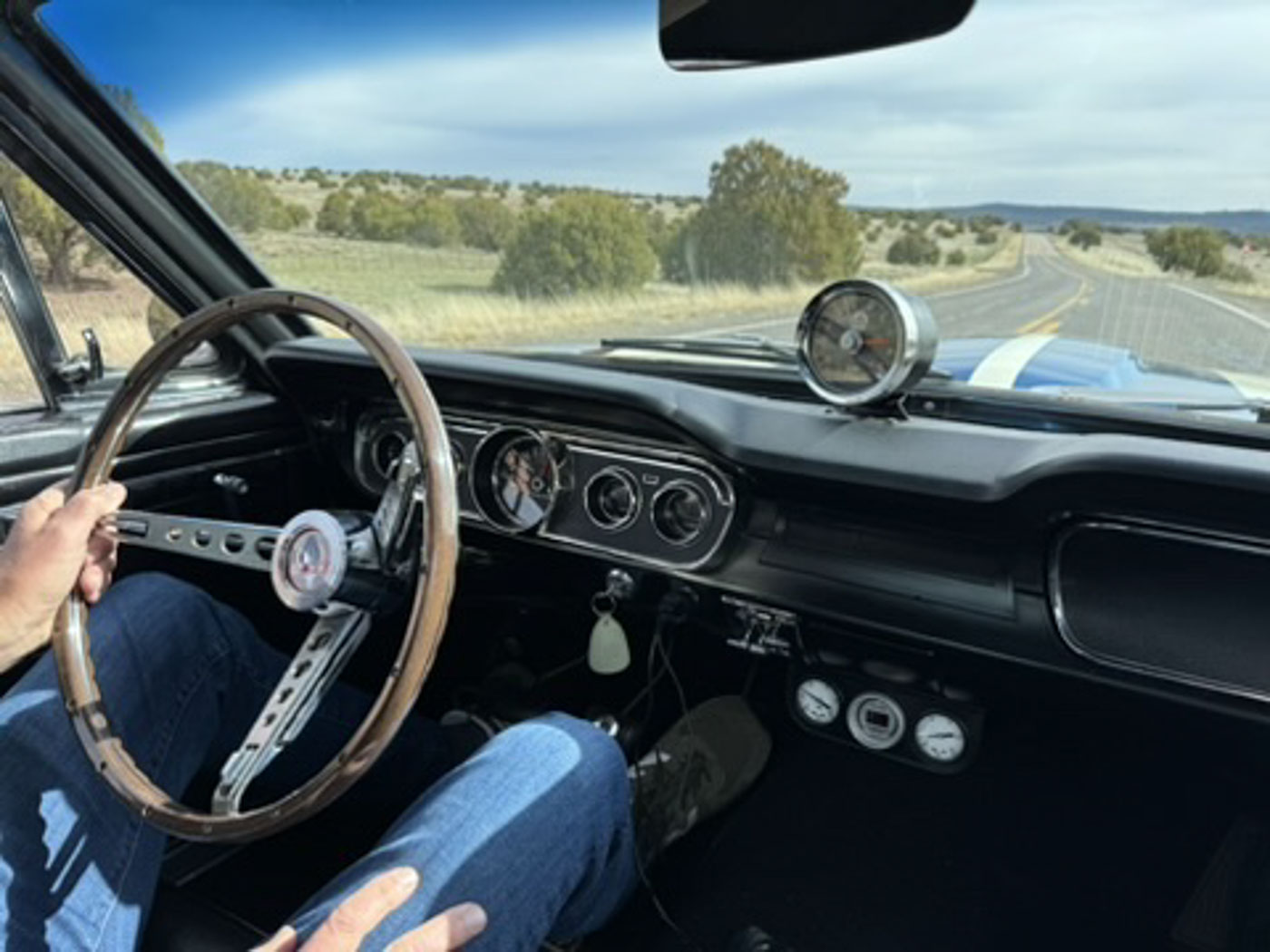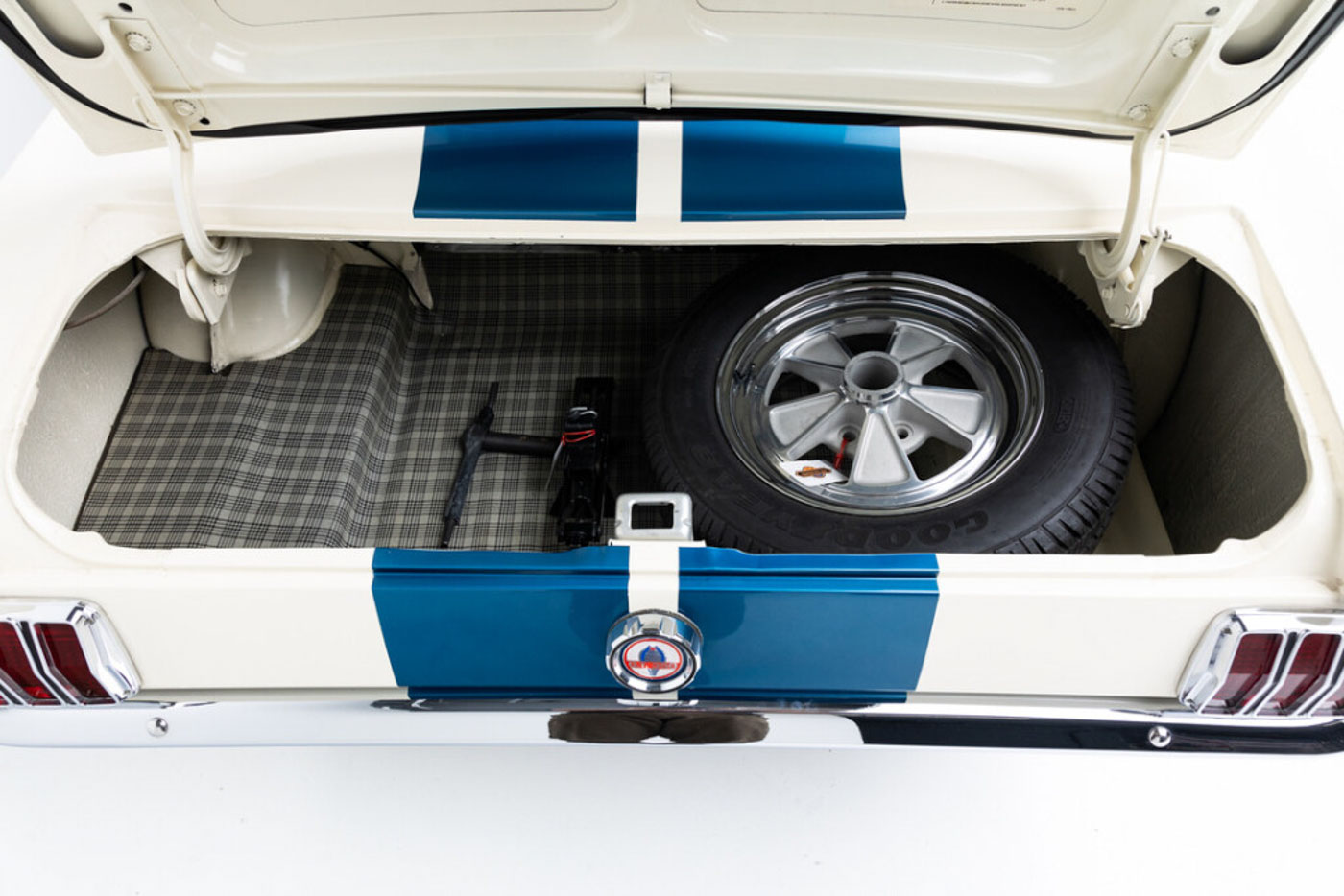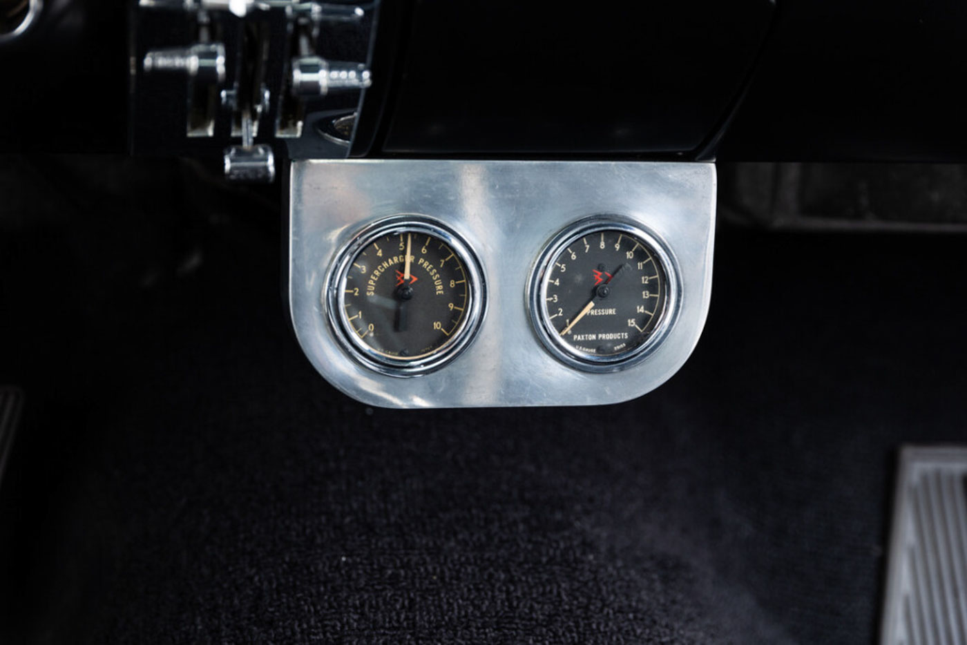 6S145 has been in my care for over a decade, during which time I have comprehensively sorted and fine tuned it, regardless of cost, into one of the best driving 65/66 GT350s you will ever find. Her original engine was rebuilt, balanced, and blueprinted by my race engine builder, her original T10 4 speed was rebuilt with all NOS wear items, the complete suspension was rebuilt and detailed, a custom aluminum driveshaft installed, a 3.25:1 ring and pinion installed for high speed touring, and all of the other special “tweaks” that I have developed over 35 years of playing with these cars were thrown at it. There is a full, exact replica Scott Fuller exhaust ($4500) under the car that sounds absolutely spot on. The dated original Paxton blower was rebuilt by Craig Conley of Paradise Wheels, and an accessory Paxton oil cooler setup was added to keep it healthy on long drives. The car rides on a set of restored original Shelby Cragar wheels fitted with period-correct looking, but modern performing, Blockley W speed rated tires. Suffice it to say the list of mechanical preparation is extensive, and the end result is a Shelby that lives up to the legend when you drive it.