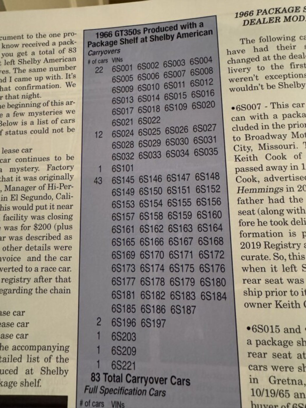 Part of the charm of 6S145 is that it was discovered as a completely intact, 22 year old Shelby in the late 1980s and restored to an incredibly high level shortly thereafter, with only service items needing replacement. 6S145 was later featured in Mustang Monthly in July, 2000. Today the car shows a fantastic light patina and presents as the totally righteous, no BS, no bad stories car it is. I have an extensive photo album documenting the car from its pre-restoration state in 1989 through the restoration that shows just how great the “bones” are on 6S145, not to mention that it was a spectacularly solid and original car to start with.