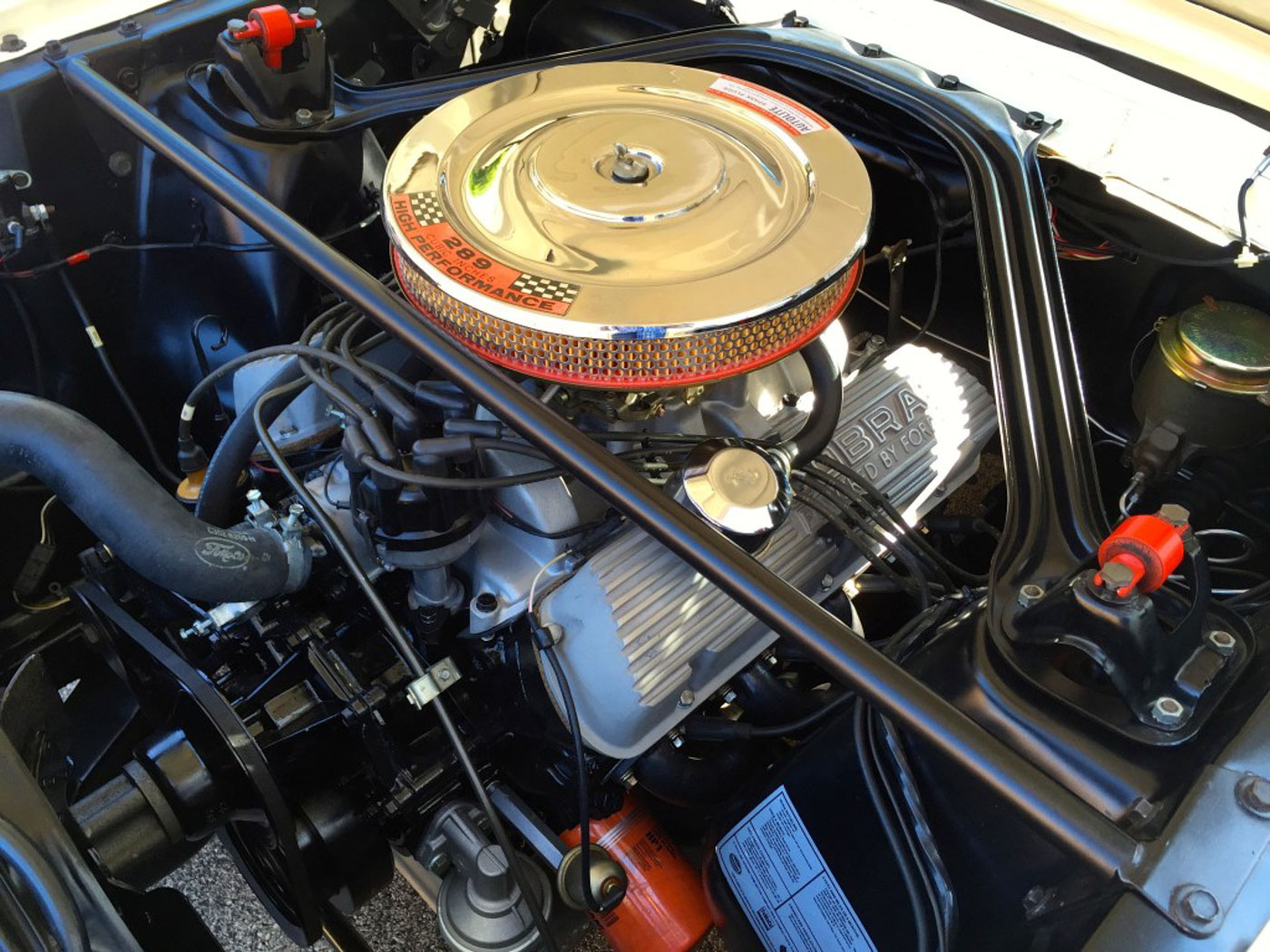 Once saved 6S145 underwent a meticulous restoration to standards far above what was the norm in the late 1980s, and she went on to be featured in Mustang Monthly in July, 2000. Since that time she has been treated with fastidious care by a long term owner whom I purchased 6S145 from in early 2015. Upon my purchase I embarked on a comprehensive mechanical renovation to bring her performance up to my lofty standards. Some examples: The original numbers-matching engine was completely rebuilt, balanced, and blueprinted by our ace engine builder with all of the “tweaks” we’ve developed over the last 30 years, and then broken in and precisely tuned on the dyno. 145’s original aluminum T-10M transmission was completely rebuilt as well with REM-treated gears and careful blueprinted assembly. A custom aluminum driveshaft was installed as well. The complete suspension and Koni shocks were carefully gone through and setup to my specifications, and a V rated set of Michelin tires fitted. The braking system had all hydraulics rebuilt and Porterfield R4S compound pads and shoes installed. All ethanol safe fuel hoses were fitted, the original radiator re-cored, and a new heater core installed. A concours-correct Scott Fuller exhaust was installed mated up to original Tri-Y headers that were black ceramic coated. And the list goes on. Suffice it to say there is not a better sorted or better performing Carryover car around.