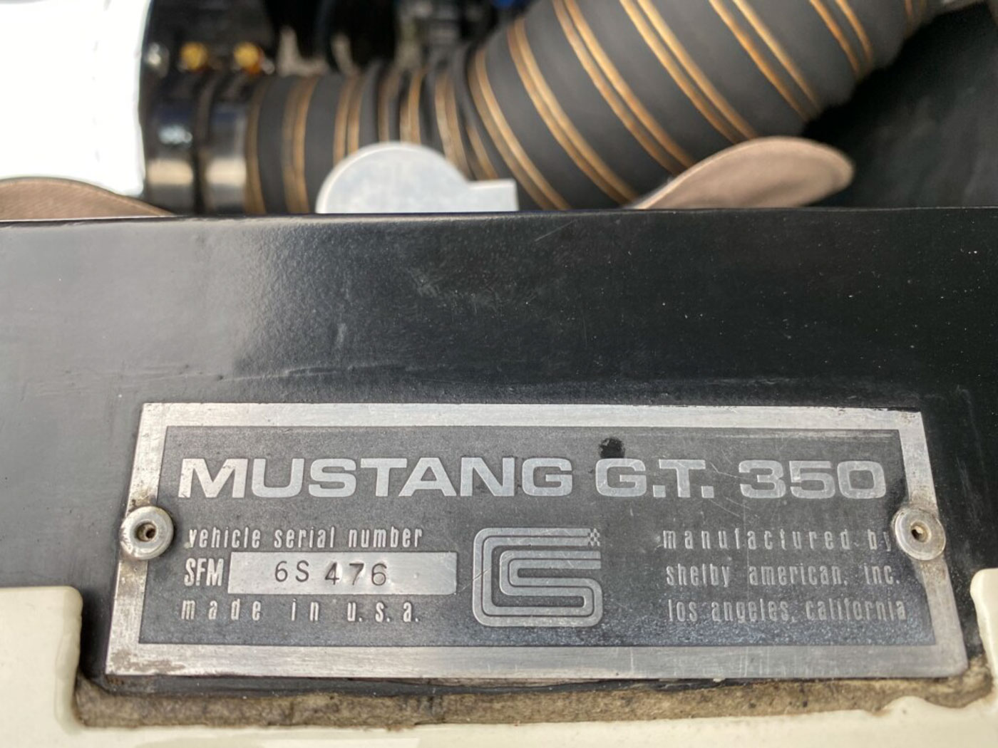 6S476. Hertz. White. A radio was installed by Hi-Performance Motors (El Segundo, CA) 1/13/66. Shipped to S&C Motors, Inc. (San Francisco, CA) 2/4/66 for dealer prep prior to delivery to Hertz (San Francisco, CA); they were invoiced $3,514 plus $104.56 for chrome Magnum wheels plus $45.45 radio plus $20 pre-delivery plus $141.75 freight for a total $3,825.76. 4/27/66 warranty service was done for leaking gaskets at Broadway Motors (Oakland, CA) with 2,206 miles. Purchased by unknown original owner (OR) who had a Shelby Paxton supercharger installed that later had the blower seize. Purchased by way of a trade-in by Shoffner’s Auto Sales (Redding, CA). Purchased by Jack Morrison (CA) for $1,400. There were no LeMans stripes or “H” in the side stripe. Jack remembers that it had original paint, original chrome Magnum wheels and a Paxton supercharger complete except for the blower. He replaced the Magnums with stock 15 x 7 Ford rims. Purchased by unknown owner. Purchased by Lou Gerald Ford (CA) with the Paxton still on the car minus the seized Paxton blower. Purchased by Mr. and Mrs Heiser (Redding, CA) who took off the 4V carburetor and the distributor to be replaced with a 2V and a vacuum advance distributor to save on gasoline. Purchased by Rodney A. Vaira (Redding, CA) ‘84 and noted by Vaira as having all original drivetrain, sheetmetal and interior. The original intake manifold was in the trunk along with the bottom of a Shelby Paxton supercharger enclosure on the bottom of the HP 4100 Autolite carburetor. It also had the Paxton air cleaner assembly and pulley still under the hood. In ‘09 it was undergoing restoration by Shasta Mustang Supply which was documented through a multi-page thread on the SAAC Forum. It was completed 7/11 and then the car was put up for sale by Shasta on behalf of Vaira. Purchased by Colin E. Comer (Milwaukee, WI) 12/30/11. He had the Paxton setup rebuilt by Craig Conley, rebuilt the original numbers matching engine and installed a T-5 transmission, placing the original C4 Hipo automatic on a shelf for safekeeping. He bought it with 90K miles on the odometer in ’11 and it had 99K on it as of January ‘20.