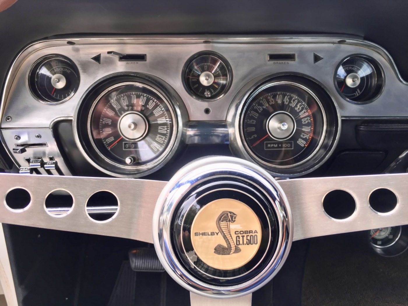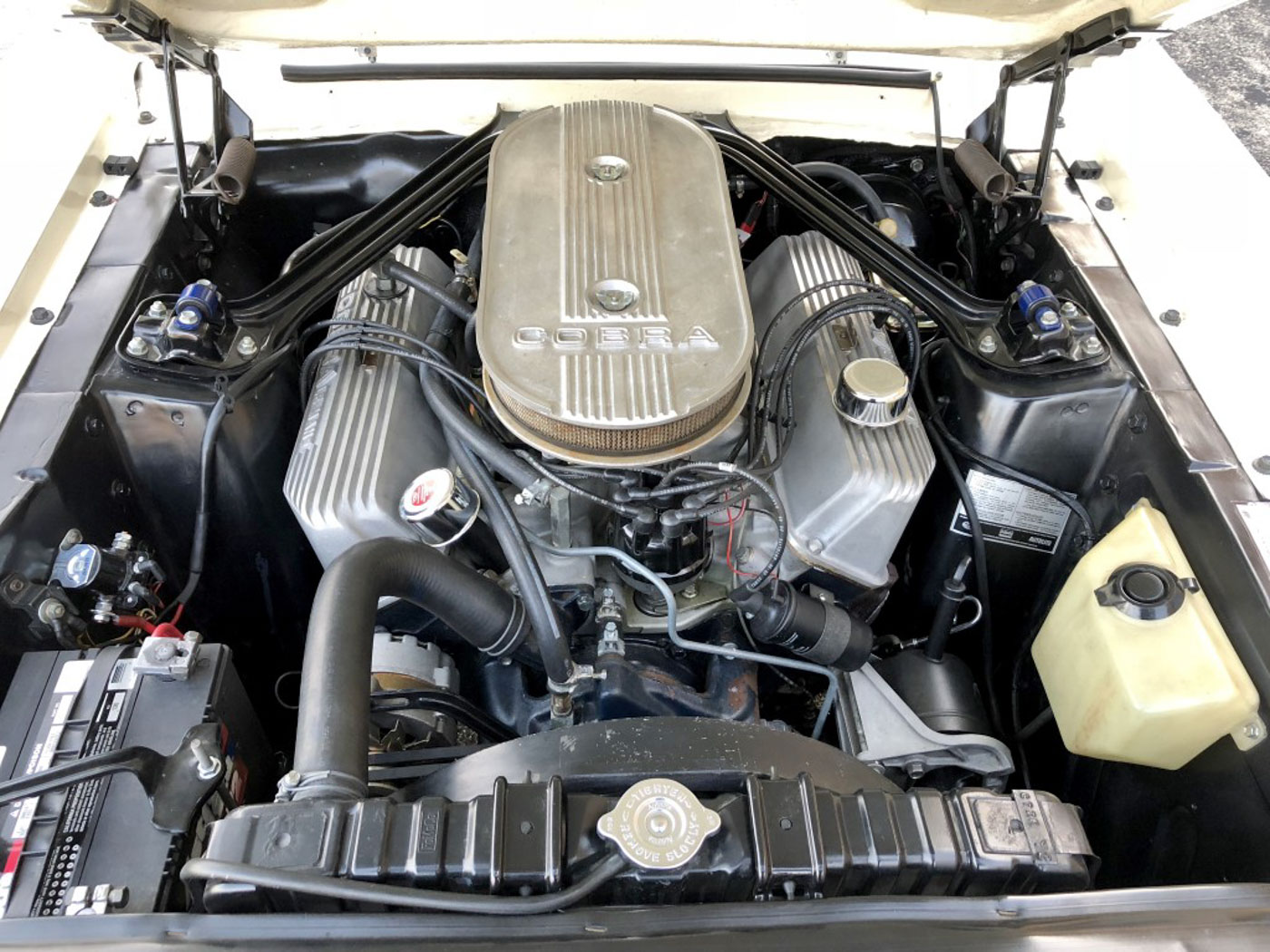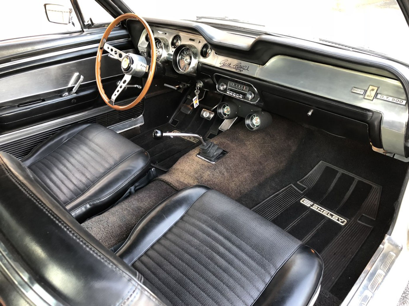 I’ve known this car for roughly 20 years, and even tried to buy it about 18 years ago but was beat to the punch by its last owner Jon Johnson. Unfortunately a few years after Jon purchased it he passed away, and because his family knew how important this GT500 was to him they held on it it until selling it to me early this year. Upon my purchase, due to its lengthy time in storage (some 15 years) I had 1763 completely gone through in my shop. No stone was left unturned nor was any expense spared to make it run, drive, perform and function as new. The entire drivetrain has been professionally rebuilt, as has the fuel, braking, and suspension systems. New correct Polyglas tires were also mounted on its correct 15×6″ steel wheels with mint original 1967 Shelby hubcaps. All of this service work is fully documented and I am happy to go over it in detail.