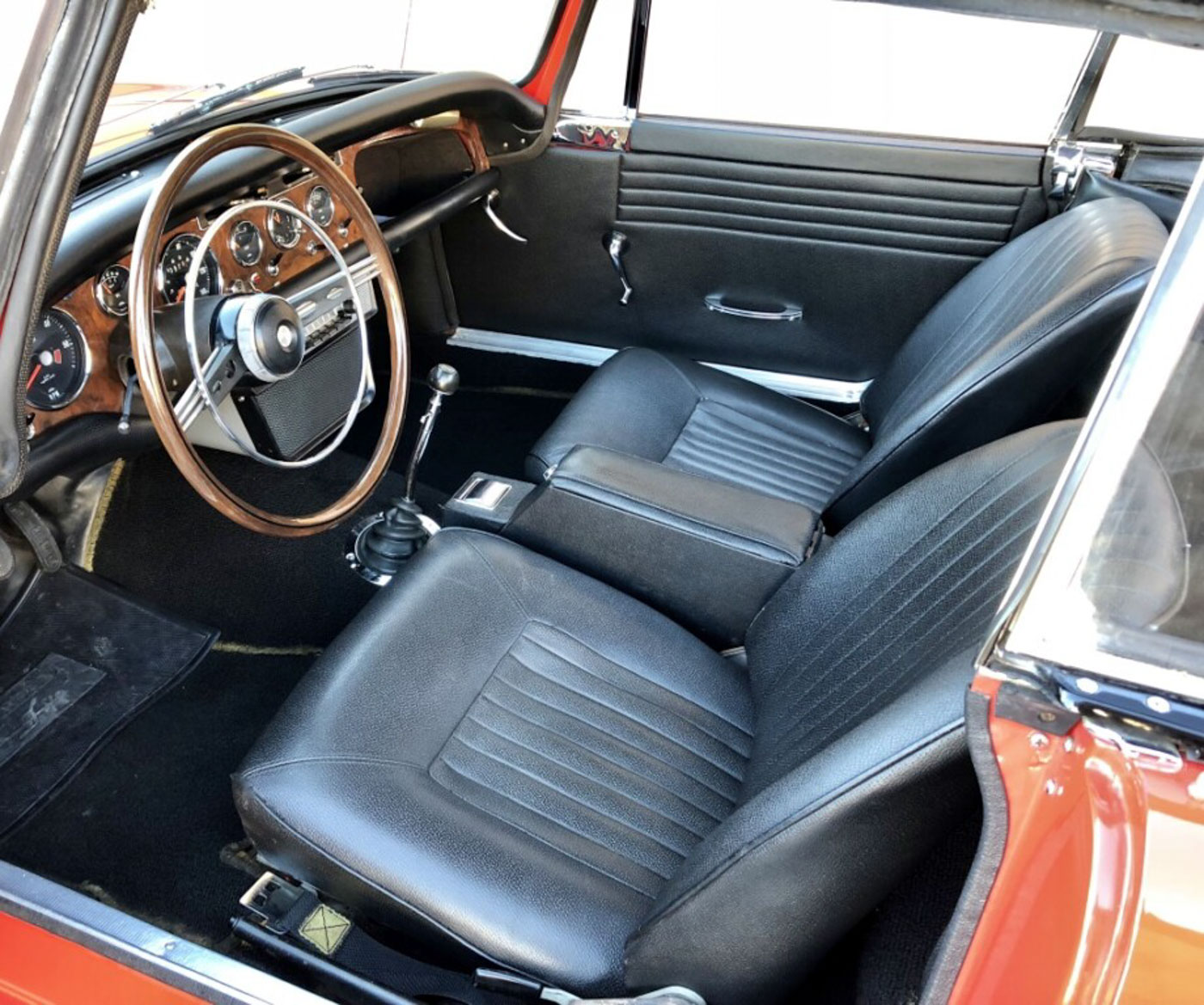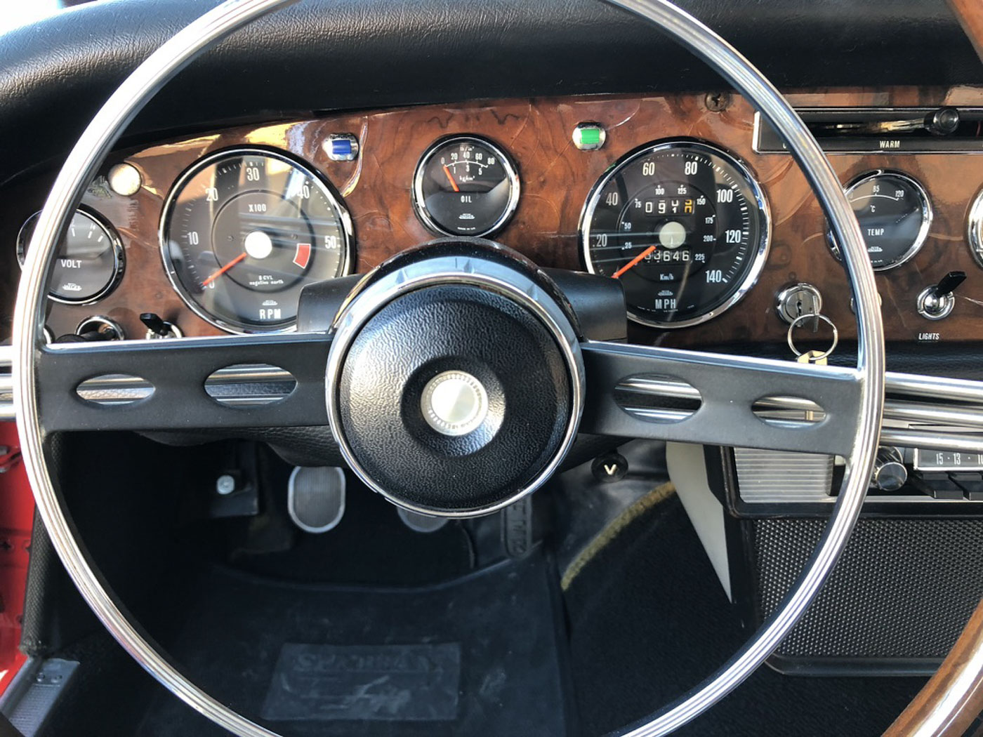 According to Tiger Historian Norman Miller, this is the fourteenth MkII produced. Jensen lists it completed on Wednesday the 28th of December 1966. It was built up using the twenty-first “Tiger 2” body assembled by Pressed Steel and finished from new in Carnival Red. Mr. Miller also noted that the rear axle, ignition/door and accessory key lock barrel numbers have also been confirmed as original.