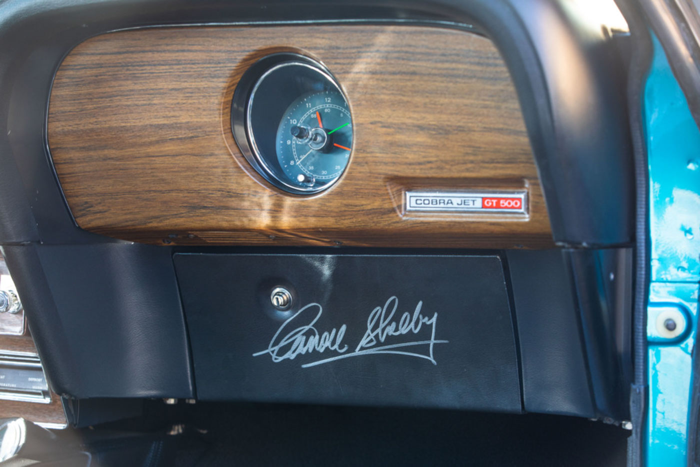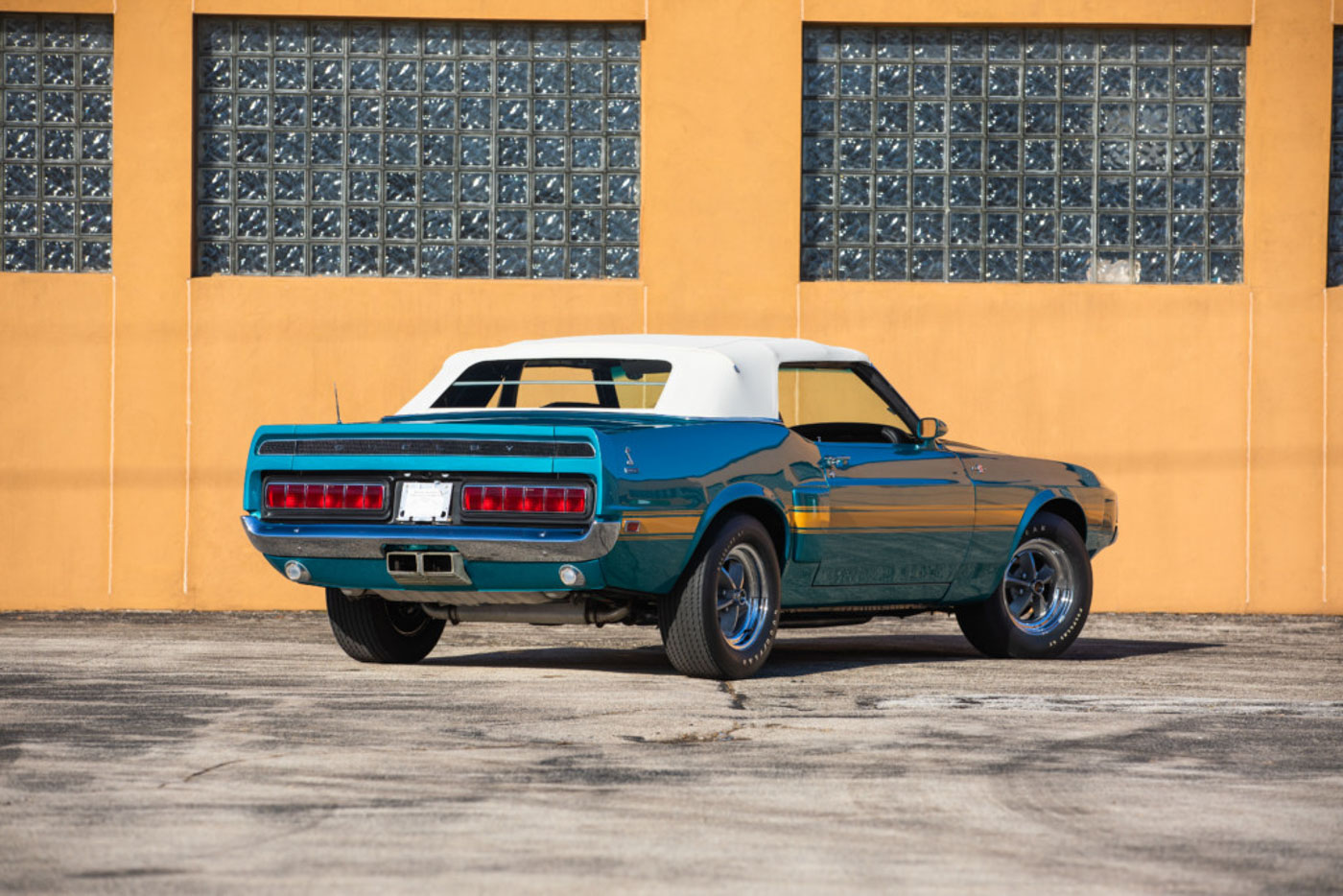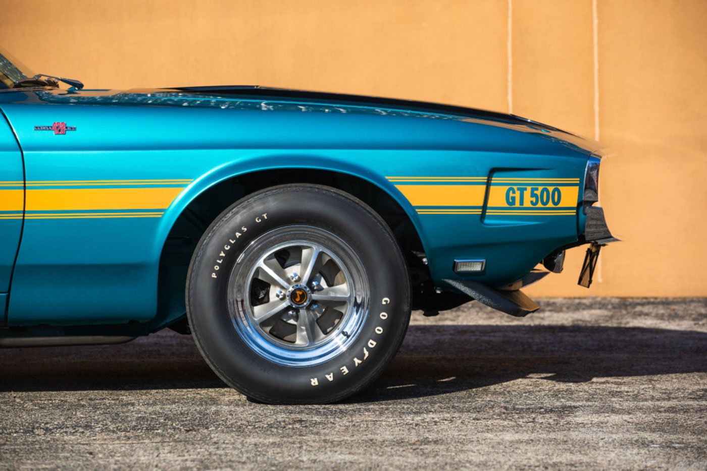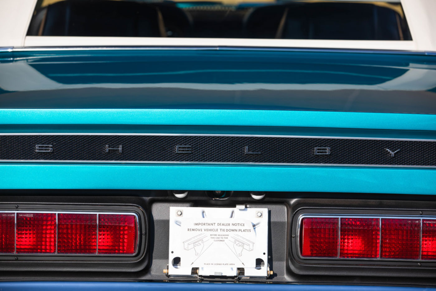 This 1970 Shelby GT500 Convertible was originally shipped to Luke Bolton Ford in Plantation, Florida; it’s one of 90 convertibles produced, one of 36 built with a 4-speed transmission and one of only four built in stunning Gulfstream Aqua. With just 33,000 miles the car was subjected to a multi-year concours restoration by long-term owner Troy Kuyoth of Kuyoth’s Klassics, with extensive use of original and NOS parts throughout the process. And before that it was previously owned by Jim Cowles, SAAC Concours chairman and owner of Shelby Parts and Restoration in Green Bay, Wisconsin, so its lineage is certainly solid in the Shelby world!
