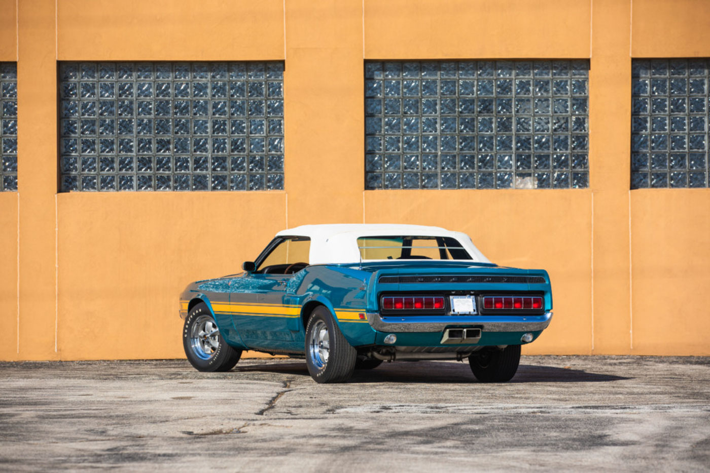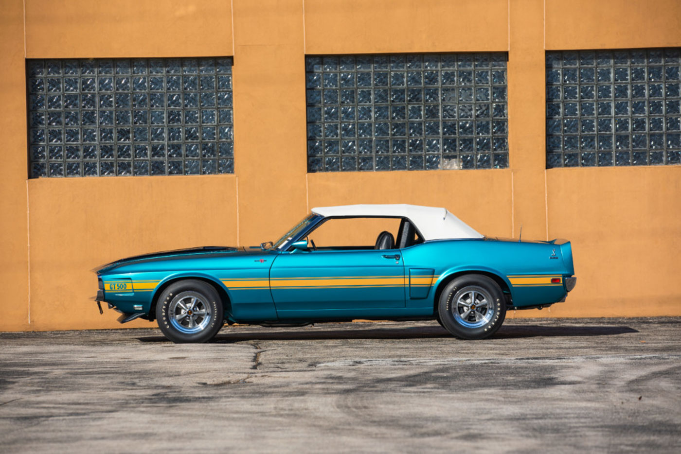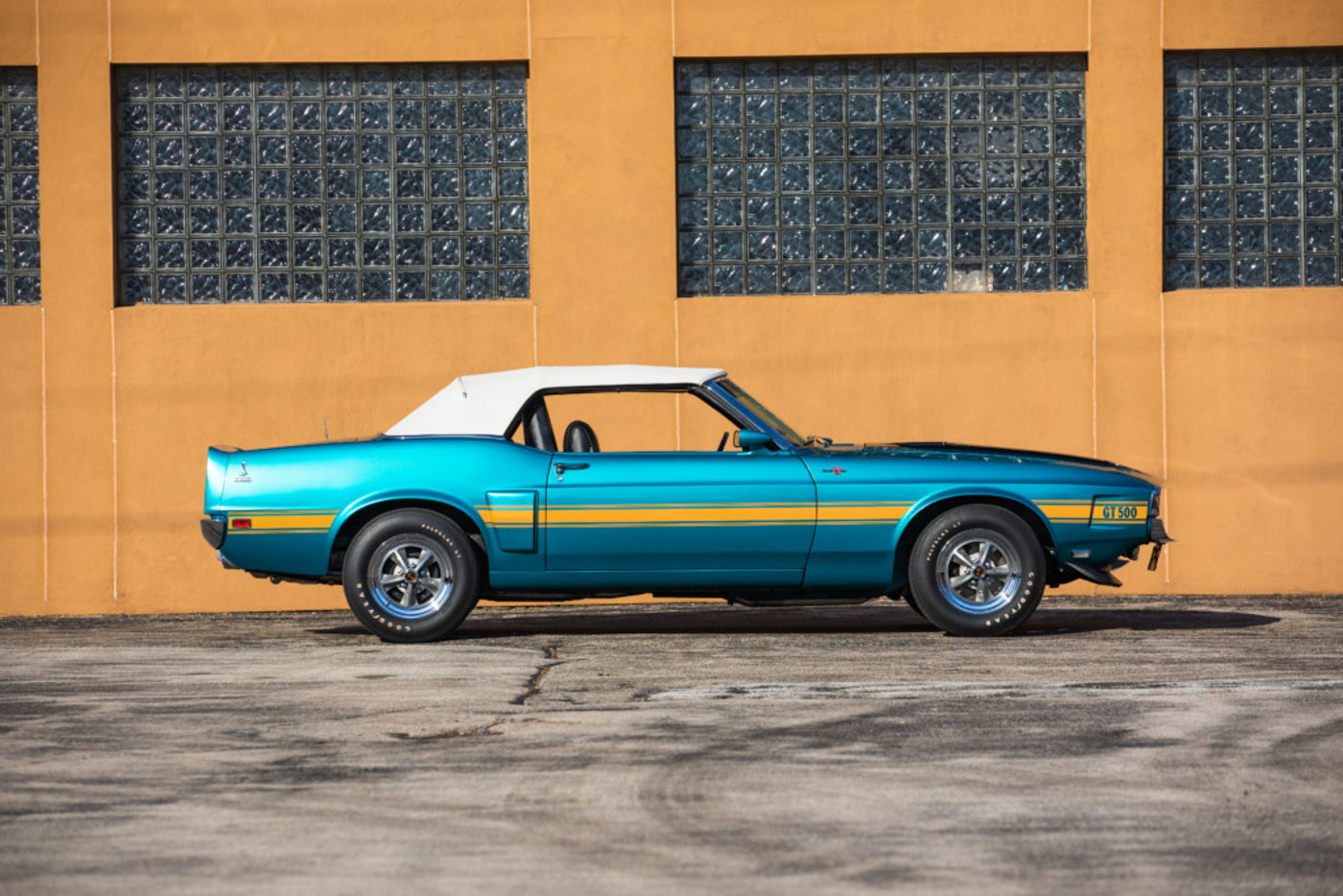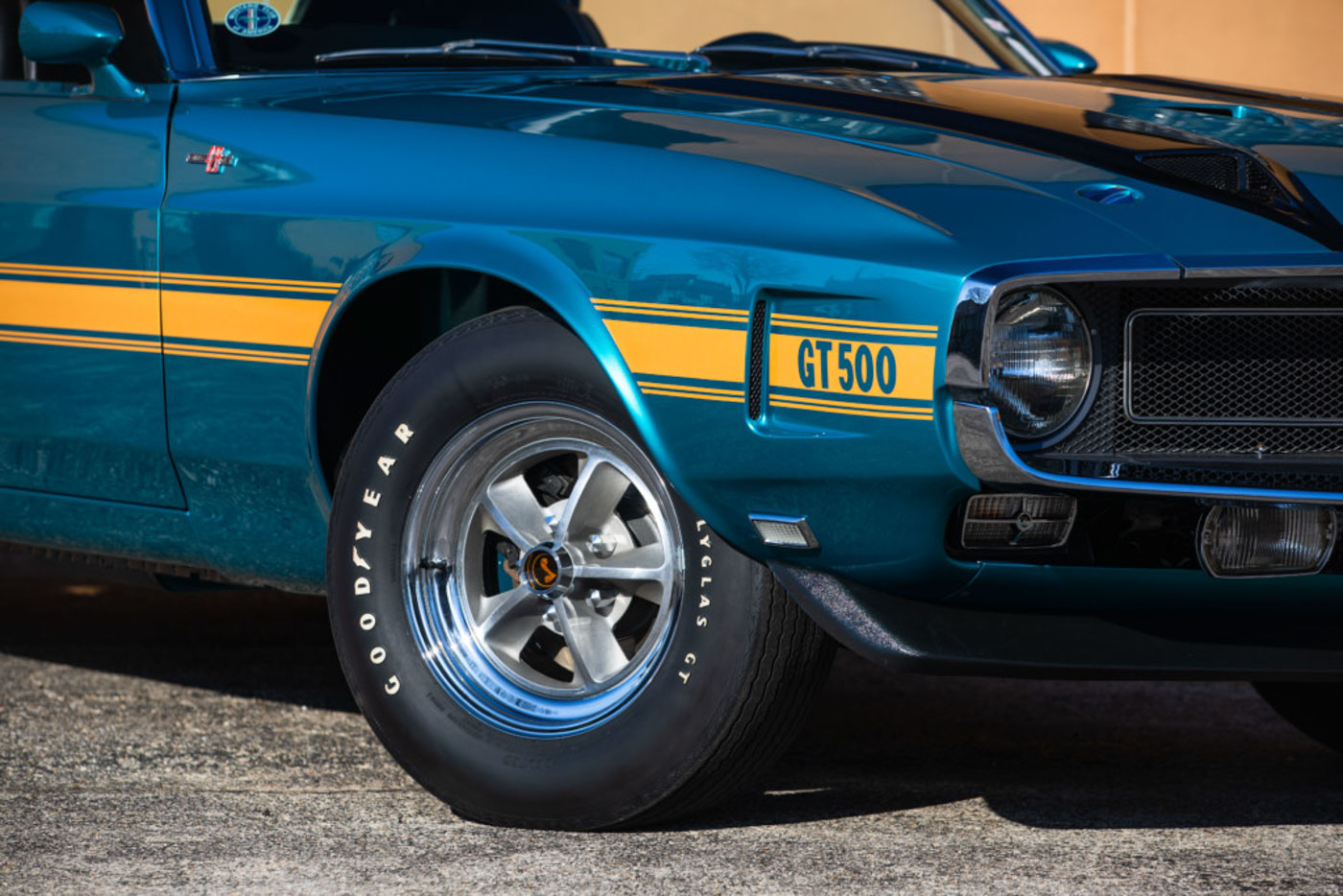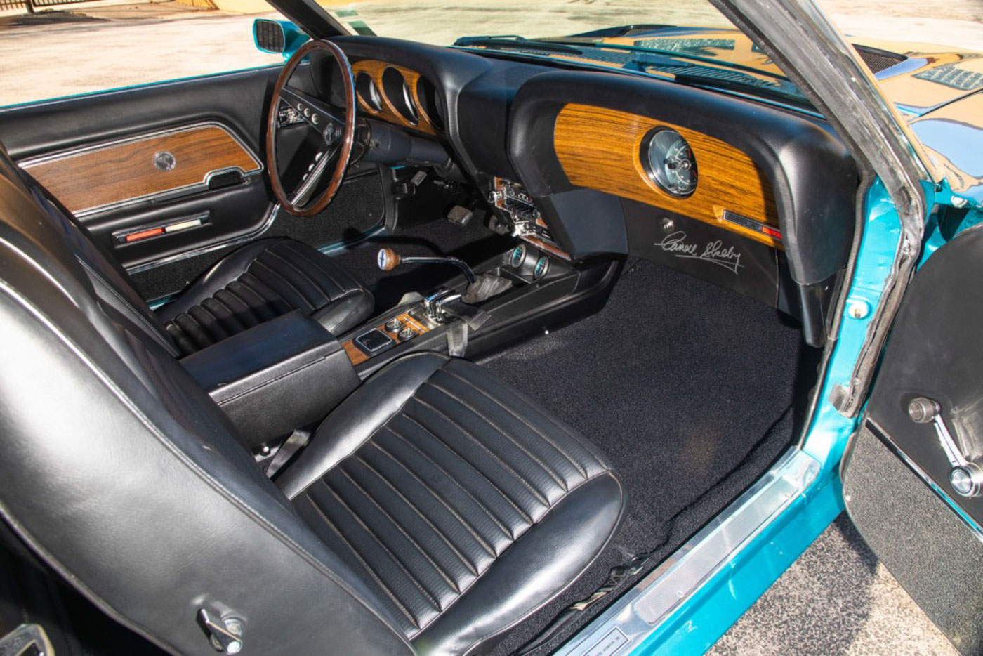 This 1970 Shelby GT500 Convertible was originally shipped to Luke Bolton Ford in Plantation, Florida; it’s one of 90 convertibles produced, one of 36 built with a 4-speed transmission and one of only four built in stunning Gulfstream Aqua. With just 33,000 miles the car was subjected to a multi-year concours restoration by long-term owner Troy Kuyoth of Kuyoth’s Klassics, with extensive use of original and NOS parts throughout the process. And before that it was previously owned by Jim Cowles, SAAC Concours chairman and owner of Shelby Parts and Restoration in Green Bay, Wisconsin, so its lineage is certainly solid in the Shelby world!