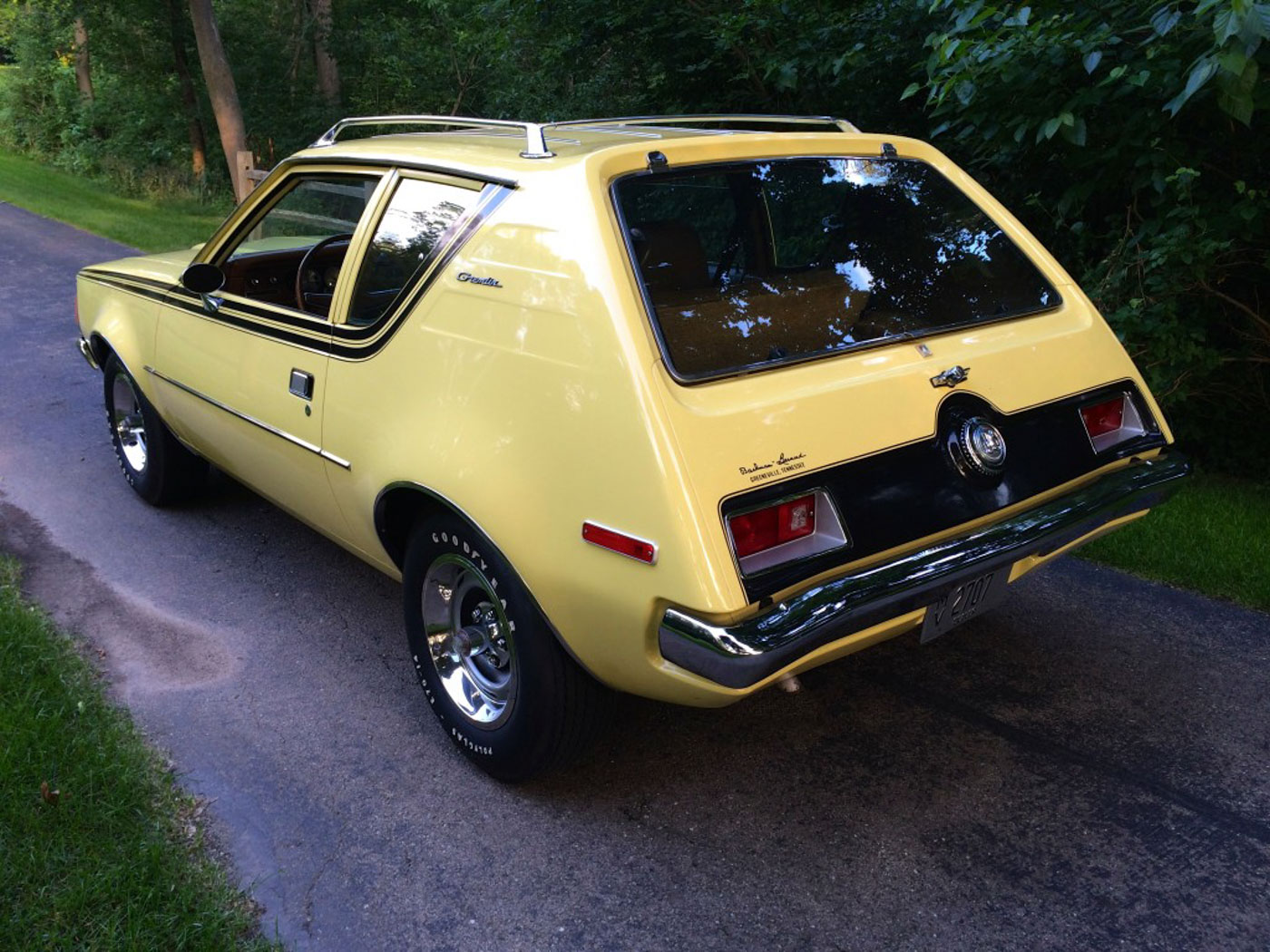 With paperwork documenting it from its original purchase in 1972 through today you won’t find a better original Gremlin. The original paint is near flawless, as is the interior and even the chassis- still in factory yellow paint with no rust and no added undercoating or other silliness trying to hide anything. The car runs and drives absolutely as-new on brand new Radial T/A tires. The correct set of Ployglas RWL tires (pictured) are available at your choice should you prefer a more vintage (but less enjoyable to drive) look.