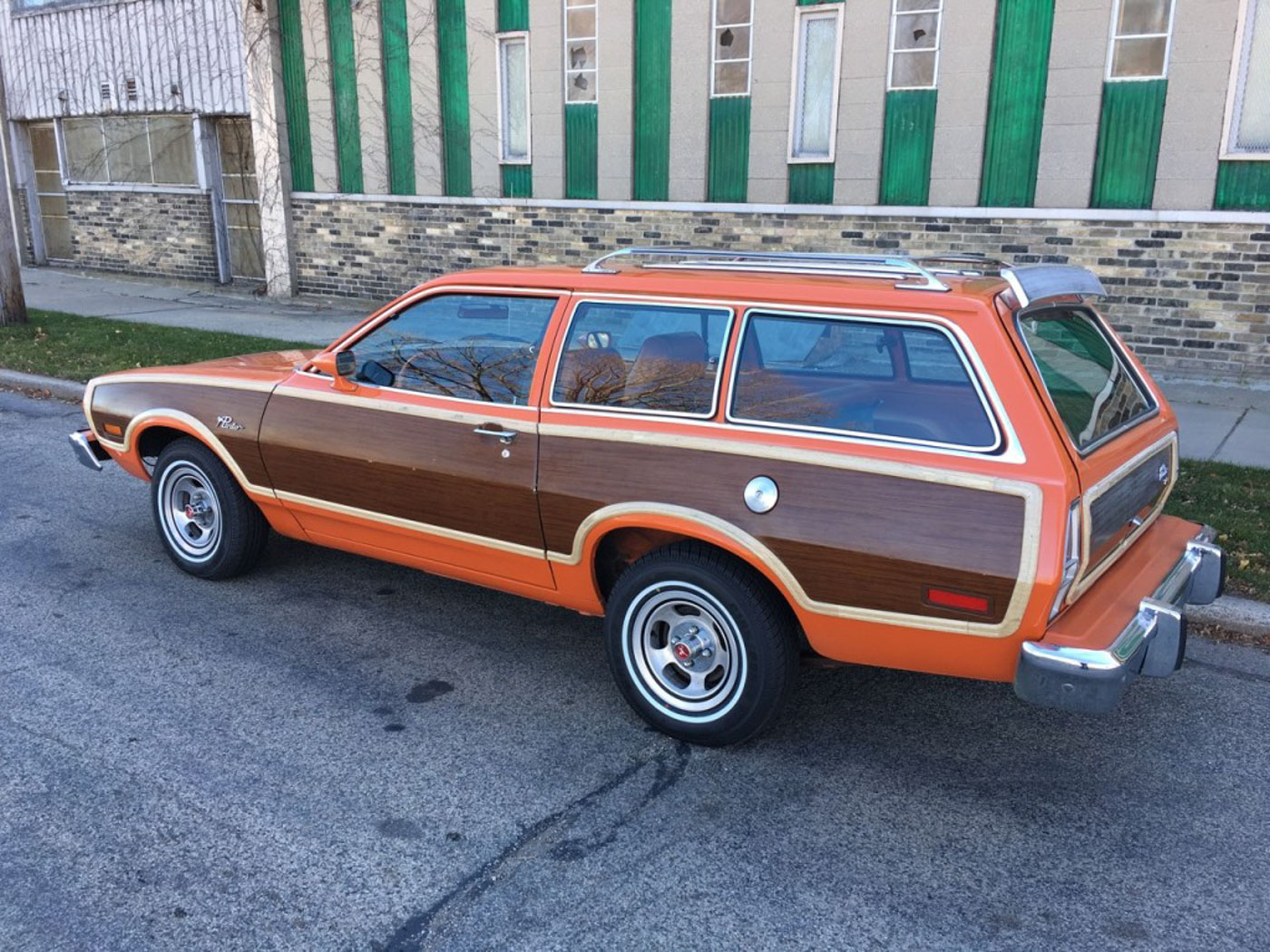 Beyond the obvious attribute of being orange with orange houndstooth interior it also has the desirable 2.3L four cylinder with factory air conditioning (that works!) and a 4-speed manual transmission. Other options include factory mag wheels, roof rack, rear defrost, remote mirrors, and radio. It is essentially the ultimate spec for a Pinto.