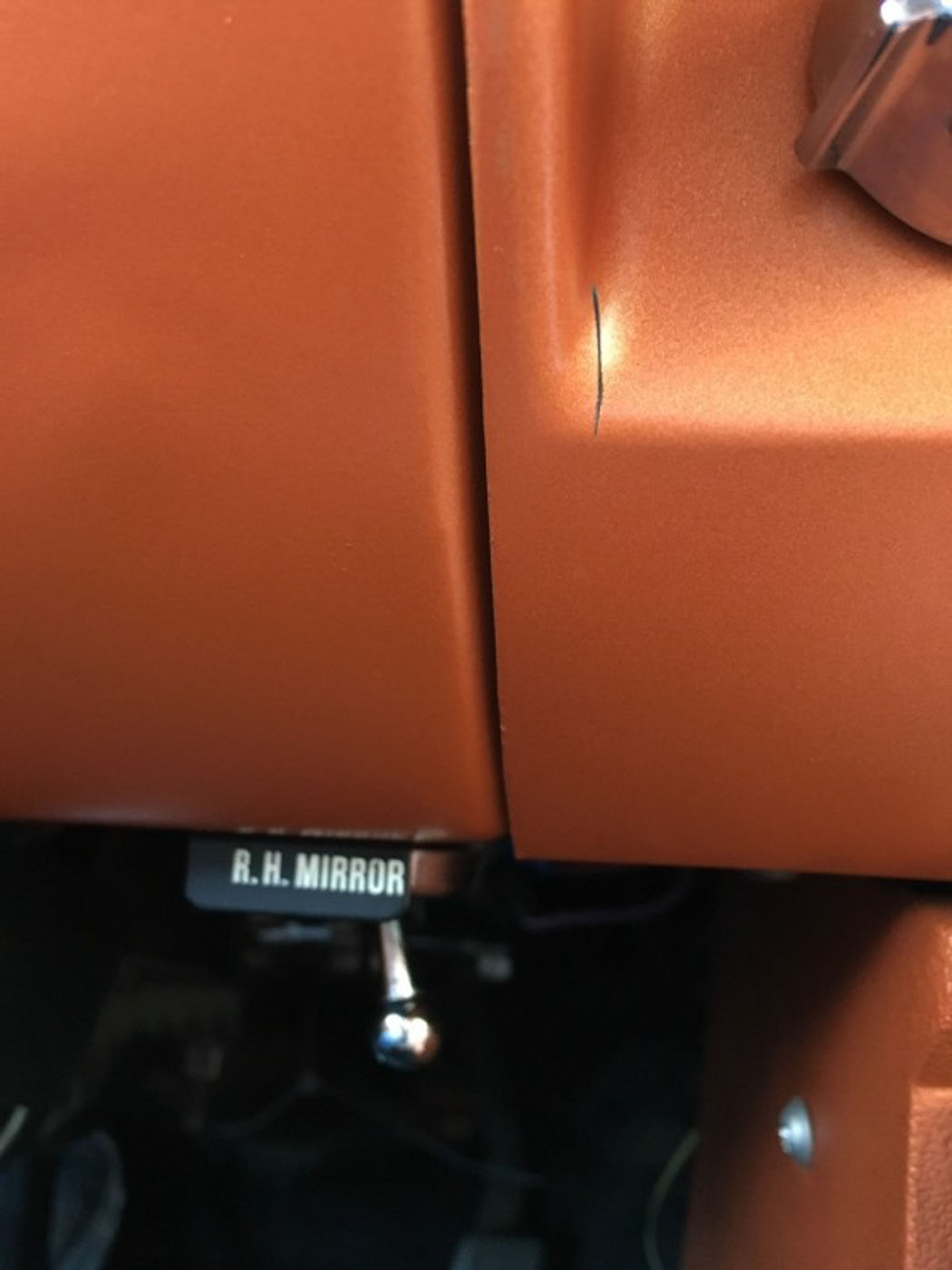 This particular example comes from our private collection. Few cars we’ve owned generate more thumbs ups, waves, smiles, and conversations than this little bugger! It came to us as a one-owner California car, and we have kept it registered in California to maintain its original Ca. Blue Plates. Better yet it currently has only 39,000 original miles from new. It is completely original with 100% of its original paint, interior, and all trim. Even the original assembly line exhaust is still in place and mint. There is absolutely no rust nor has the car ever been hurt. It has never even been detailed, it was so clean no “fluffing” was needed. Check out the engine compartment photos that show all the original paper tags, ink stamps, and factory markings in place. And the mint undercarriage with zero rust or undercoating, just factory orange paint with an honest coating of dirt. A good detailing would really make it sparkle top and bottom but I think having it untouched helps tell the cars story better.