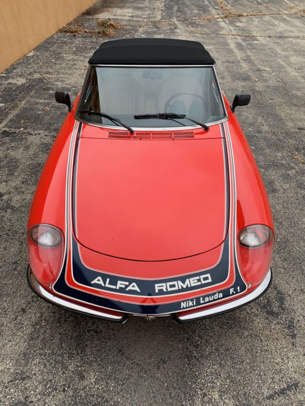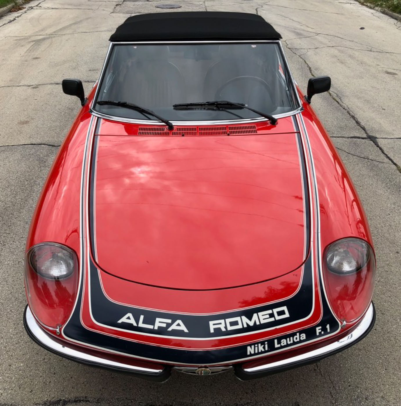 As a nearly life-long Alfisti (31 year AROC member this year, in fact!) I’ve always loved these Niki Lauda cars and their unique, totally awesome 70’s stripe, spoiler, and headlight cover combination. But I also have always disliked the US-spec ride height and ugly rubber baby buggy bumpers of the 1975-1982 Series 2 Spiders. So, if you want a really special “Kamm-tail” S2 Spider this may be just the ride to turn you into a life-long Alfisti or Alfista as well!