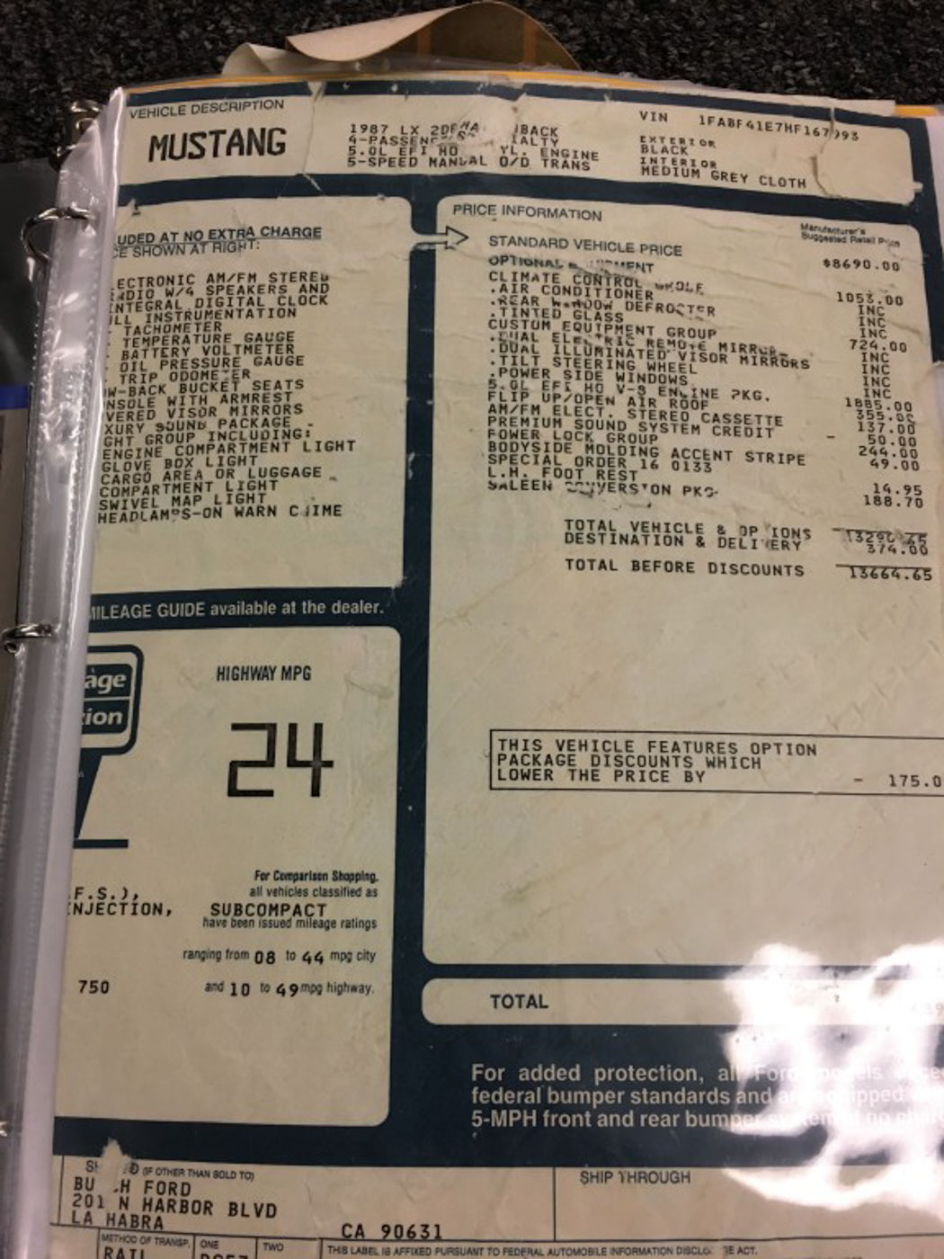 More importantly, #45 is one 278 total 1987 Saleen Mustangs of all body styles built, 1 of 105 in Black, and 1 of 2 black Hatchbacks with a factory sunroof.