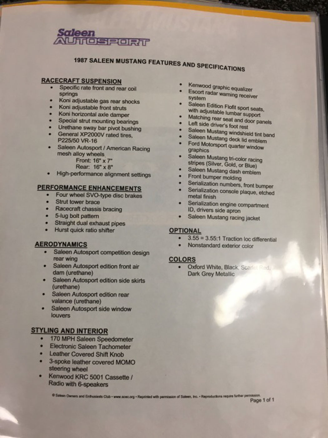 Offered from my private collection is this 1987 Saleen Mustang, serial number 87-0045.
