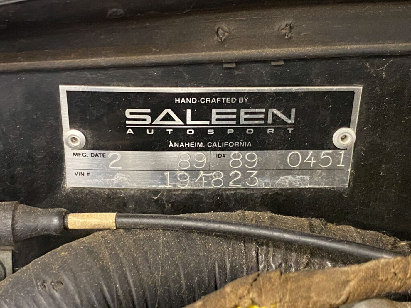 - Original Saleen VIN tag and chassis number plate