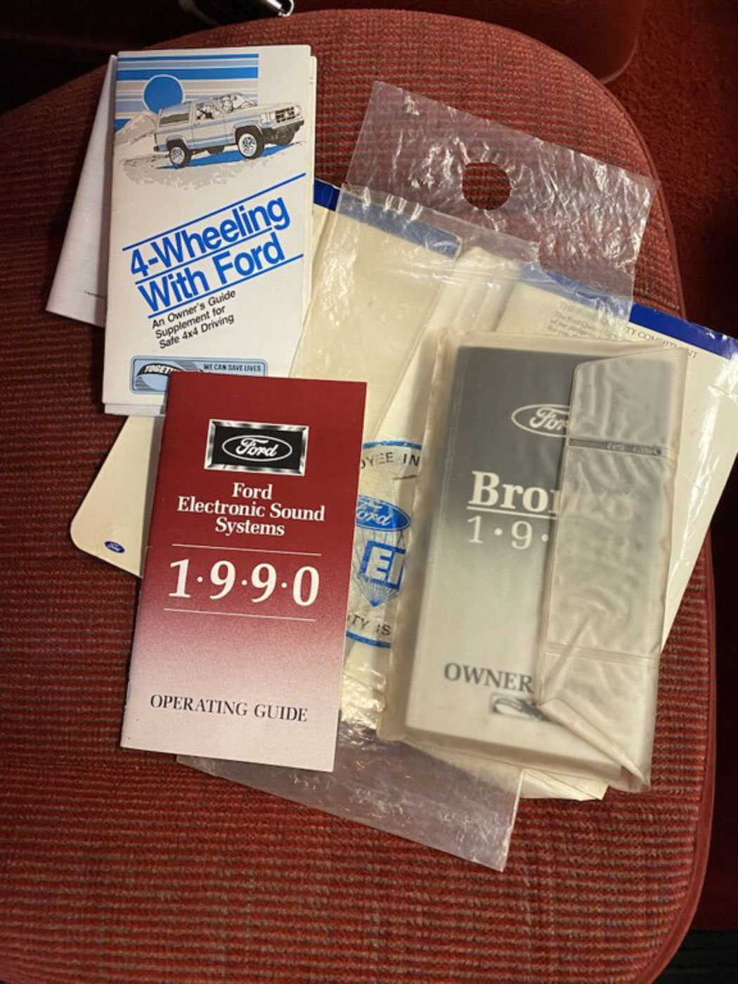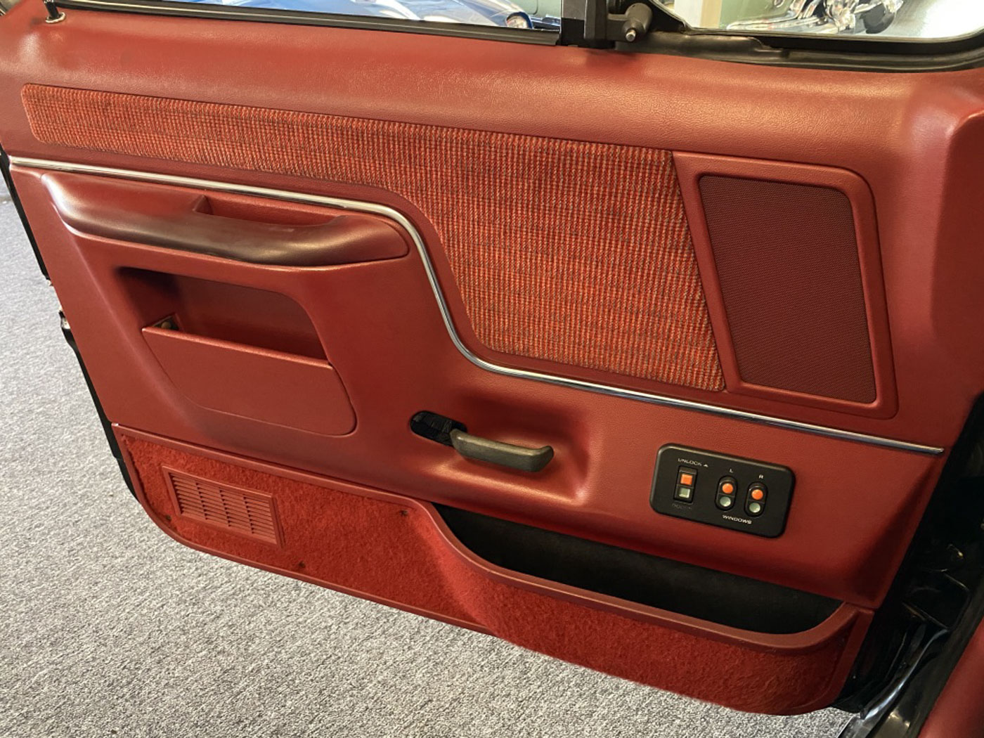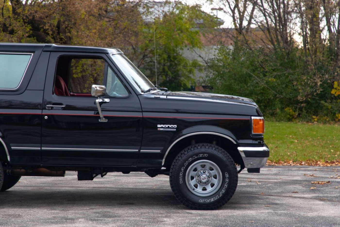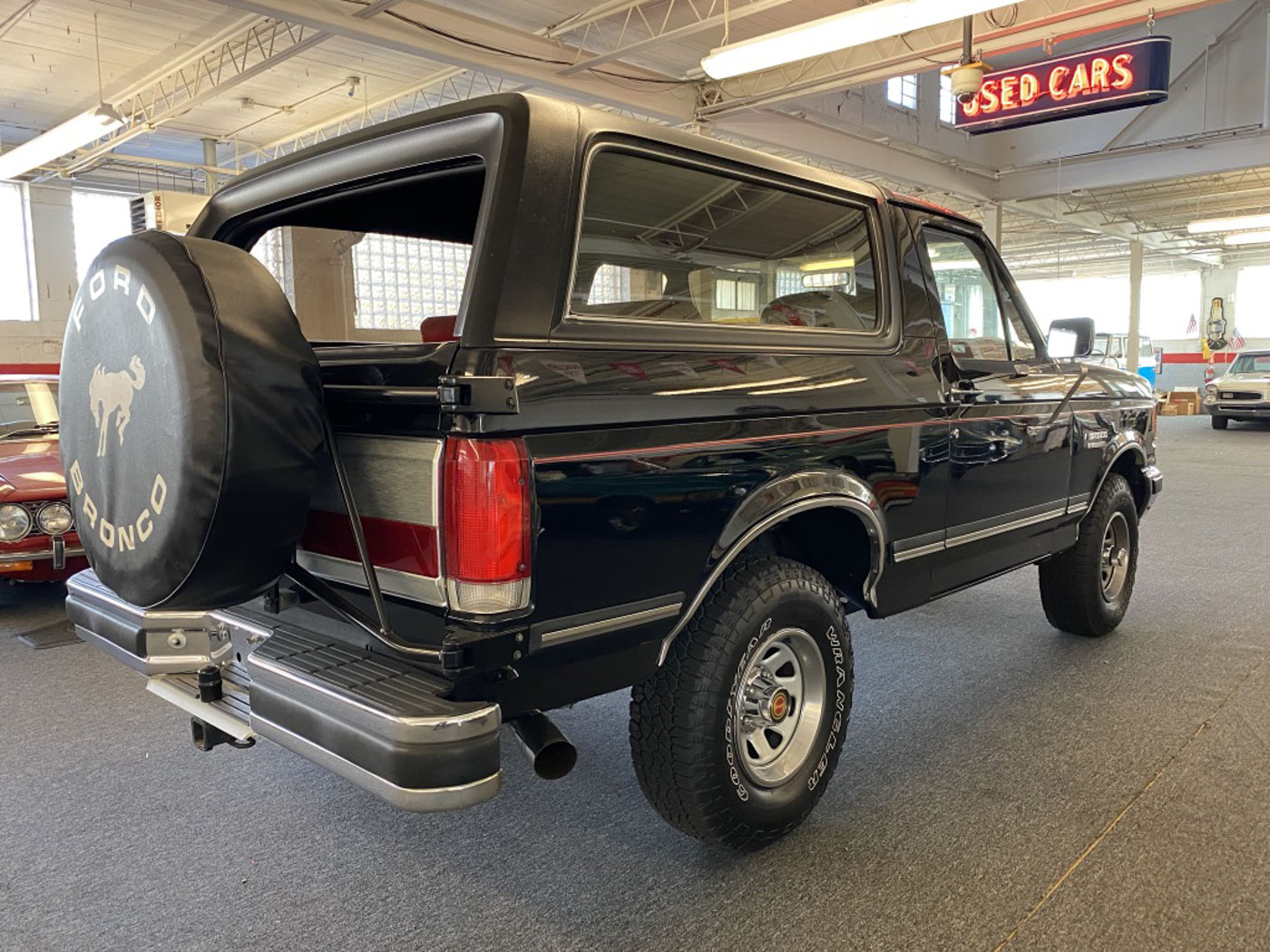 Further, in its largely factory original factory black paint (I had the hood refinished due to rub marks from an aftermarket hood deflector, and the inside of the tailgate refinished to remove scratches from loading over the years) over a fantastic deep red interior, this Bronco is heavily optioned with the heavy-duty suspension, quadruple front shock and a rare factory swing-away outside tire carrier, and it also comes with its factory owner’s manual and books.